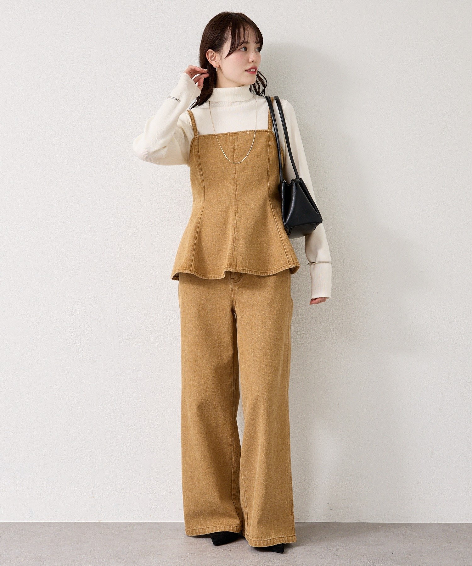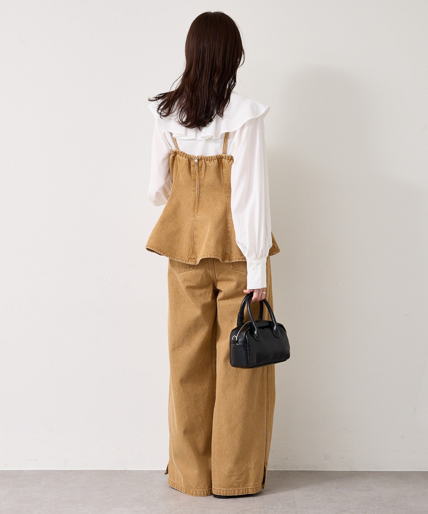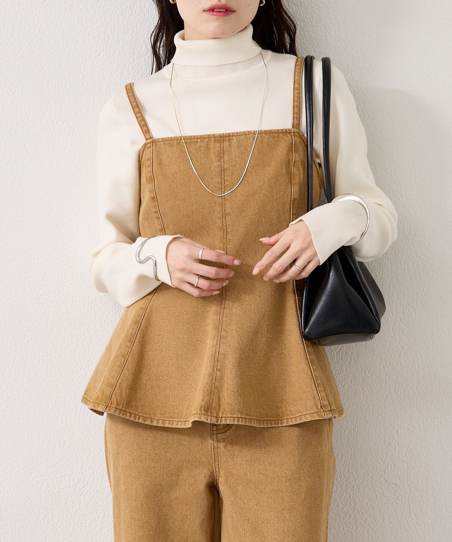デニム素材でこなれ感あるペプラムビスチェ