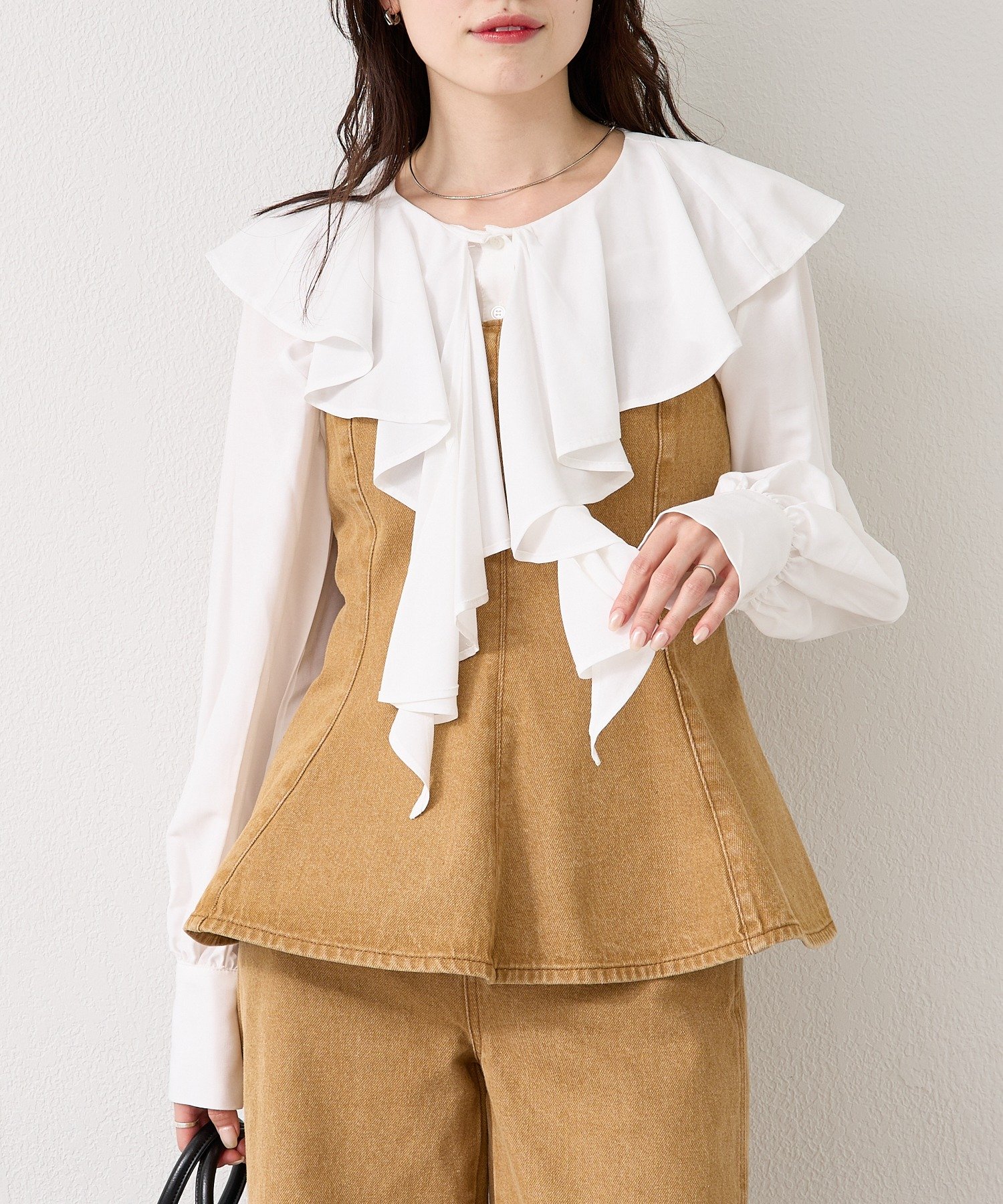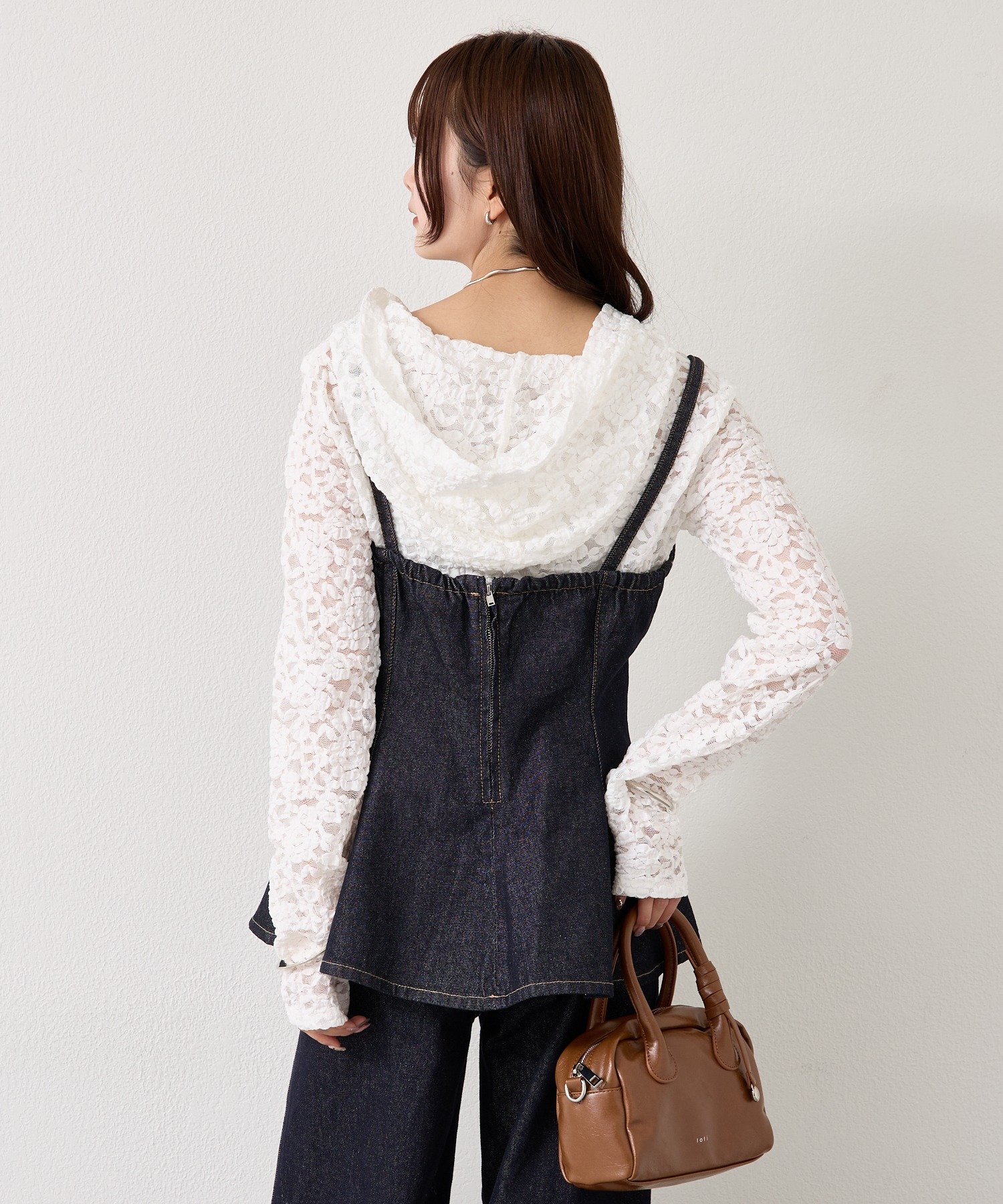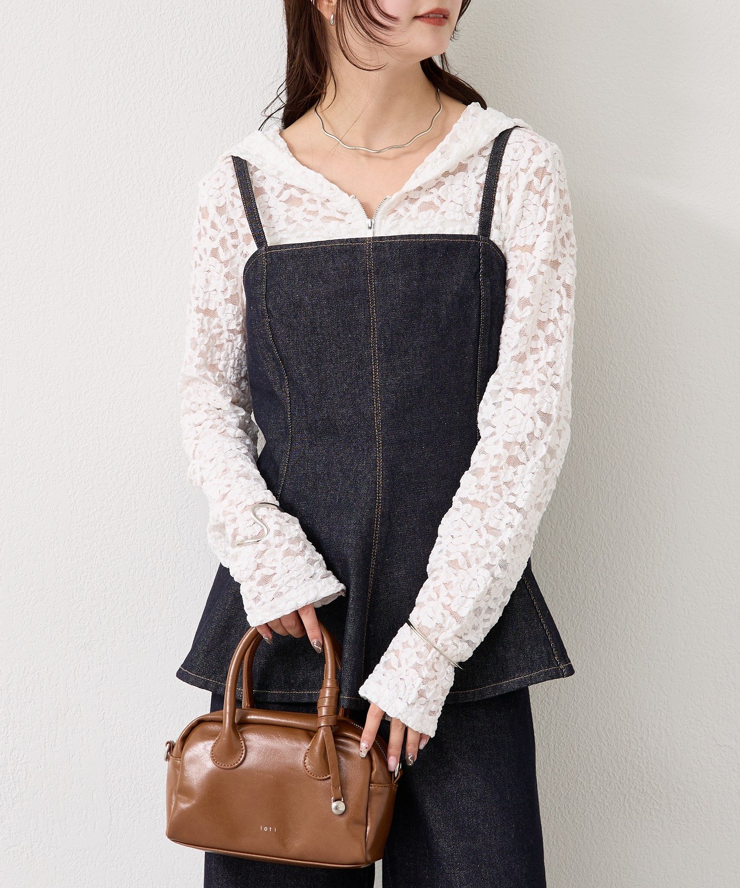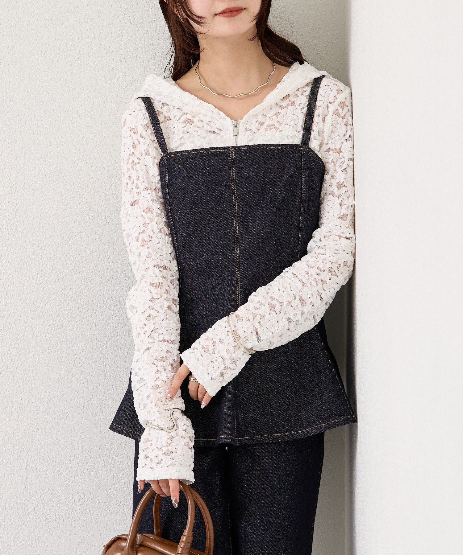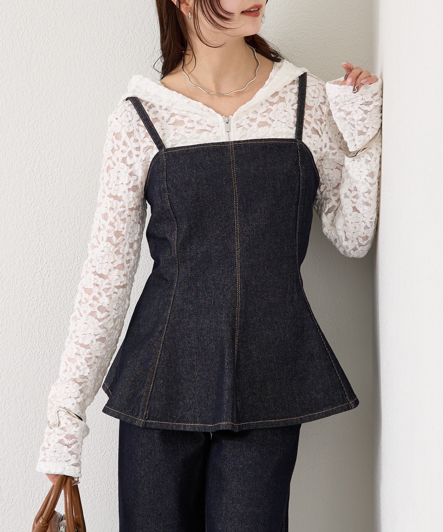 ・インナーにレースアイテムやコンパクトなカットソーを合わせるとバランスよく決まります。
