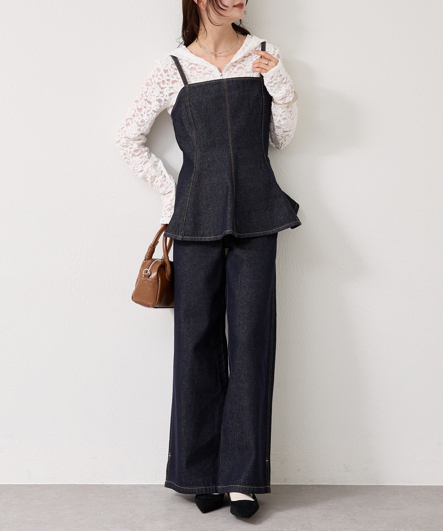 ペプラムデニムビスチェ