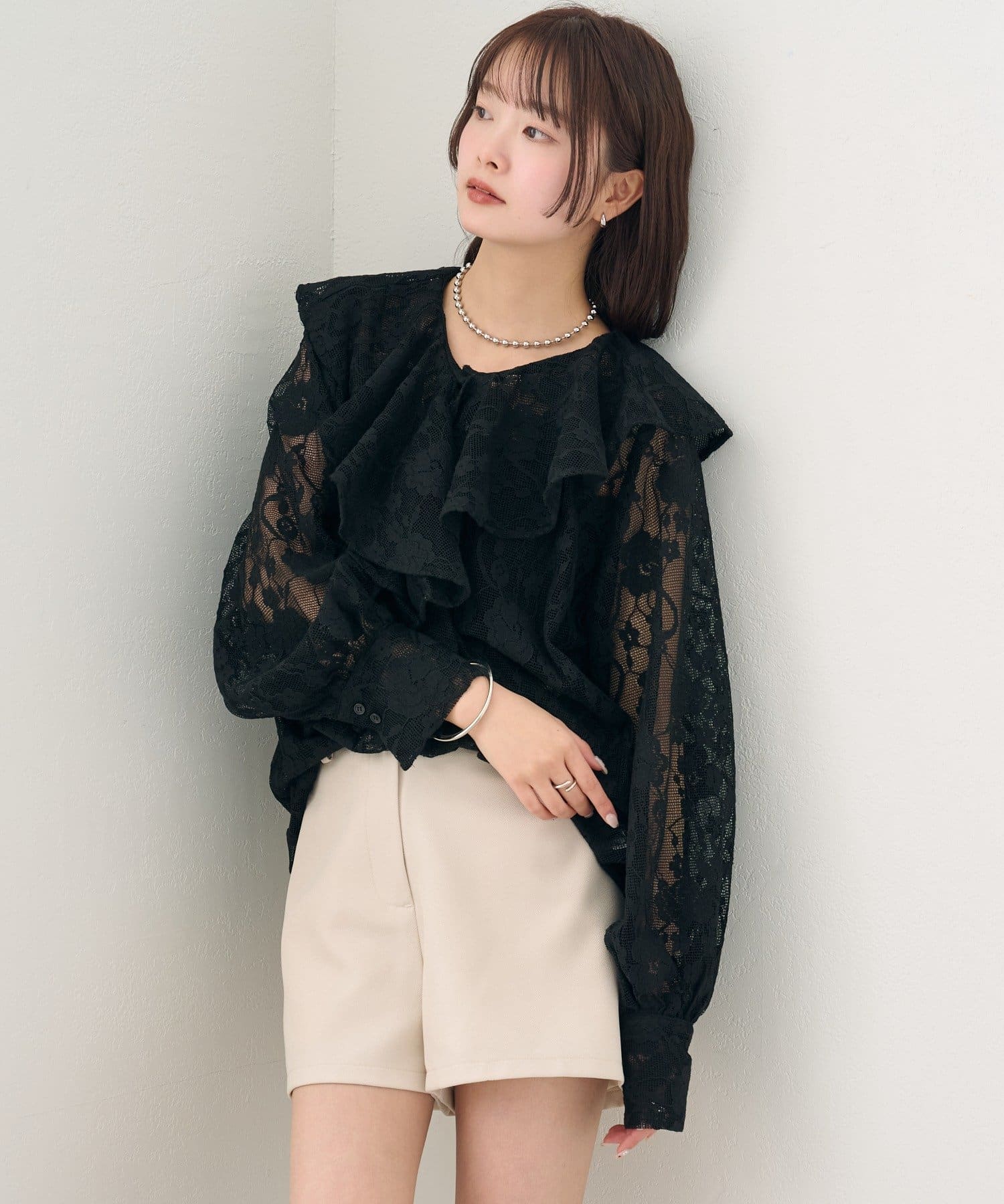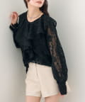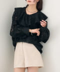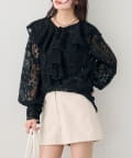 TOP > mystic > レディース > トップス > シャツ/ブラウス(ボタン) > 《新色ブラック》ラッフルカラーブラウス