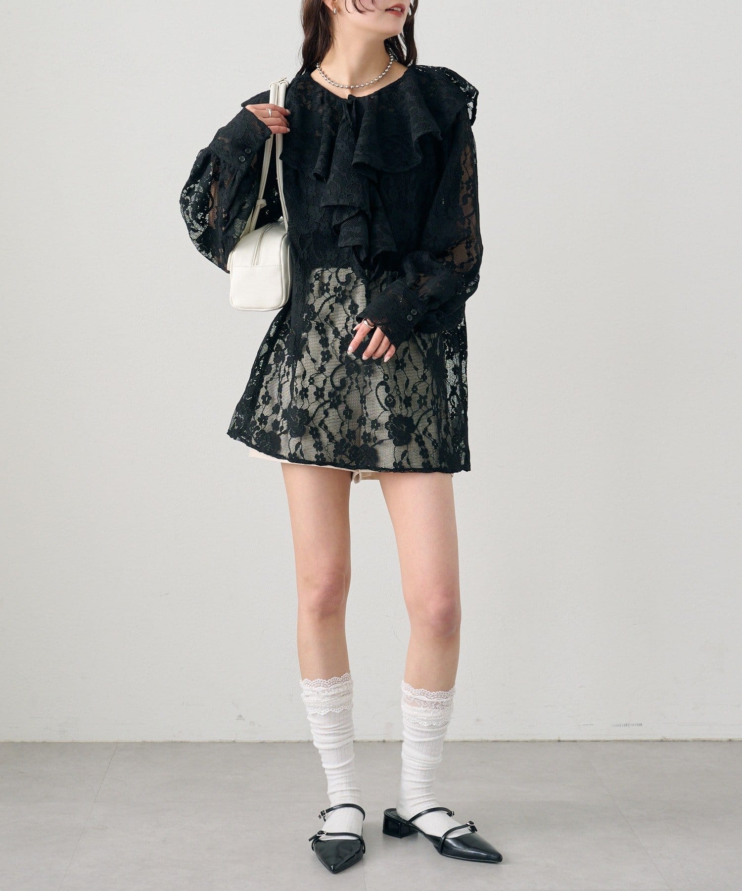 存在感のあるフリルがコーディネートを華やかにしてくれます!