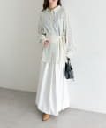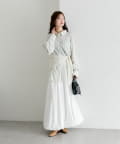 ・左のウエスト位置にあるボタンを留めてきていただくと、いつもと違う雰囲気に。ベーシックに着ていただくことも可能で、1枚でも羽織りとしても着回し力抜群です!