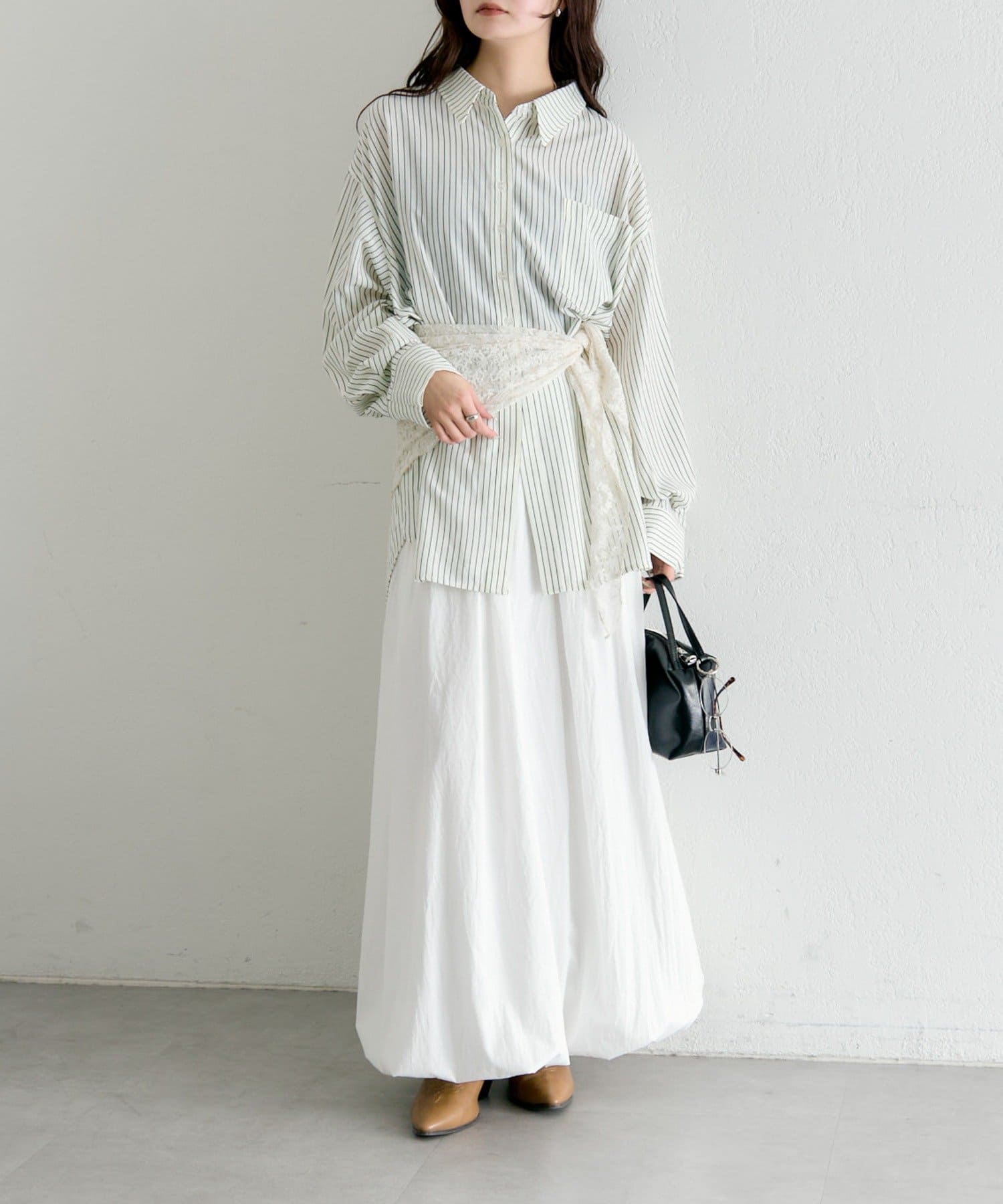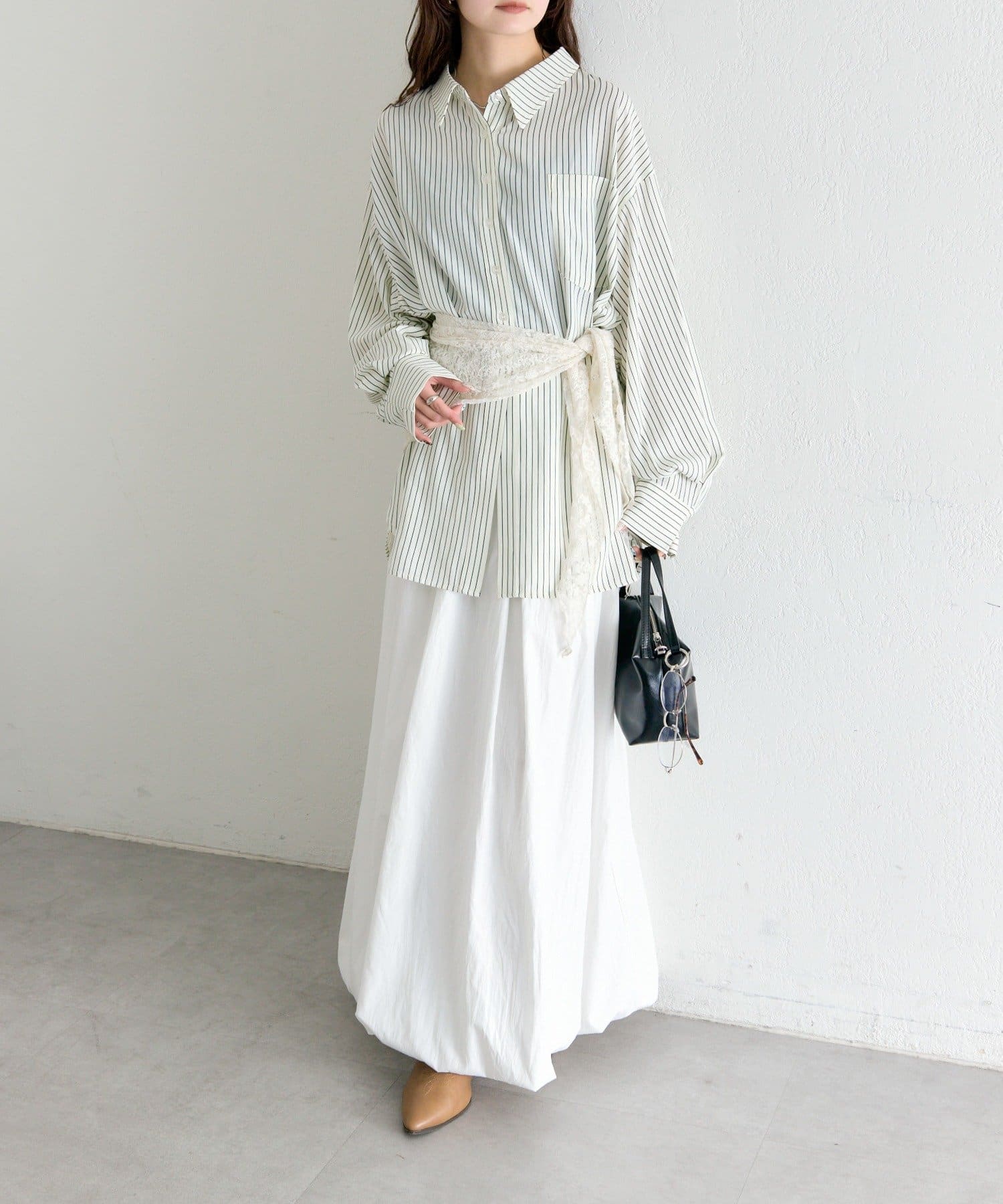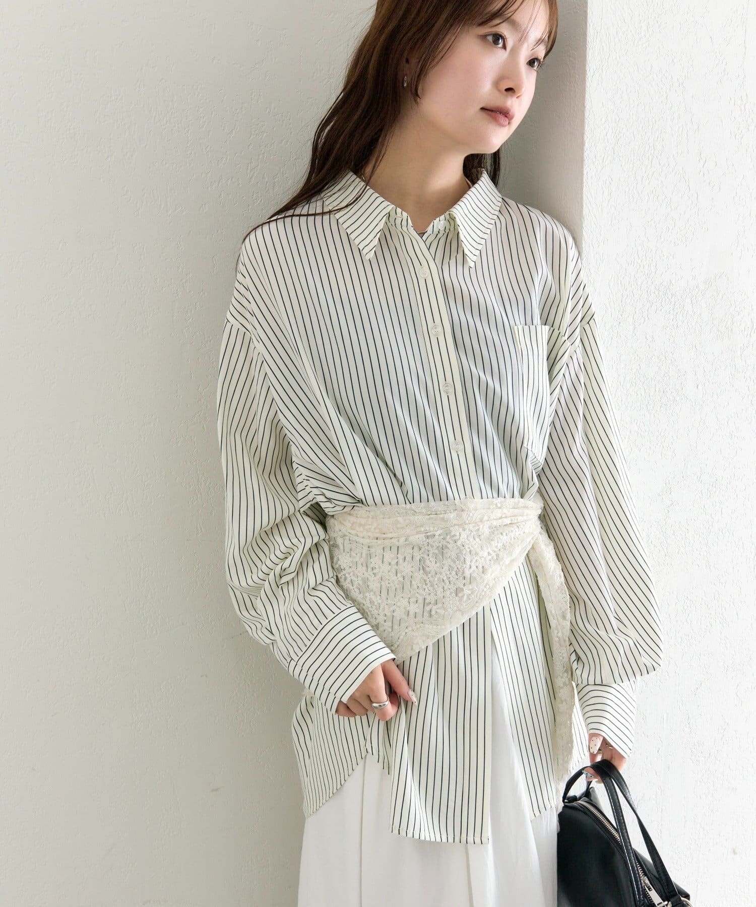 ・ボタンの留め方で印象を変えられる、トレンド感溢れるBIGシャツ。