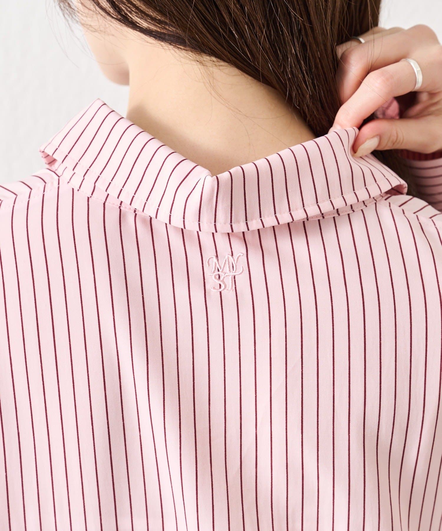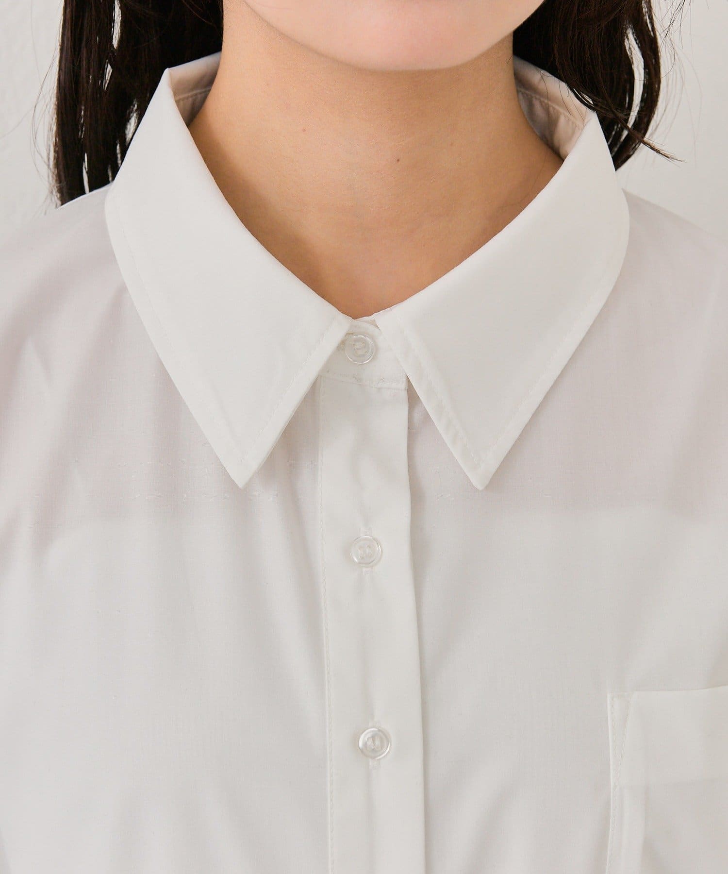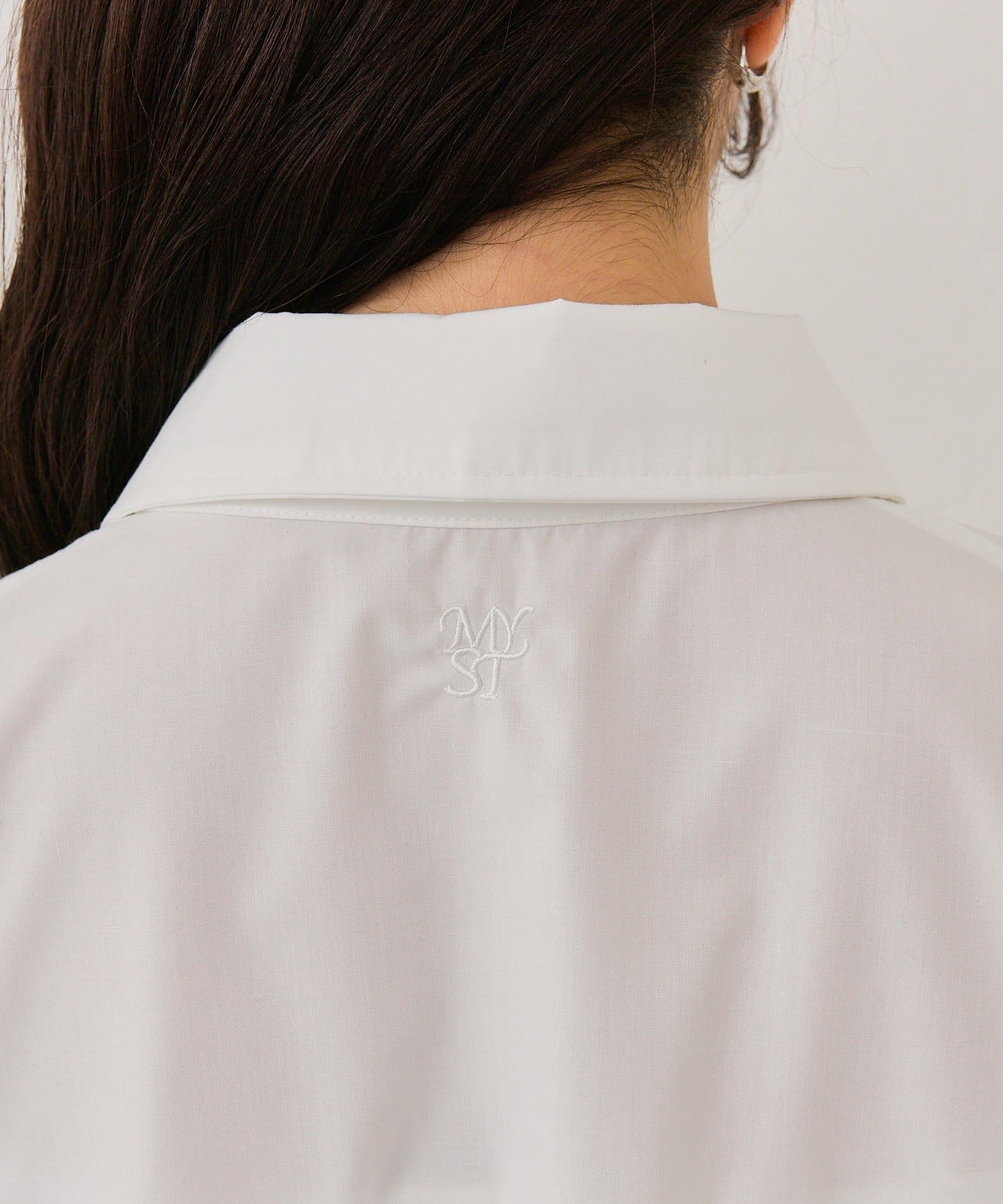 ・ネックライン後ろにワンポイント可愛い刺繍のロゴ入り! 袖口はカフス仕様で、きちんと感をプラス。
