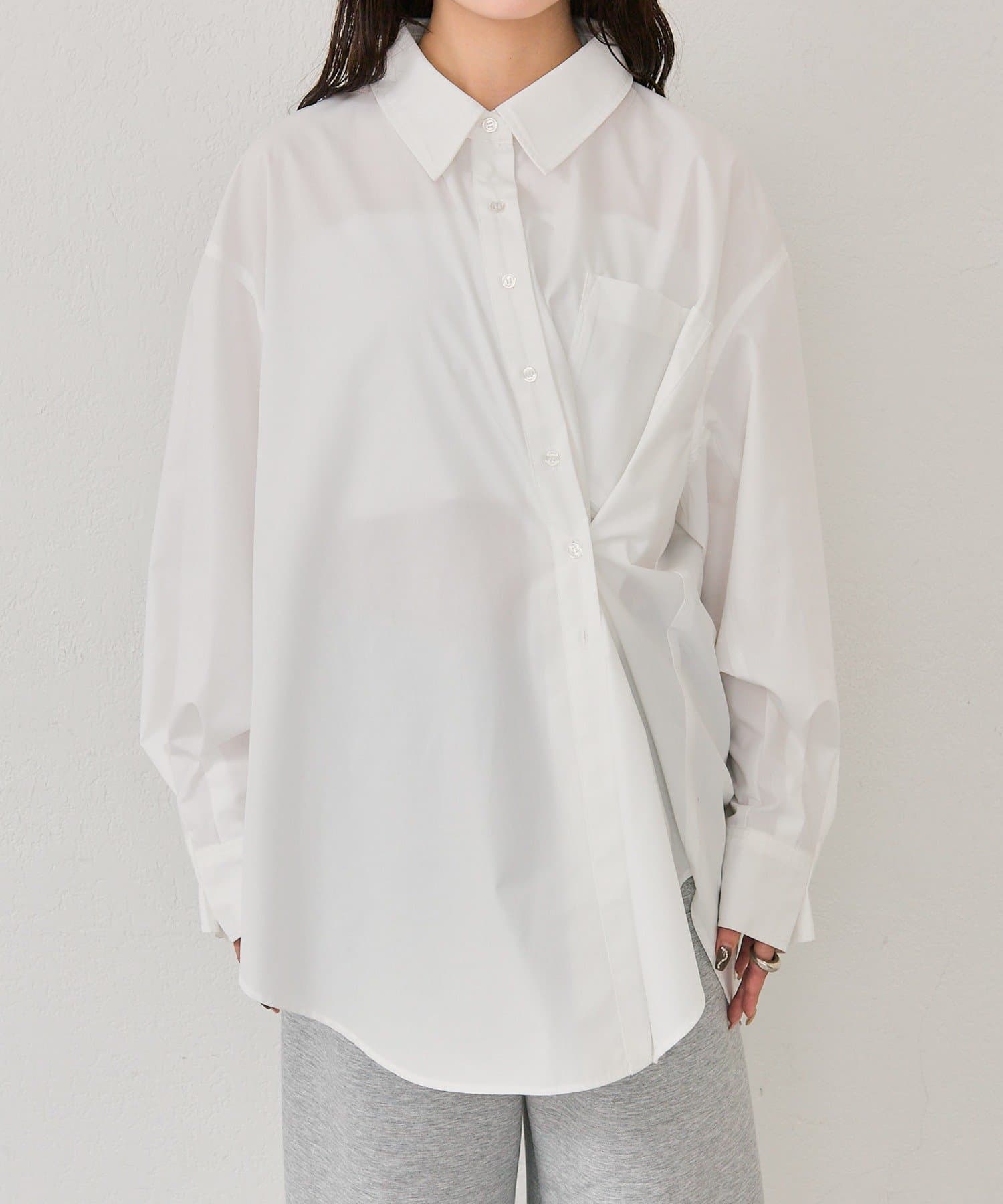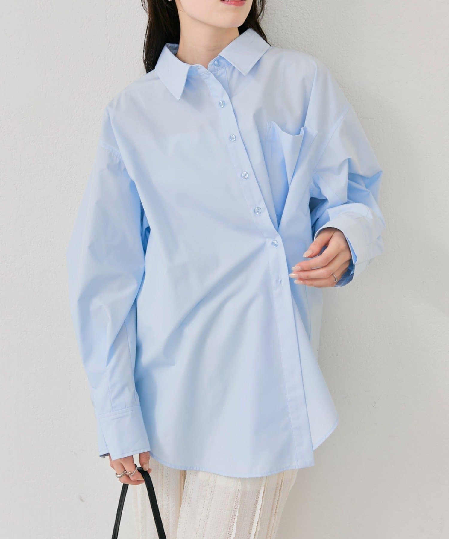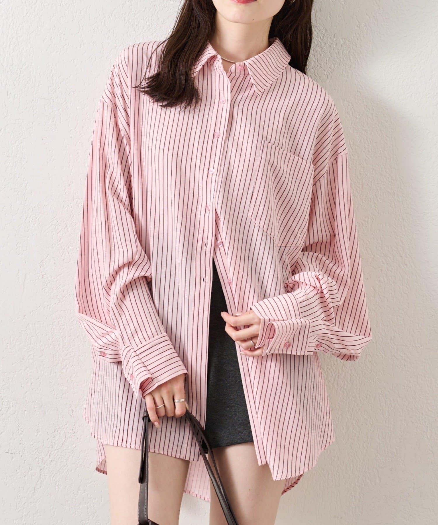 ・ボタンの留め方で印象を変えられる、トレンド感溢れるBIGシャツ。