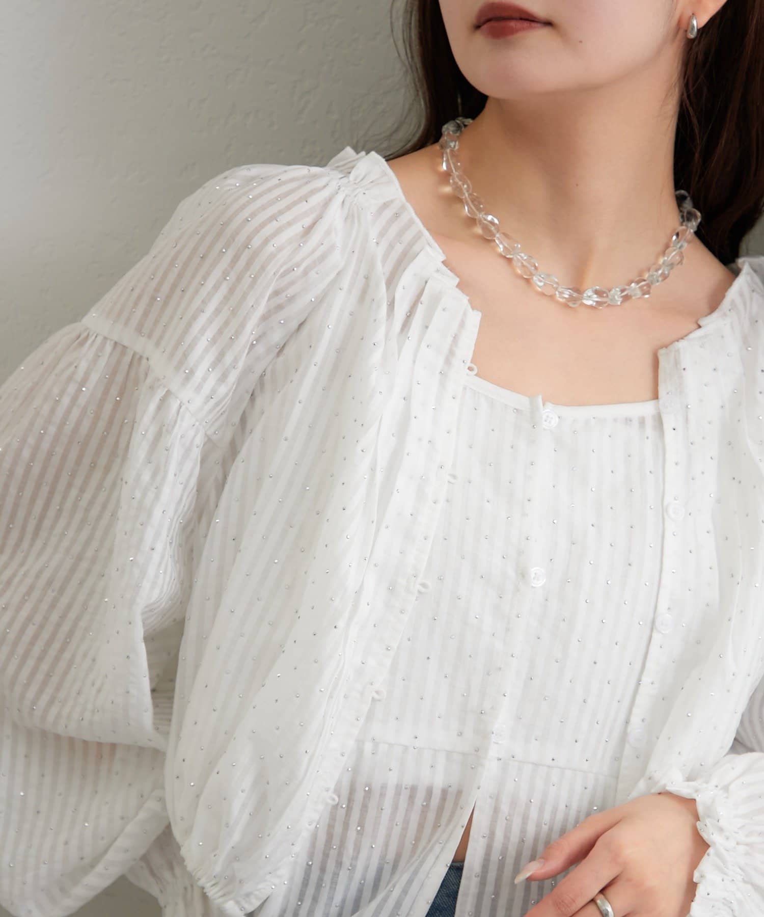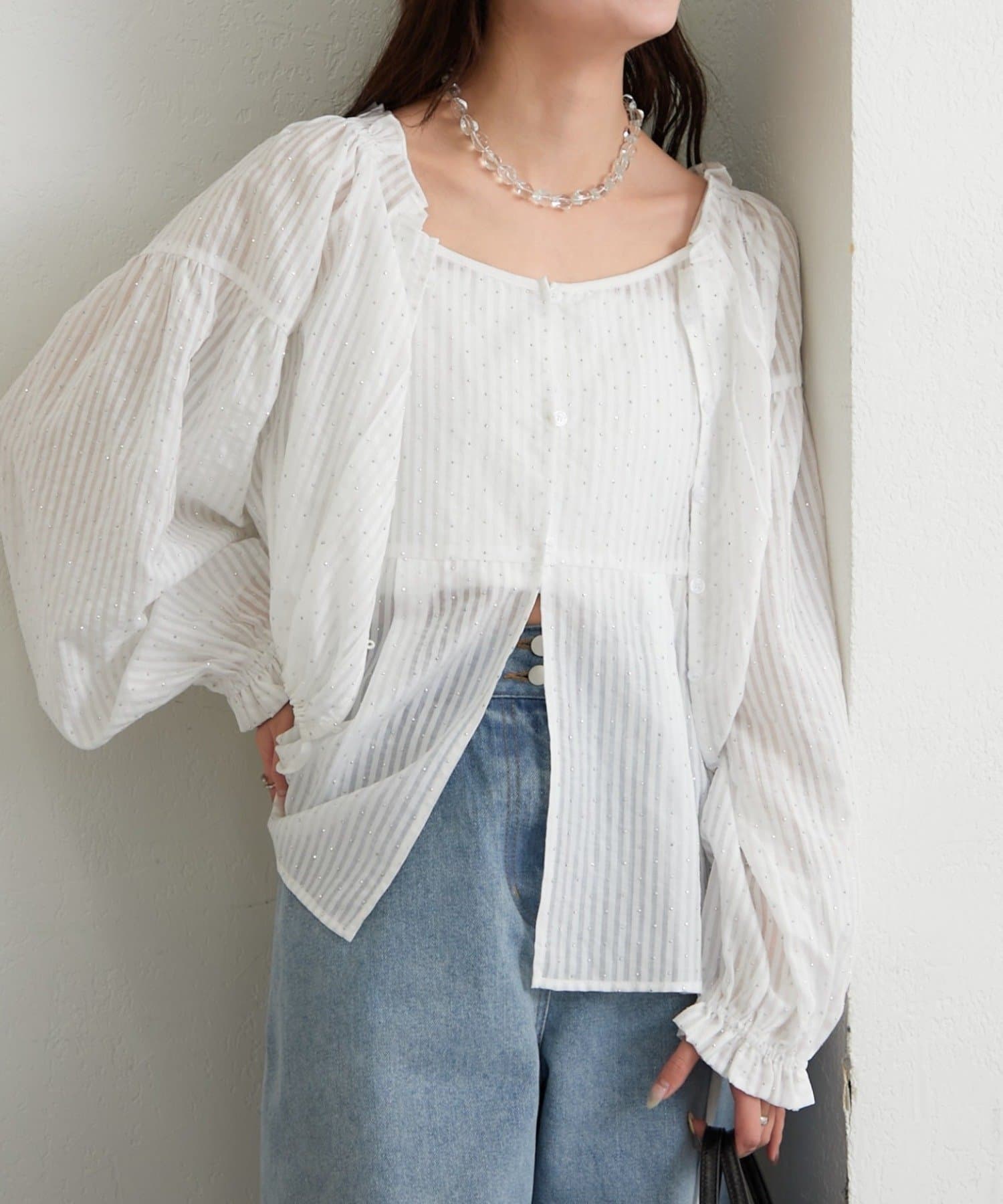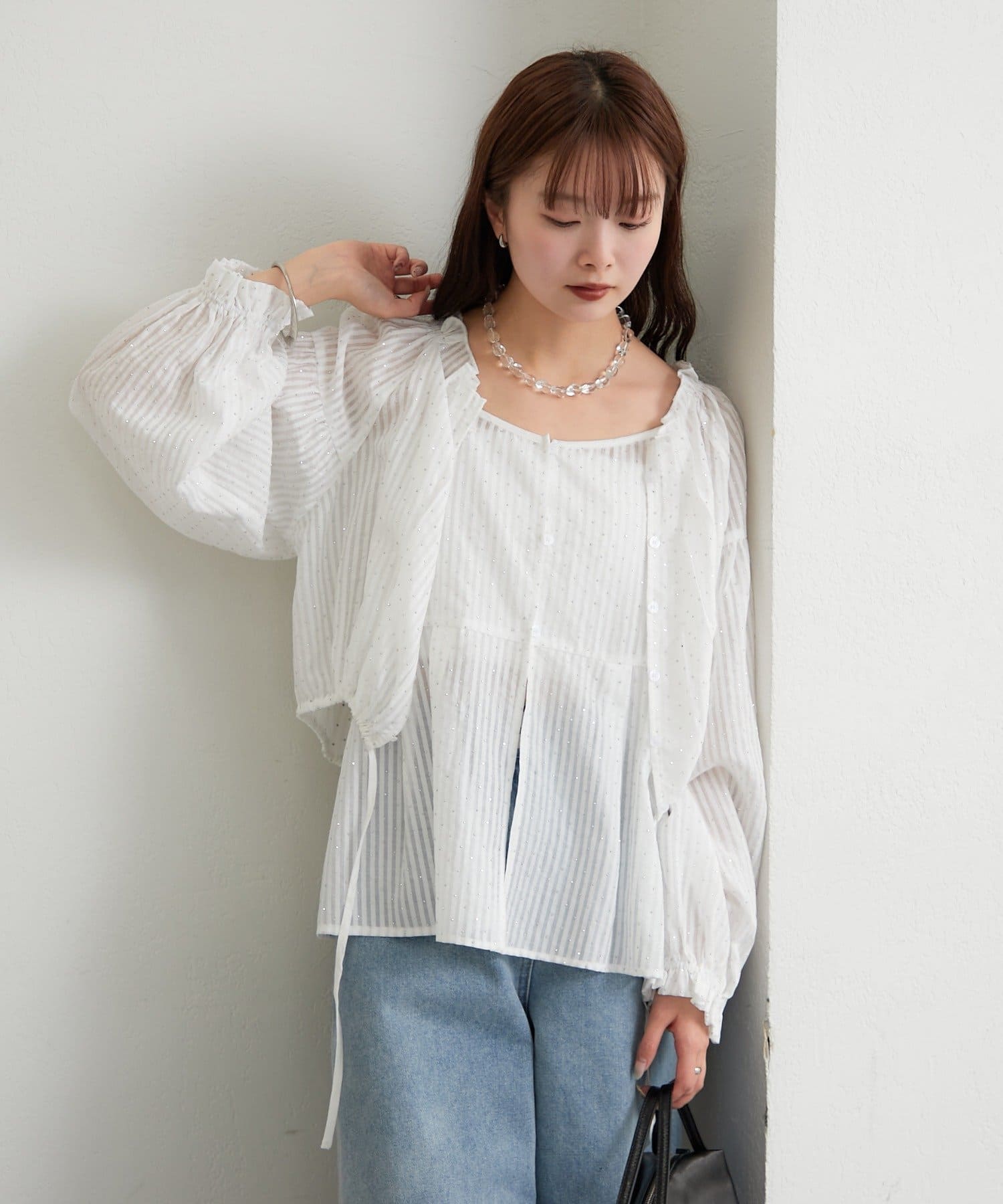 着回し力抜群◎キラキラふんわりブラウスとビスチェの主役級SETアイテム
