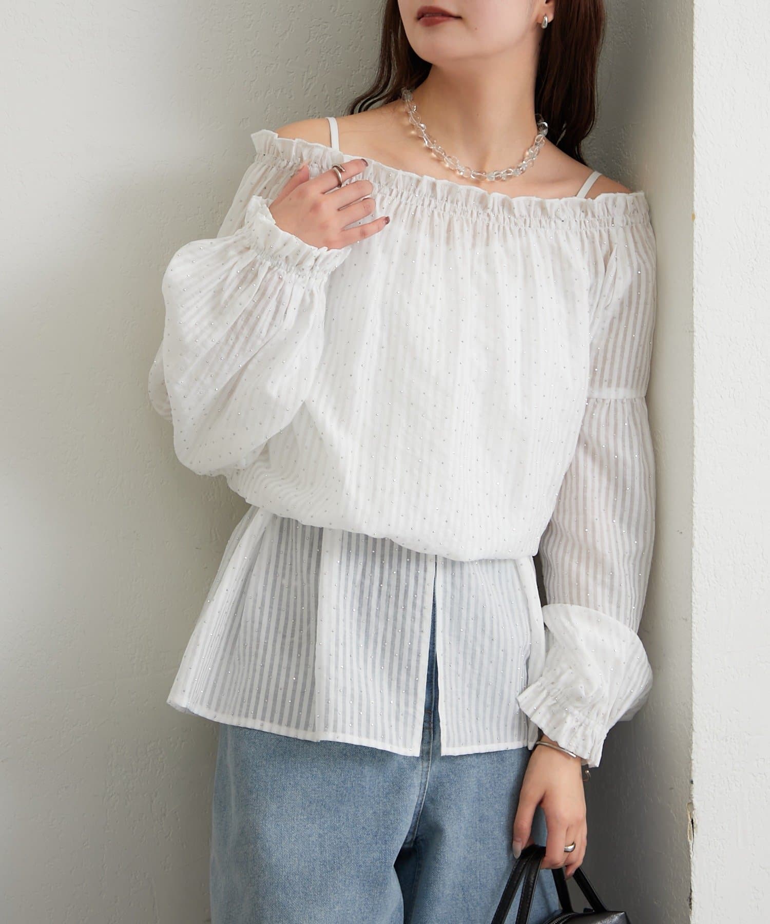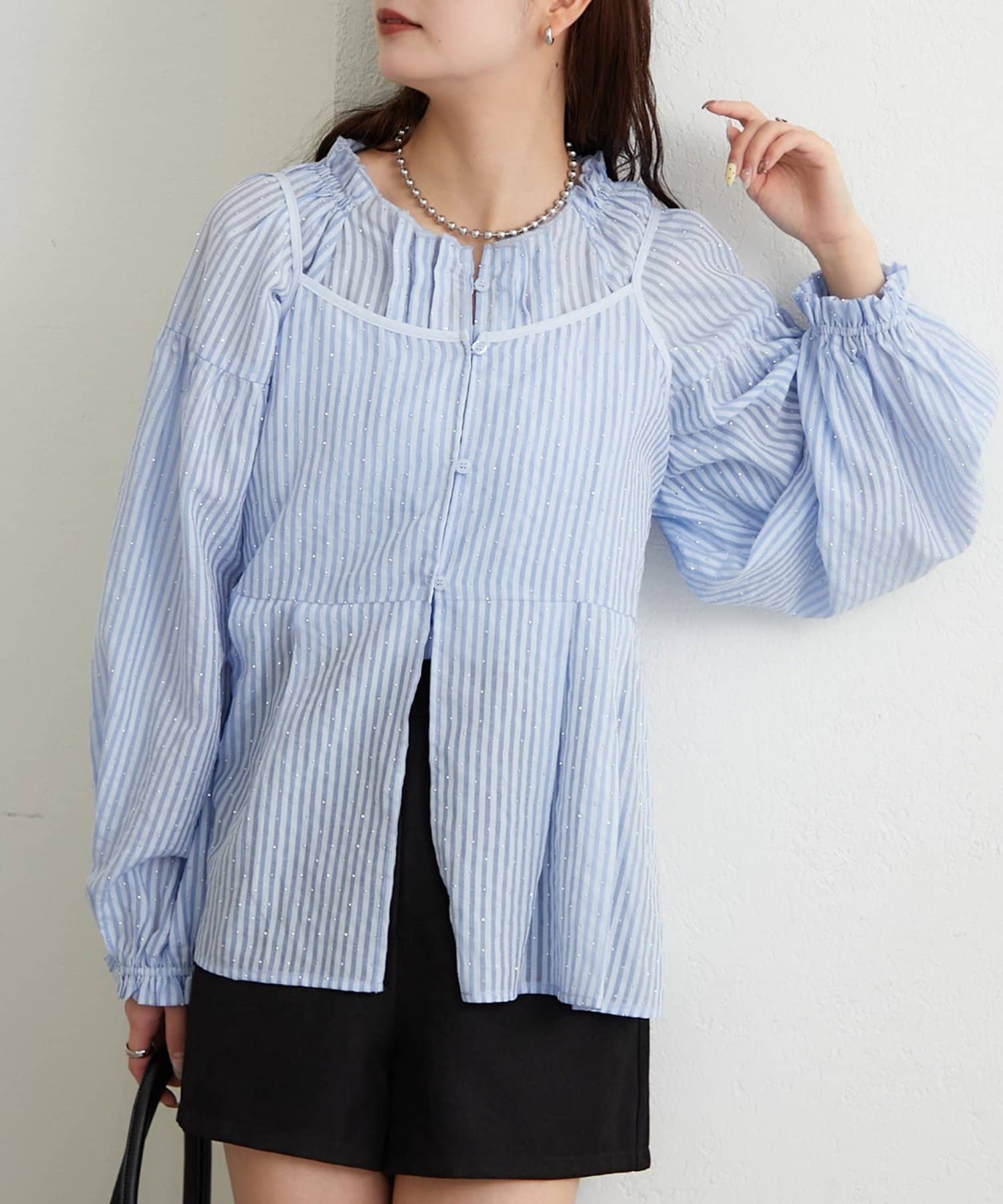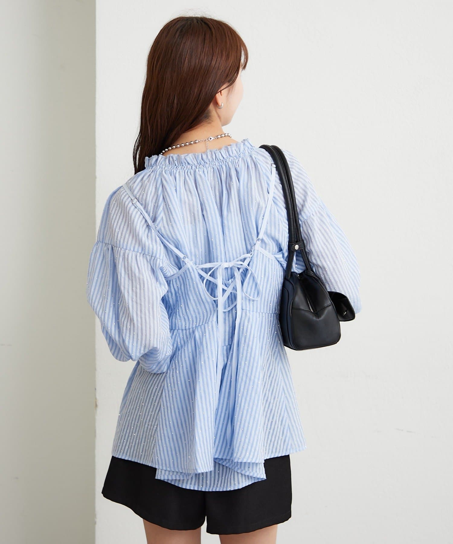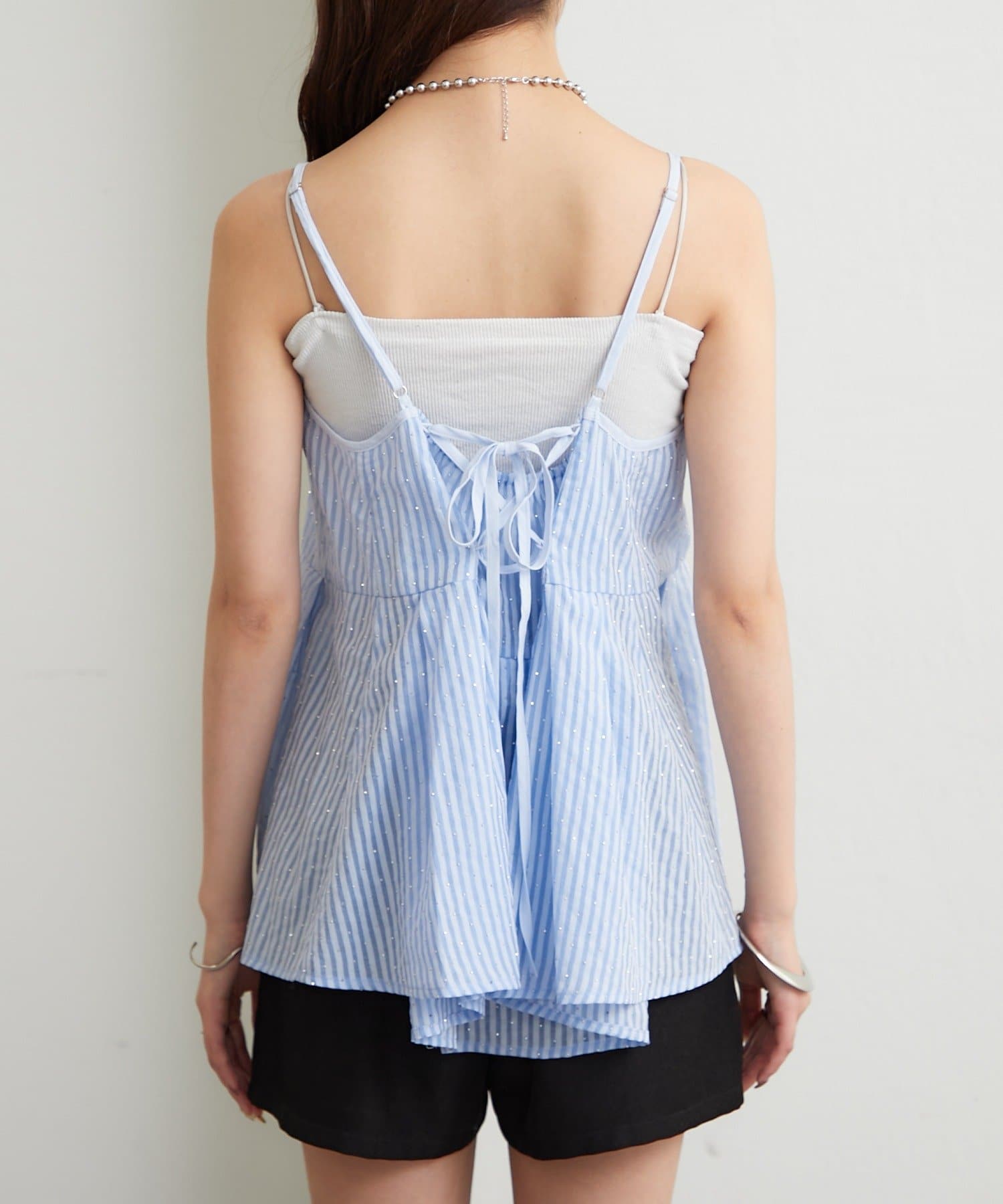 ラメストライプビスチェSETブラウス