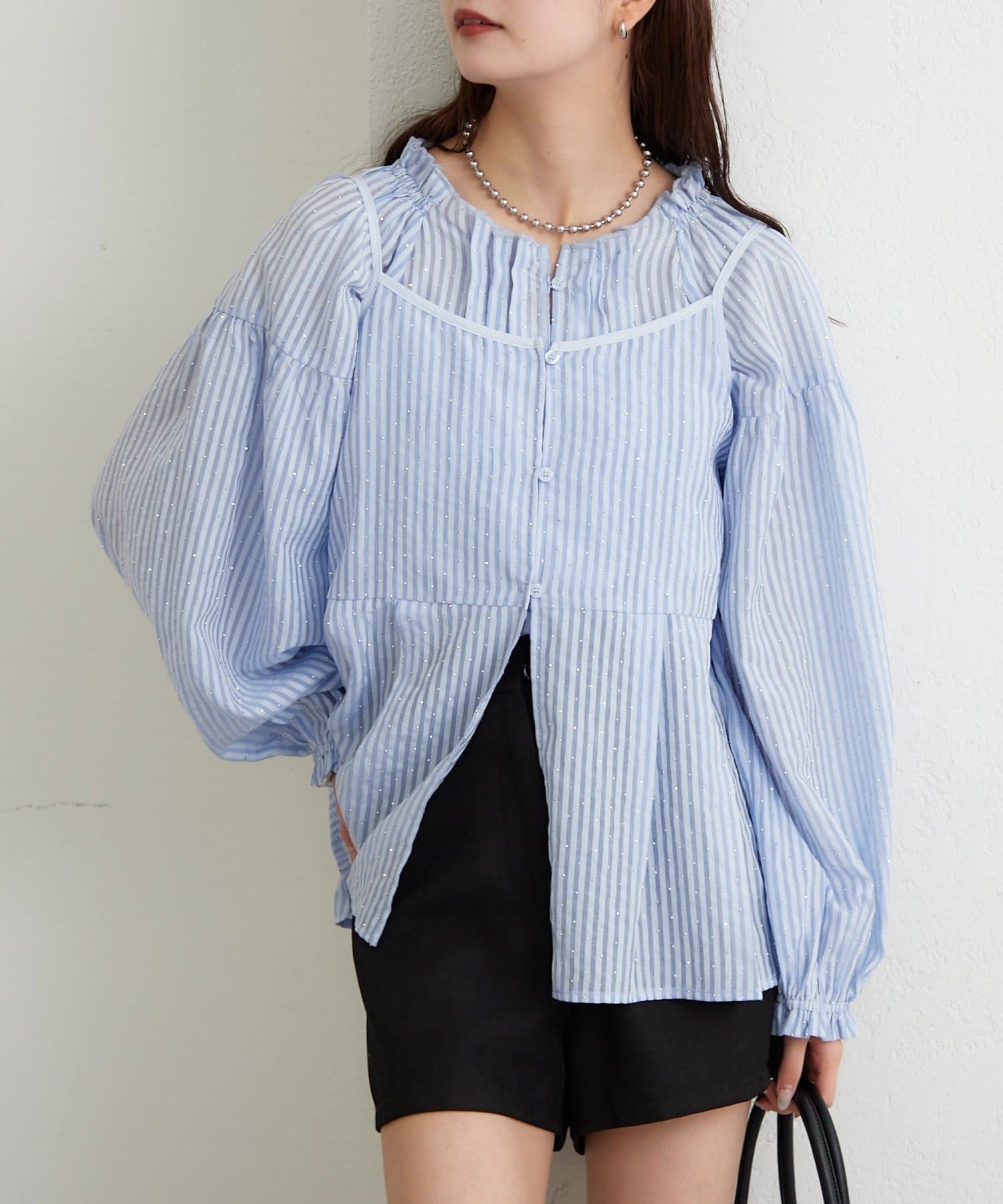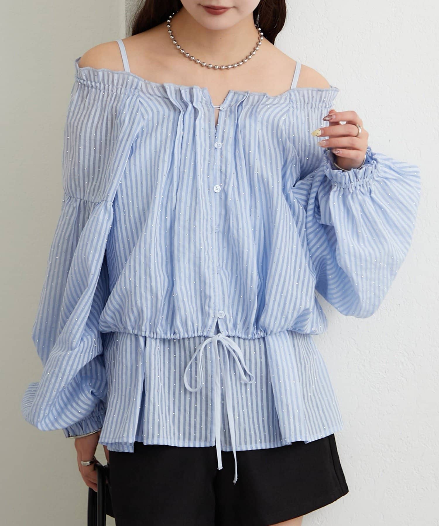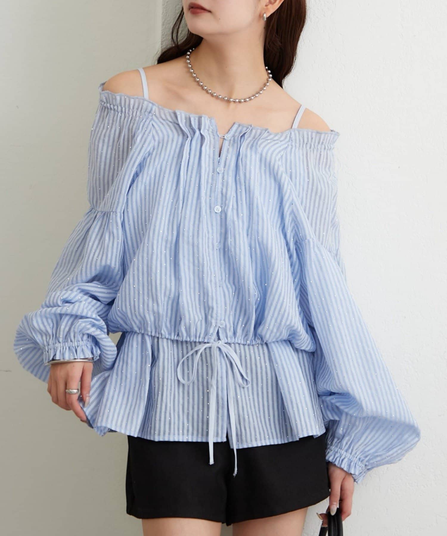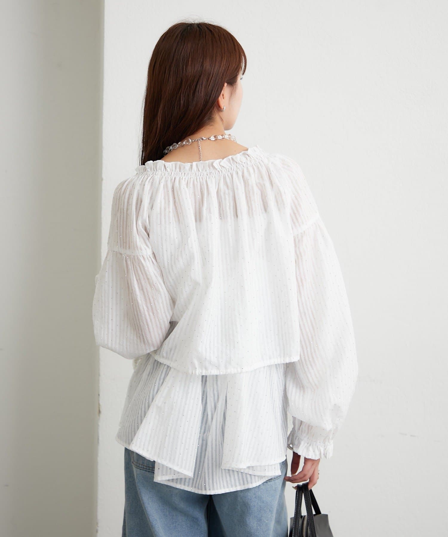 ラメストライプビスチェSETブラウス