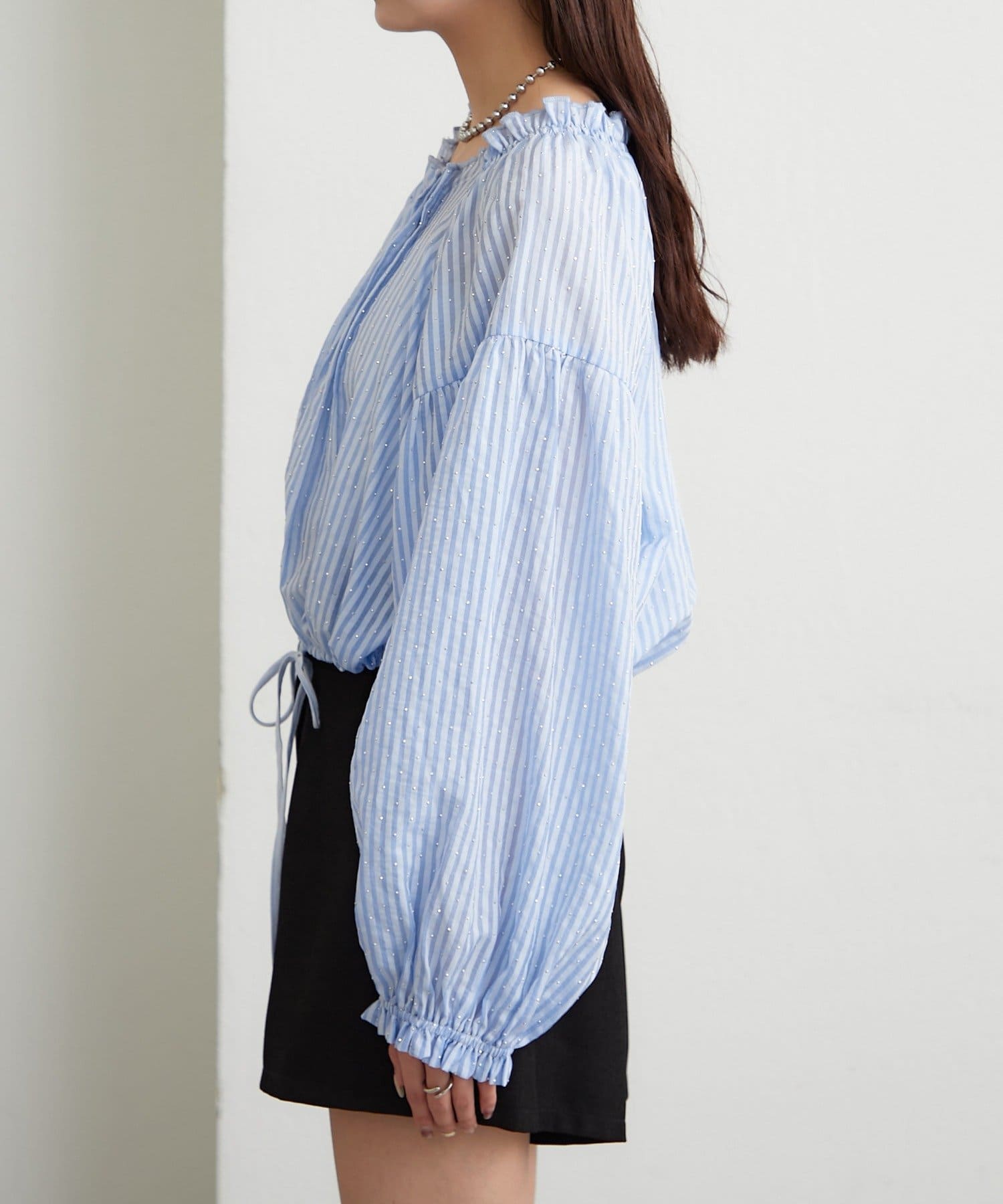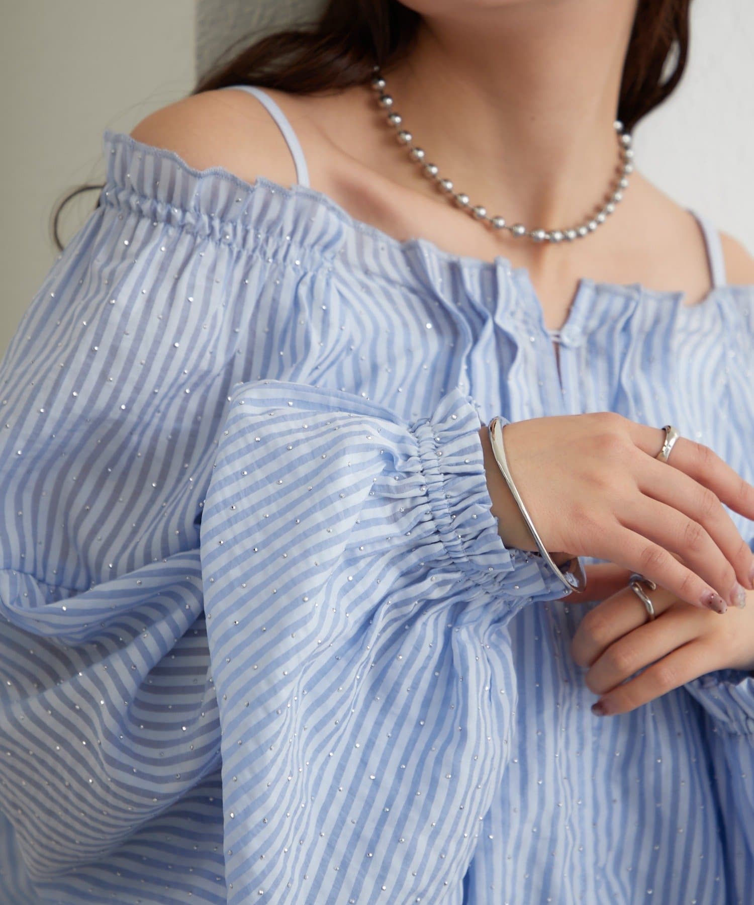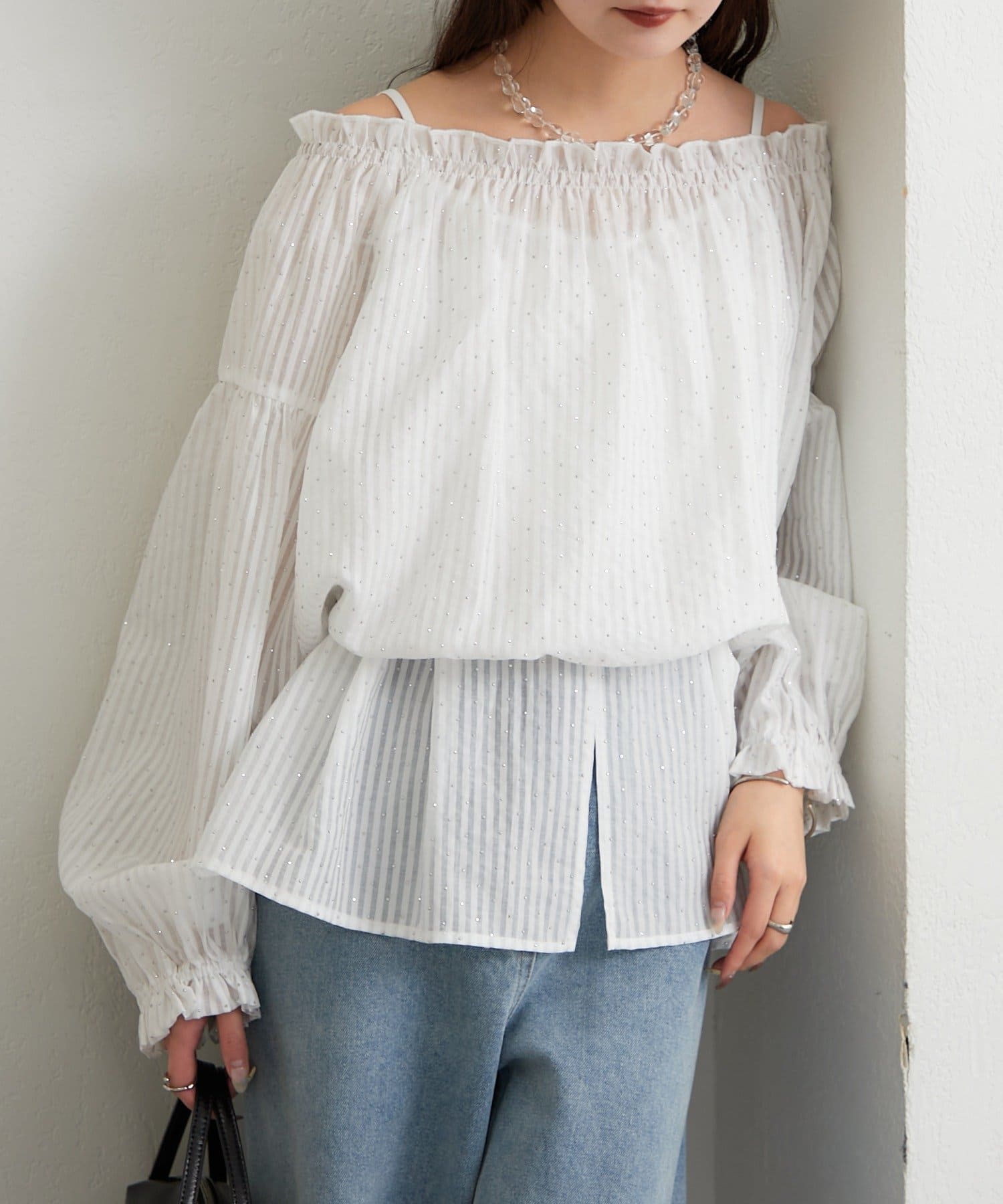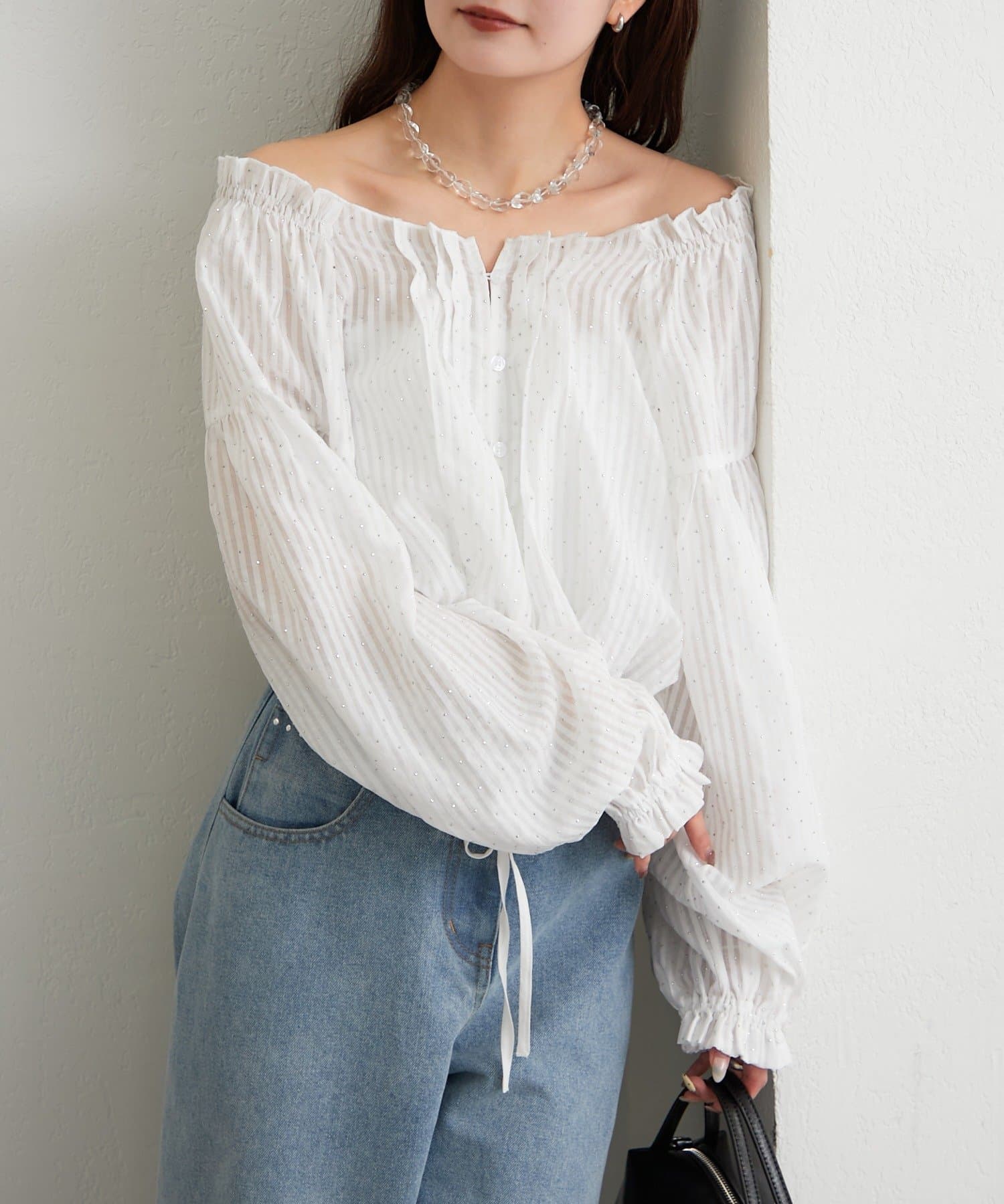 ラメストライプビスチェSETブラウス