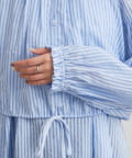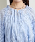 ブラウスは前後両前で着ていただける作りで、襟ぐりがゴム仕様なのでオフショルにして着ていただくことも可能です。