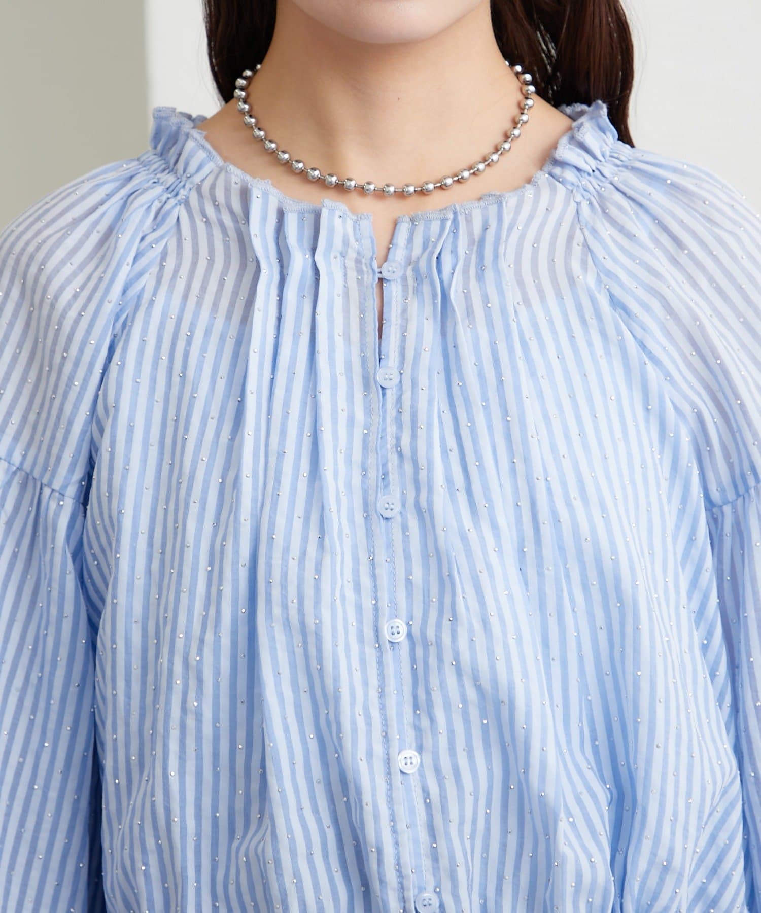 ラメストライプビスチェSETブラウス