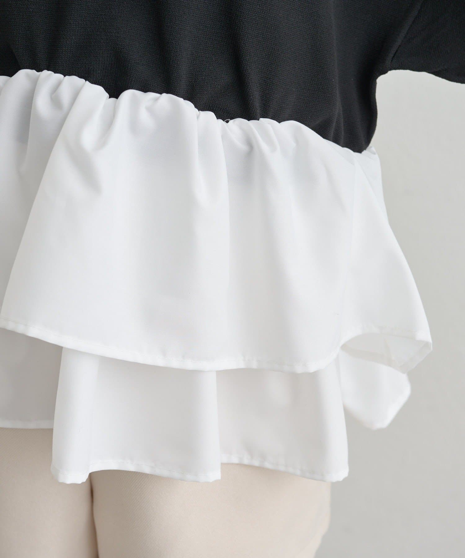 ・ウエスト切替から広がるペプラムシルエットが女性らしい印象に。