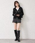 ミニボトムで合わせるとフェミニン感溢れるスタイリングになります。