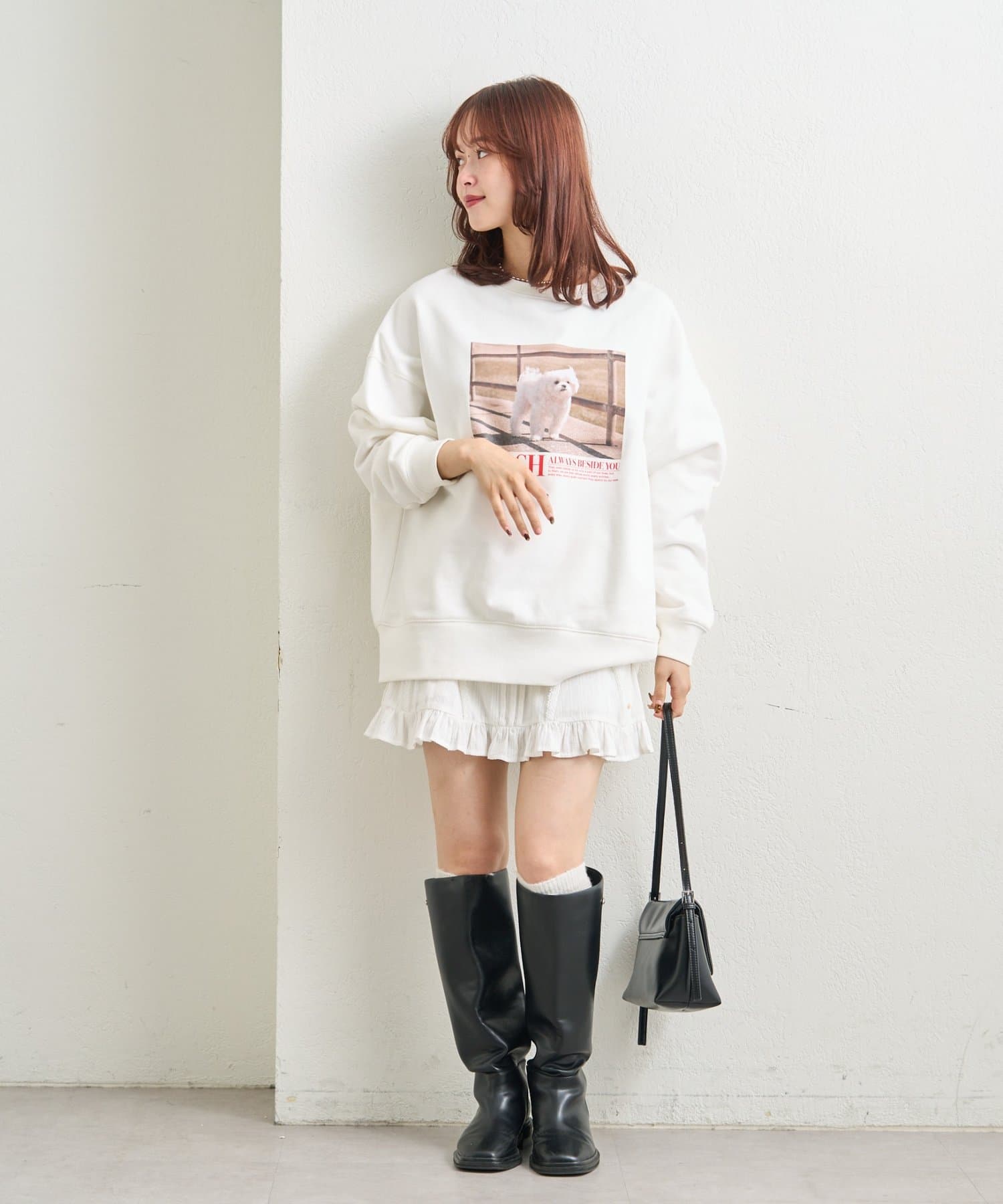 フロントのプリントが目を惹く、お洒落見えスウェット。1枚で存在感のあるアイテムです。