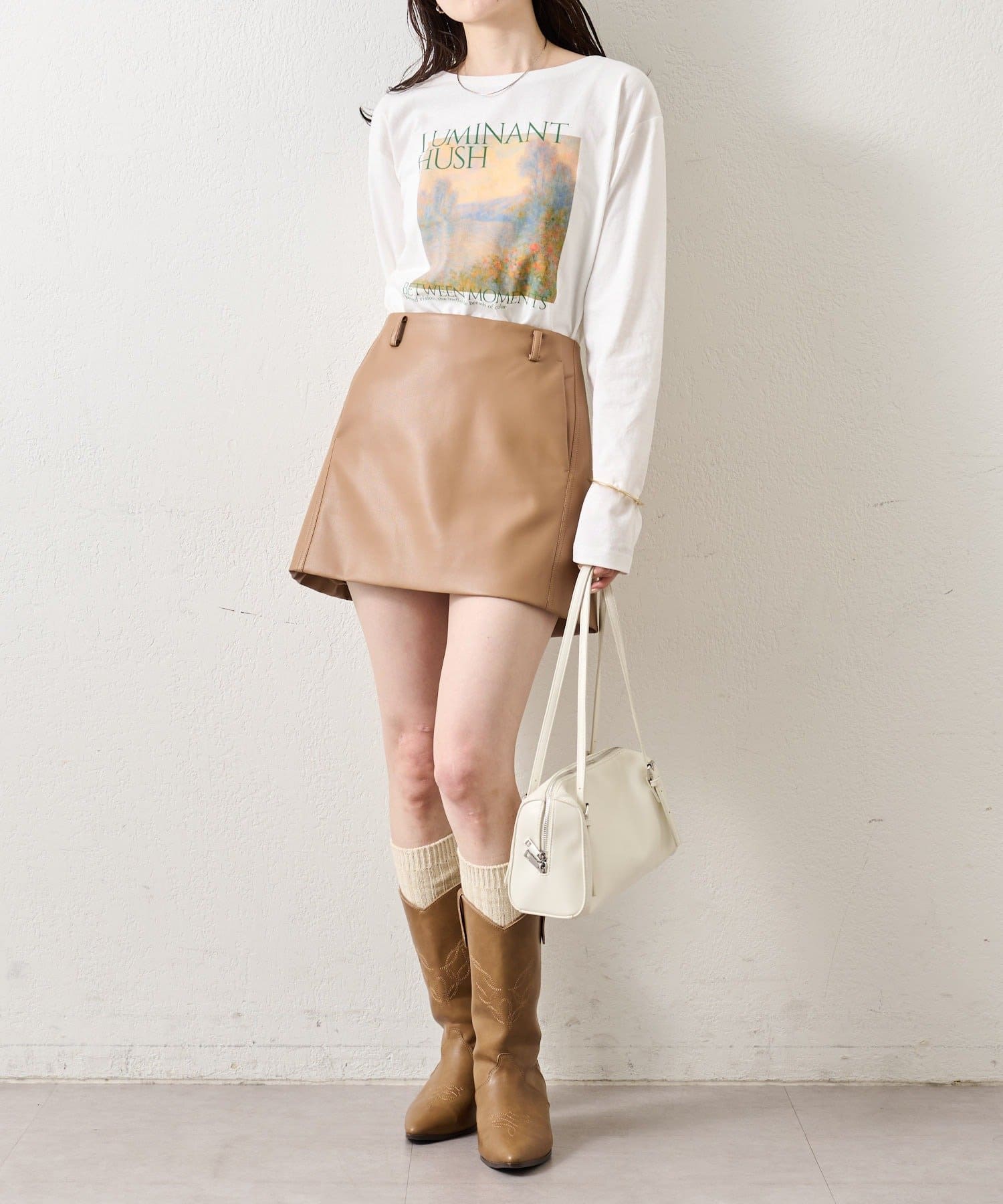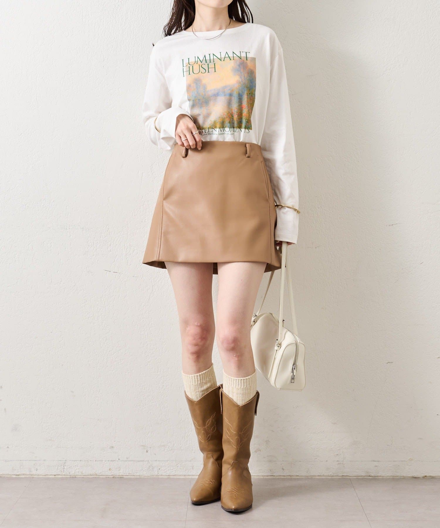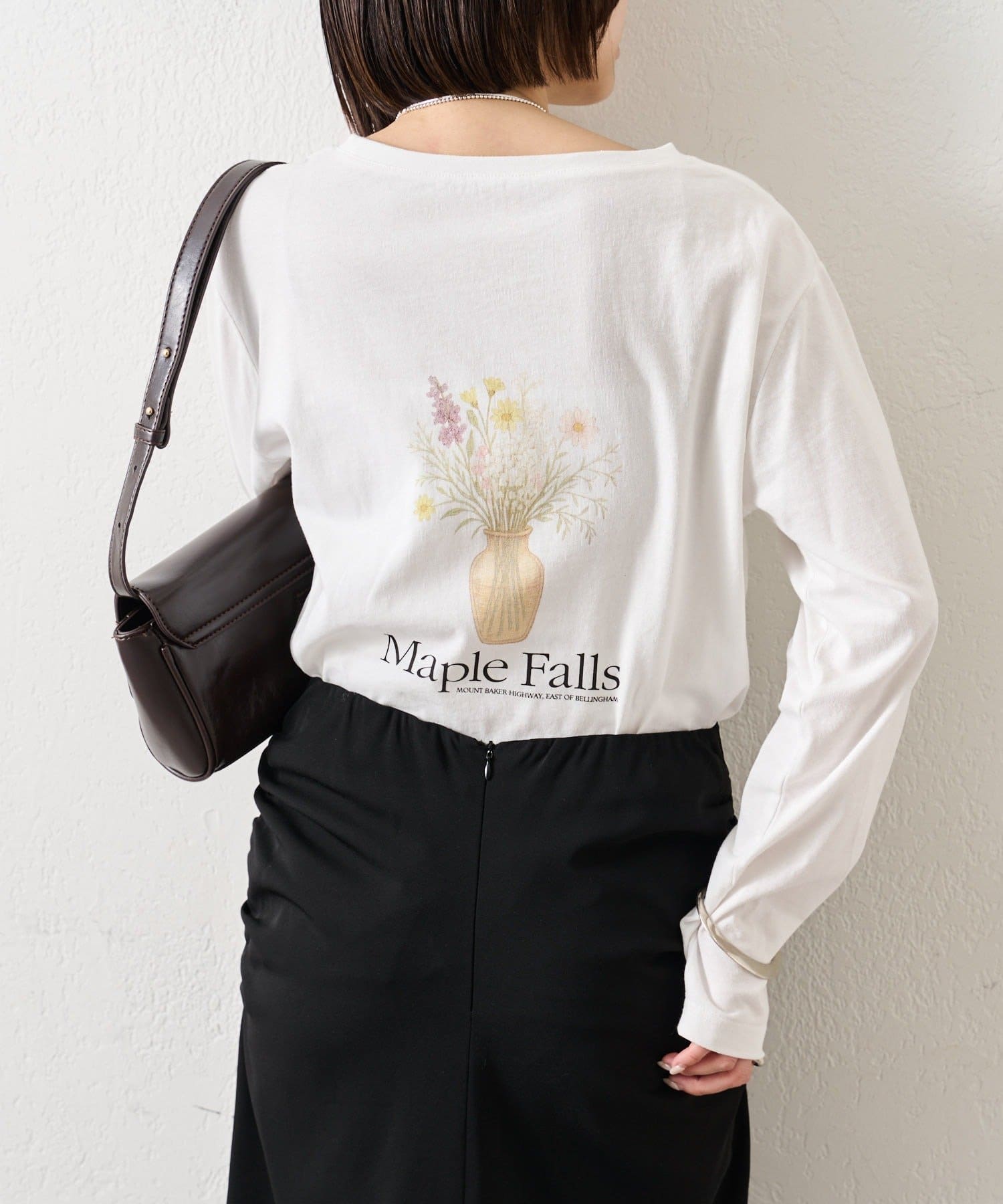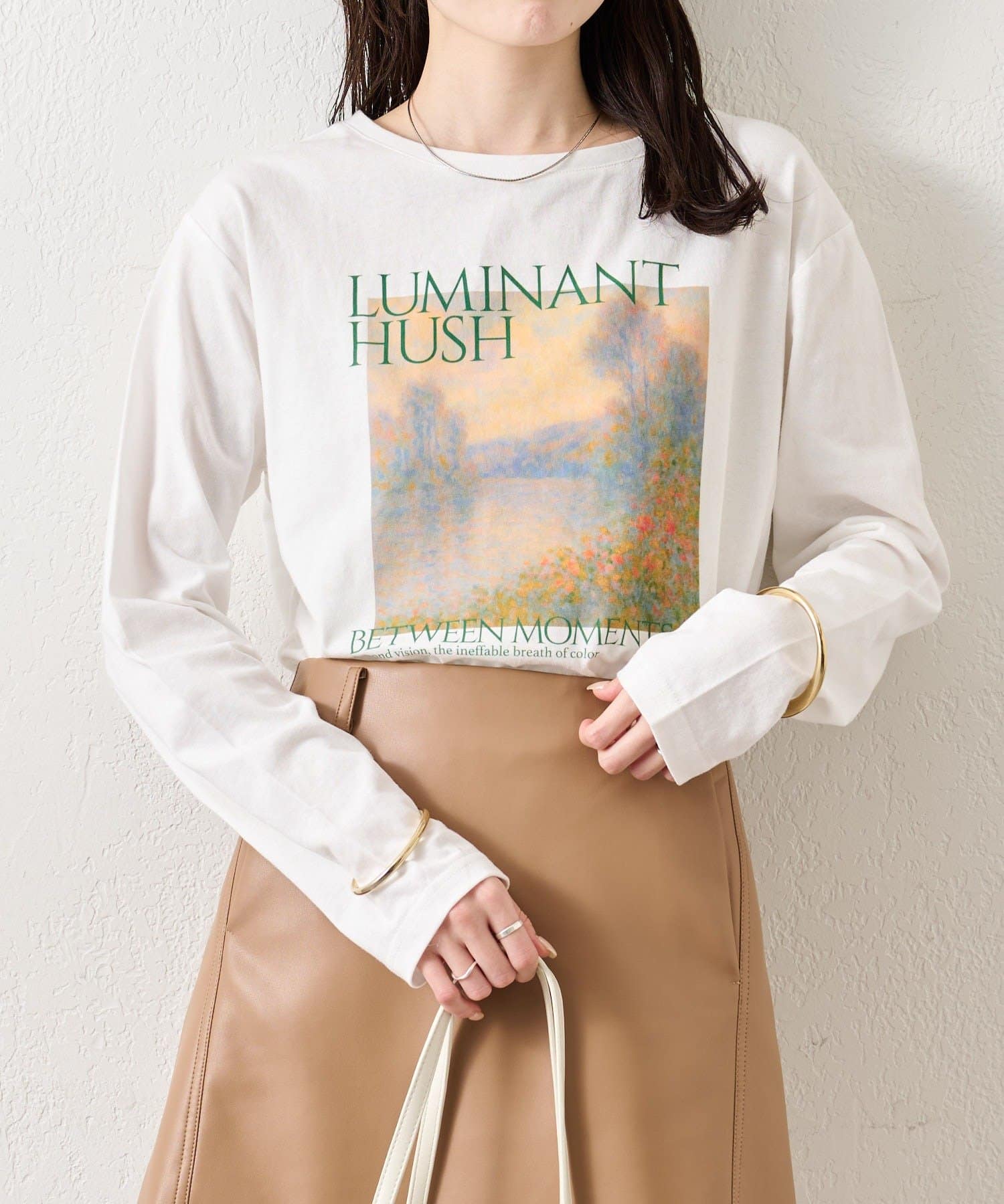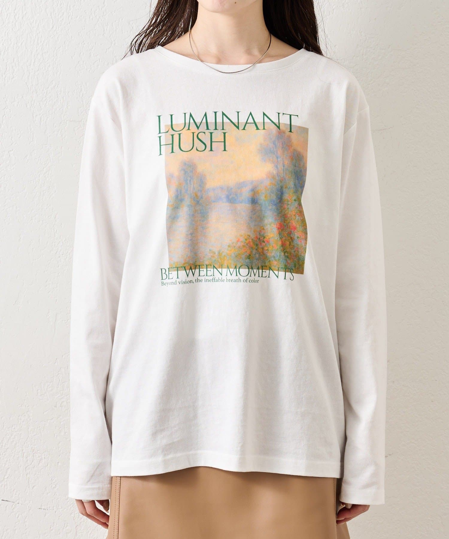 落ちつきカラーのプリントデザインが大人カジュアルスタイルに活躍するロンT