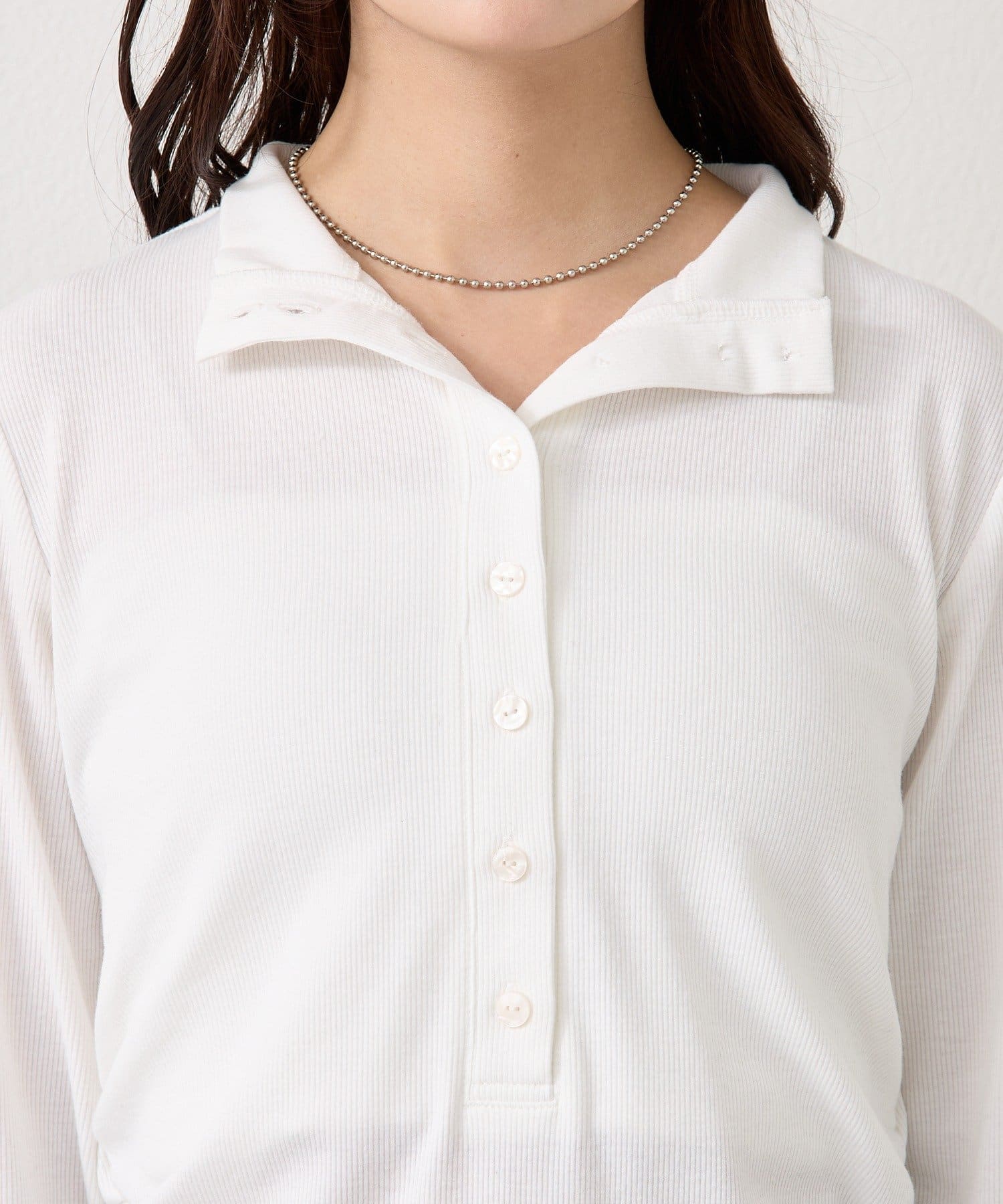 デコルテの開き具合で抜け感をプラス◎サイドギャザーが女性らしいヘンリーネックトップス!