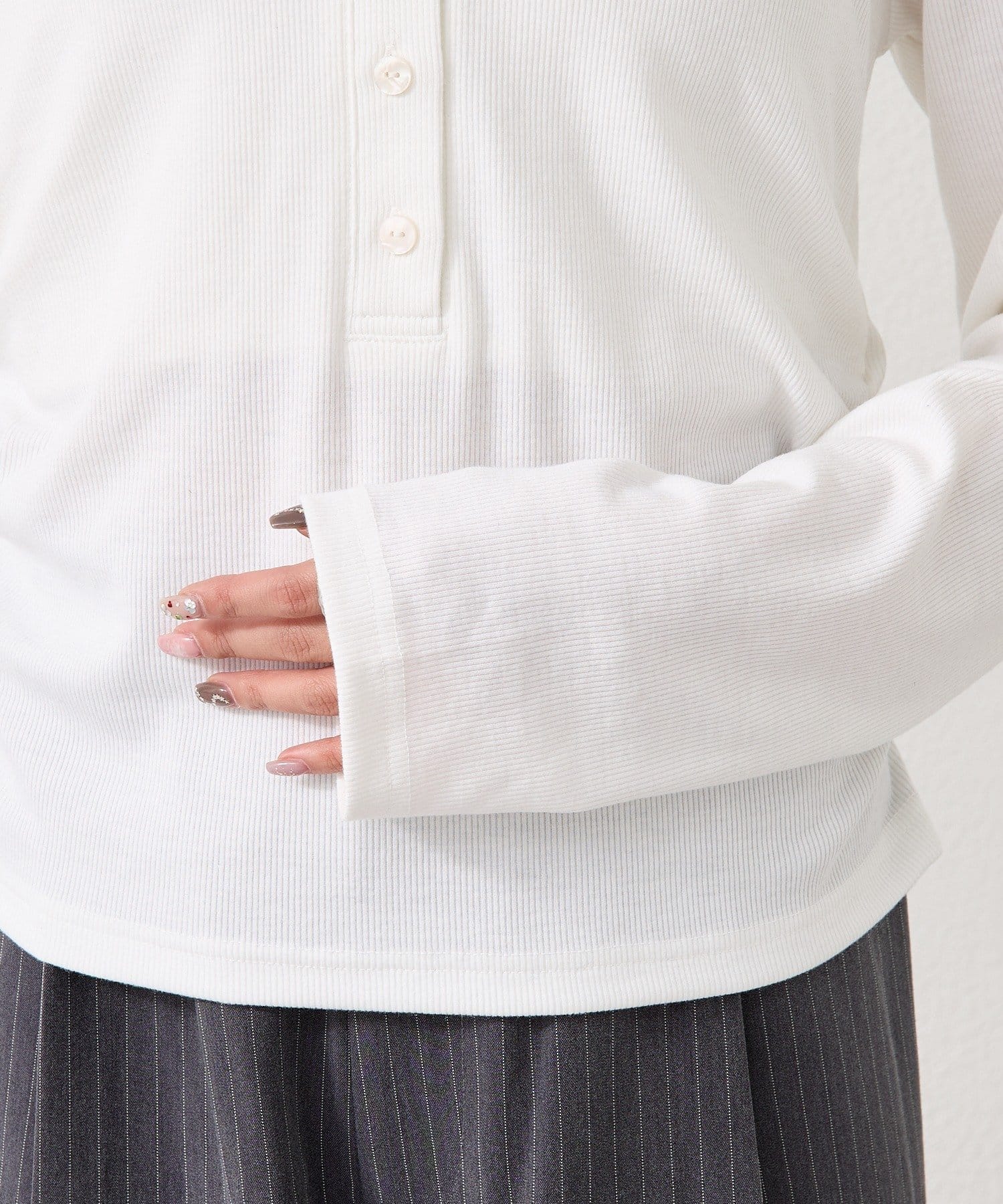 ・ヘンリーネックデザインが顔周りに抜け感を演出してくれます。