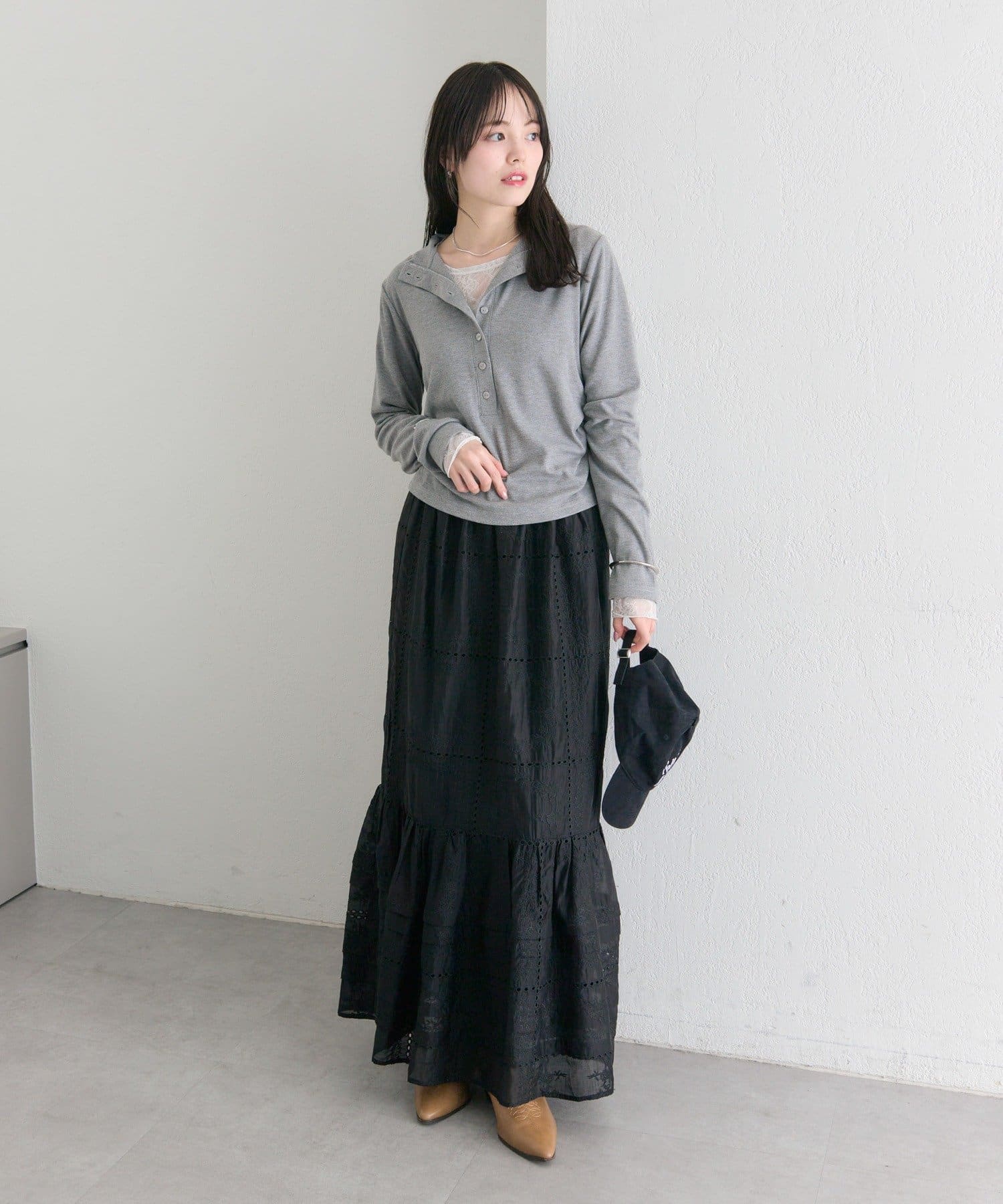 首元の開き具合を合わせるアイテムや気分で変えられるのが嬉しいポイントです◎