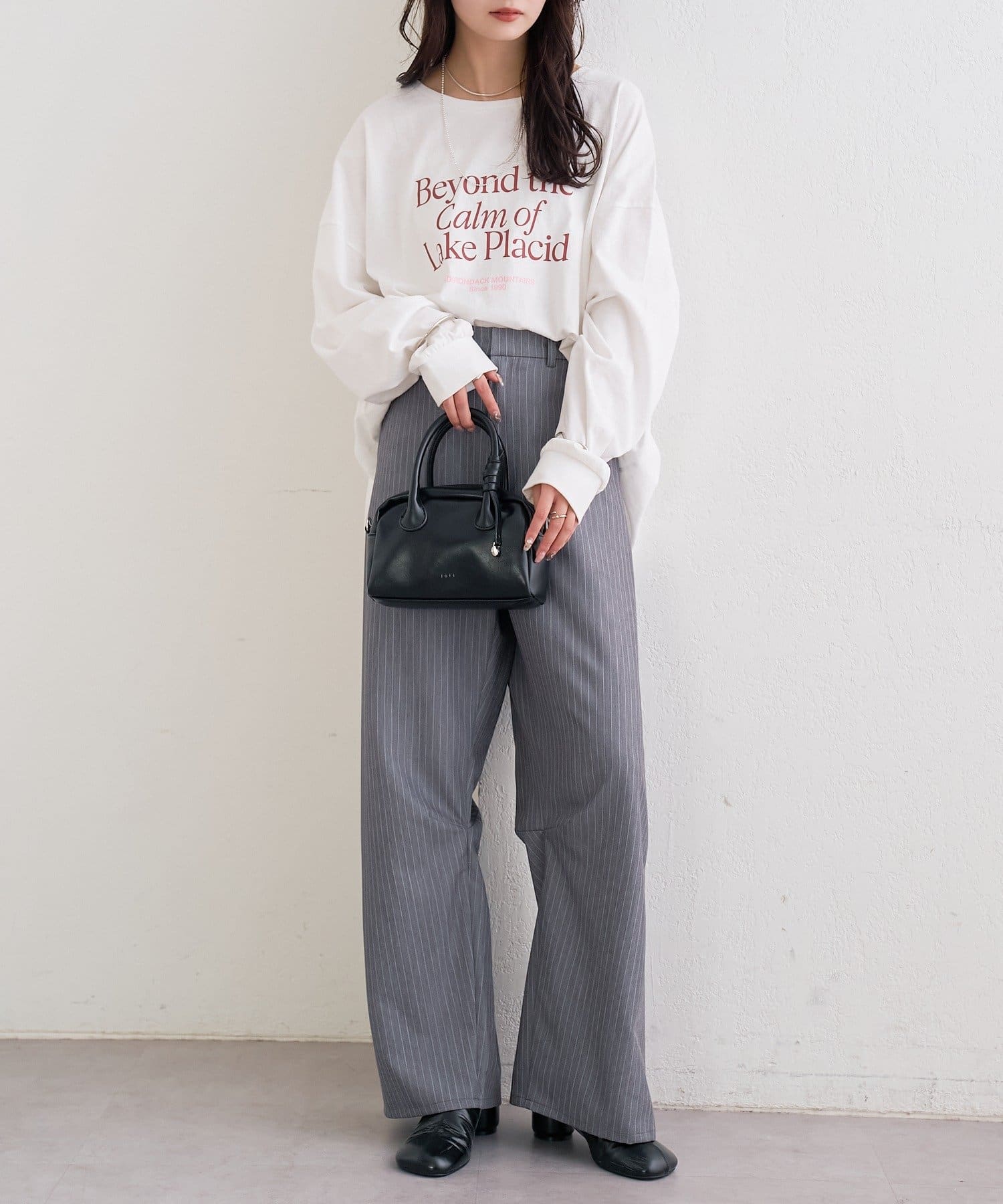 ・スラックスやロングスカートと合わせて、大人カジュアルにまとめるのがおすすめ。