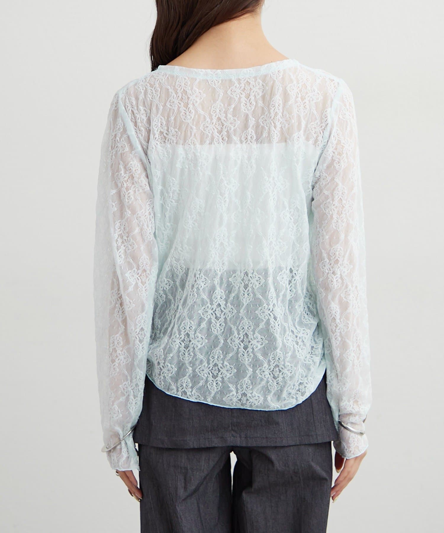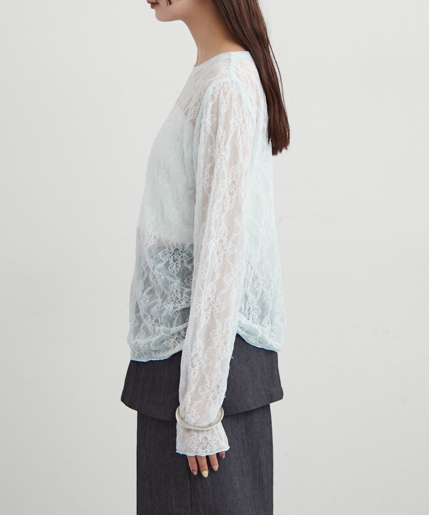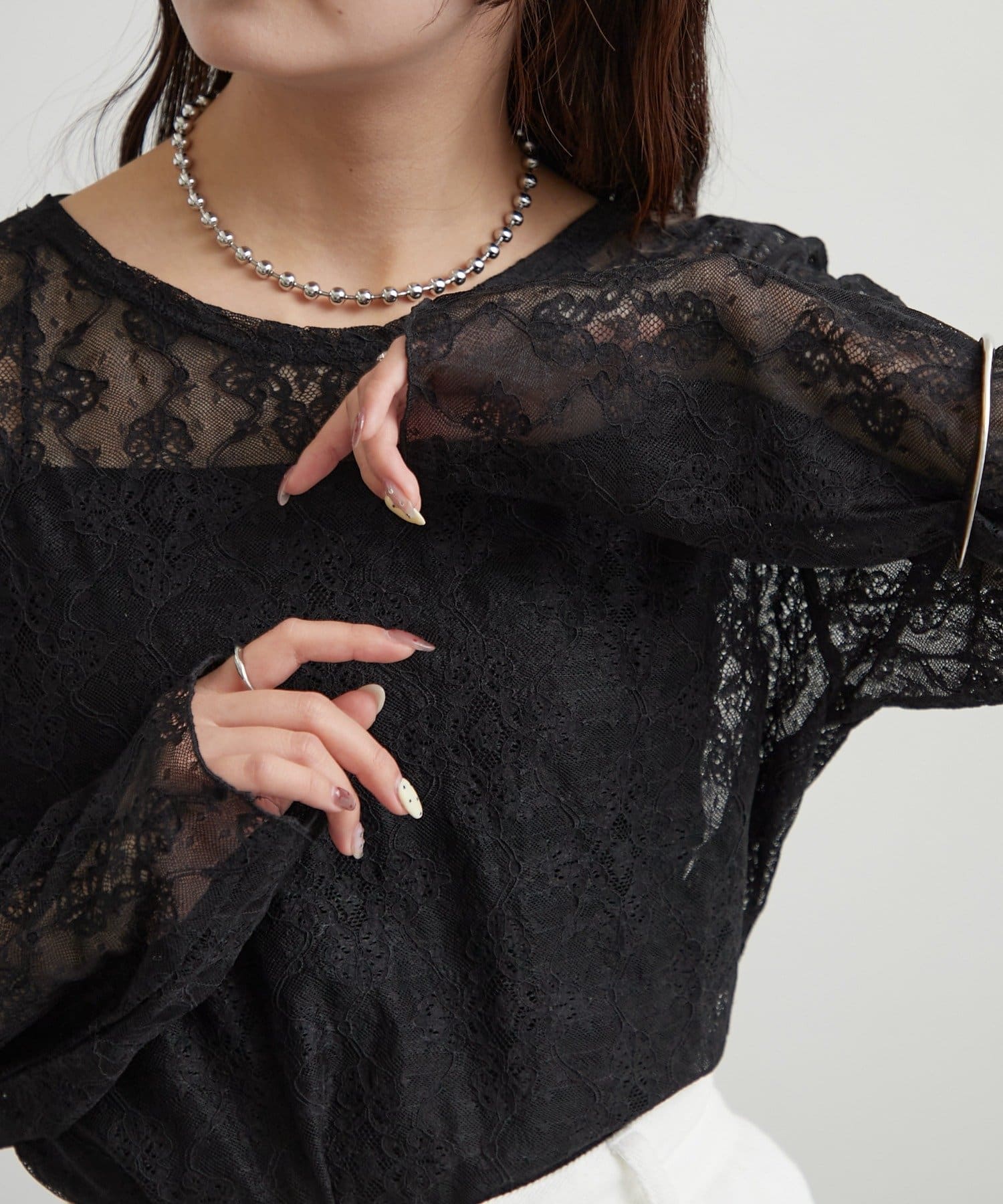 レースの透け感で女性らしさをプラスするロングTシャツ