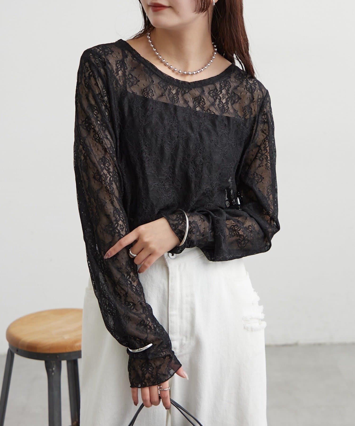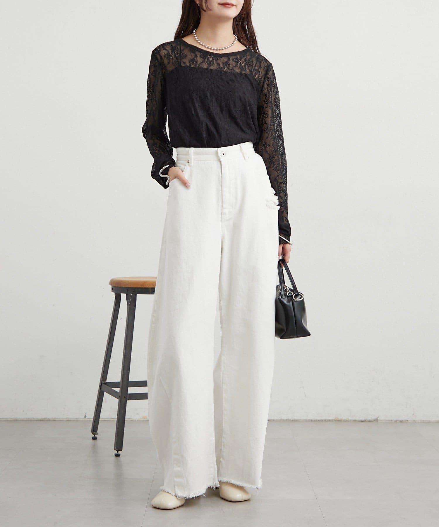・スラックスやデニムに合わせて、レースを引き立てた大人カジュアルに。