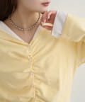 1枚で決まるトップスなので、シンプルなボトムスと合わせるだけでトレンドライクなスタイリングに。