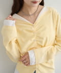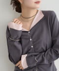 柔らかく、伸縮性のある生地感で着心地抜群。フロントボタンのデザインでスッキリとした印象に仕上がります。