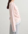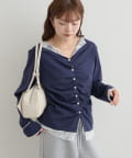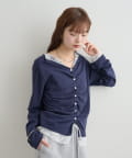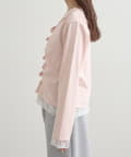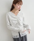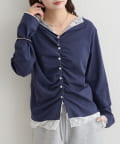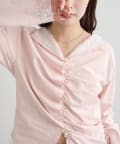 襟と袖口、裾から見える繊細なレースが女性らしい印象に。