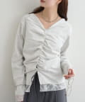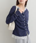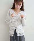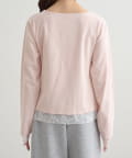 レースとカットソーを重ねたようなデザイン×配色で、1枚で旬なスタイリングが叶うトップス。