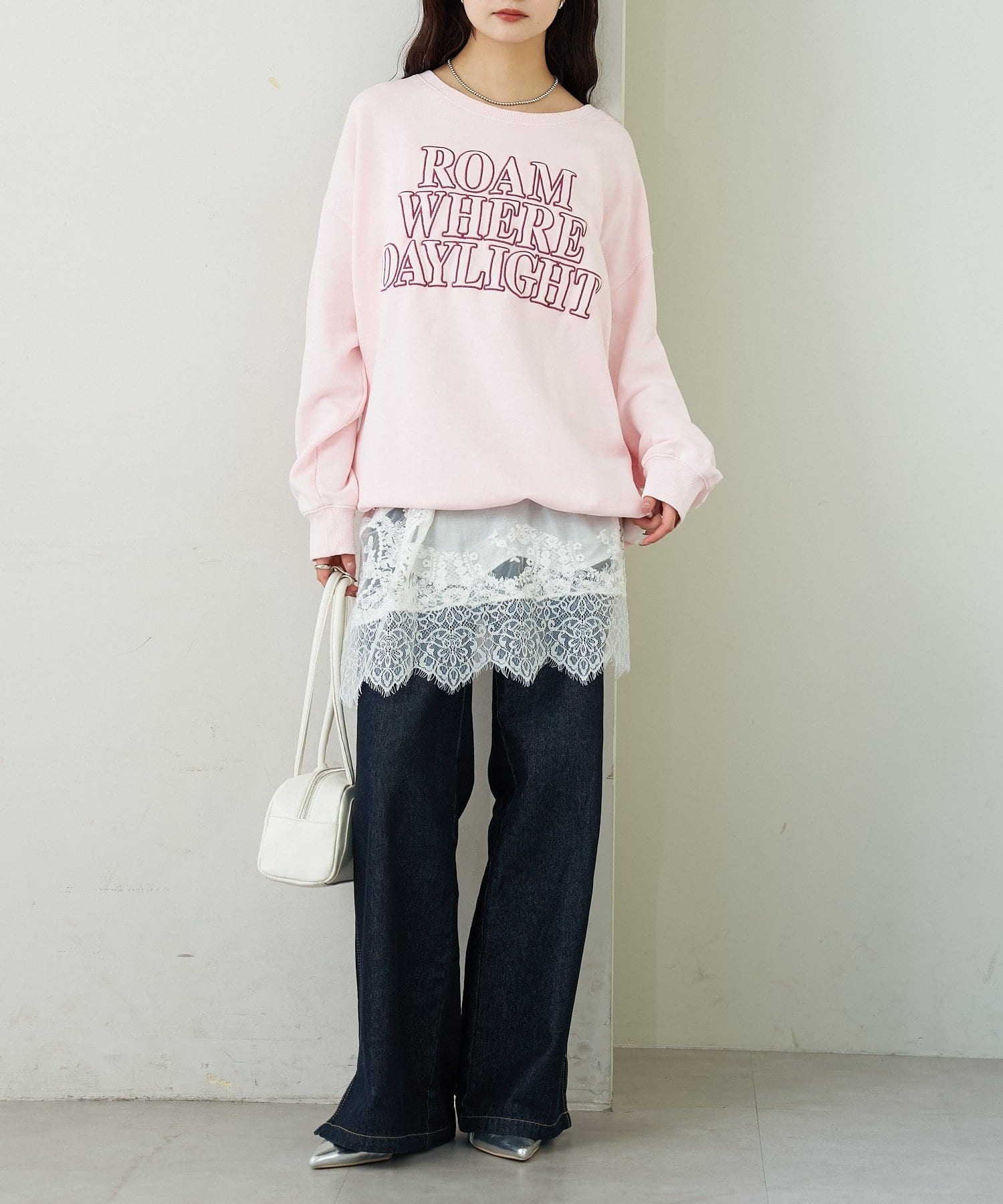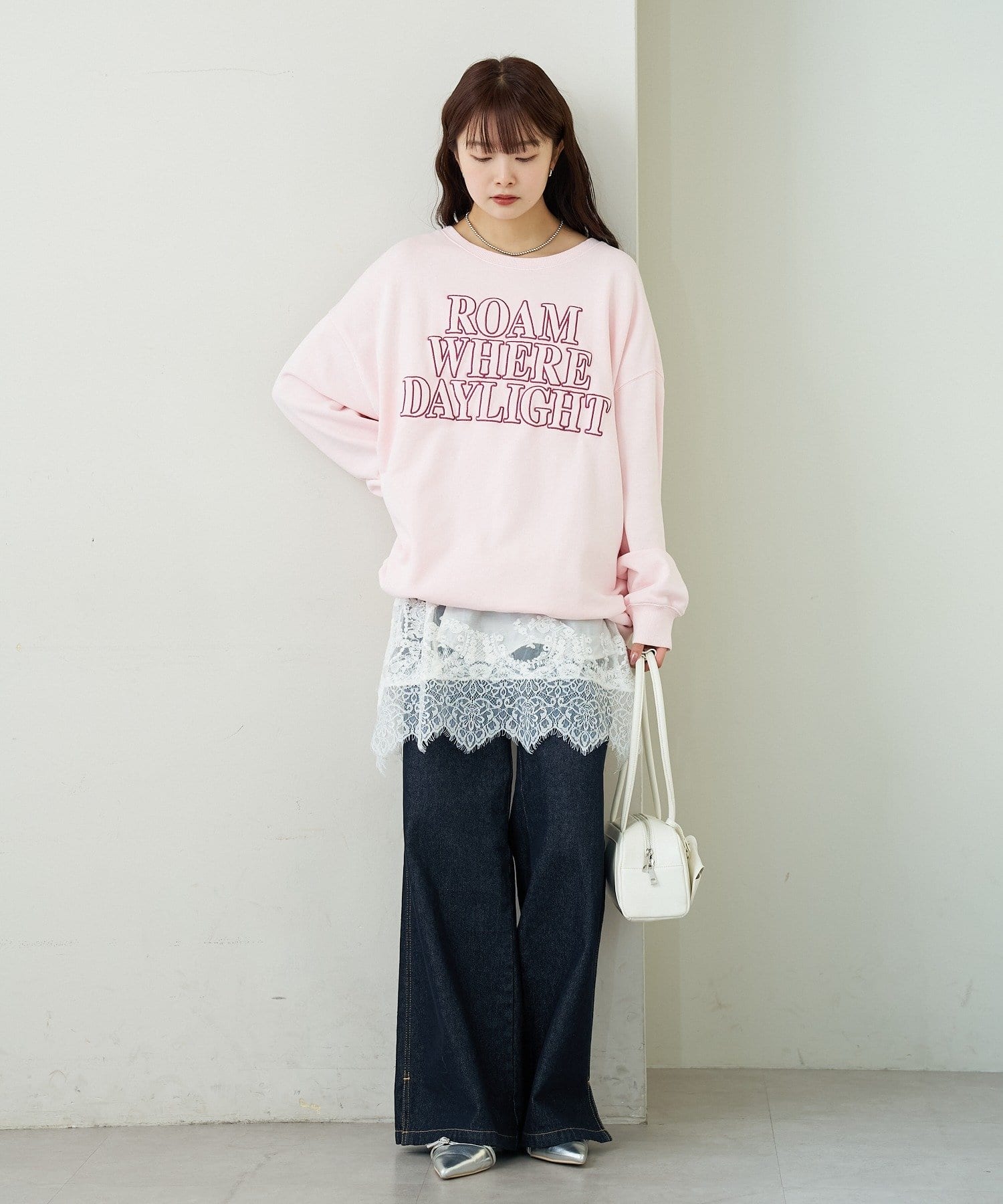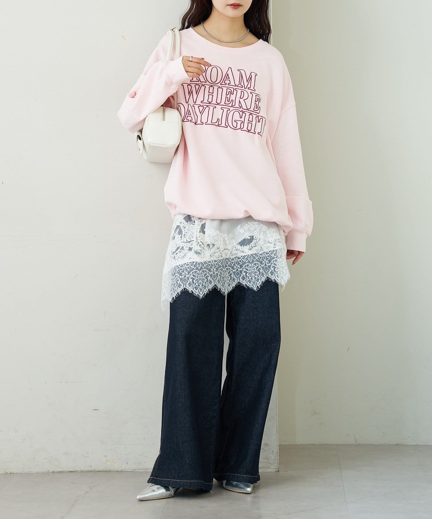 ・スカートやレースアイテムを合わせて、甘さをプラスするのもおすすめです。