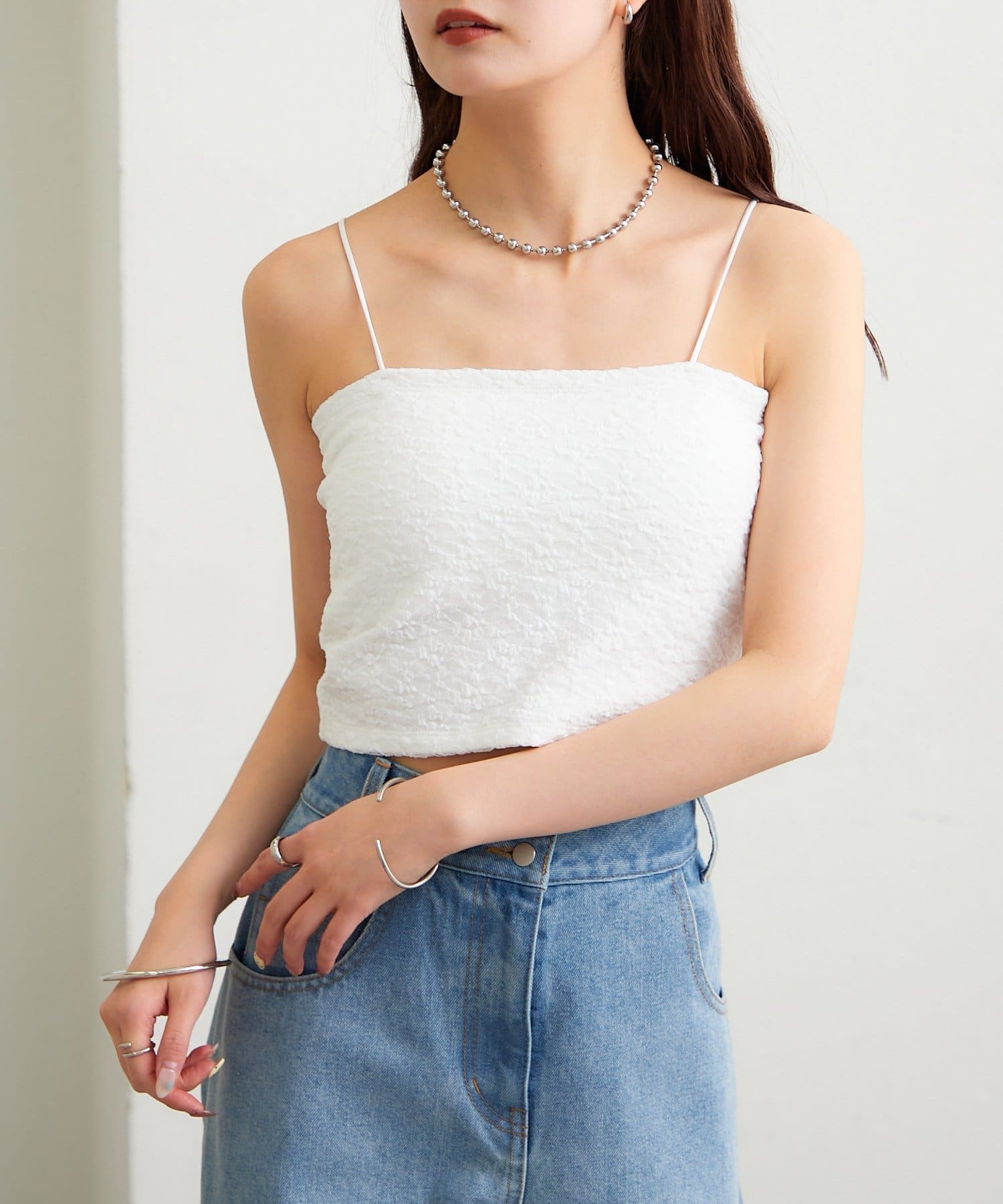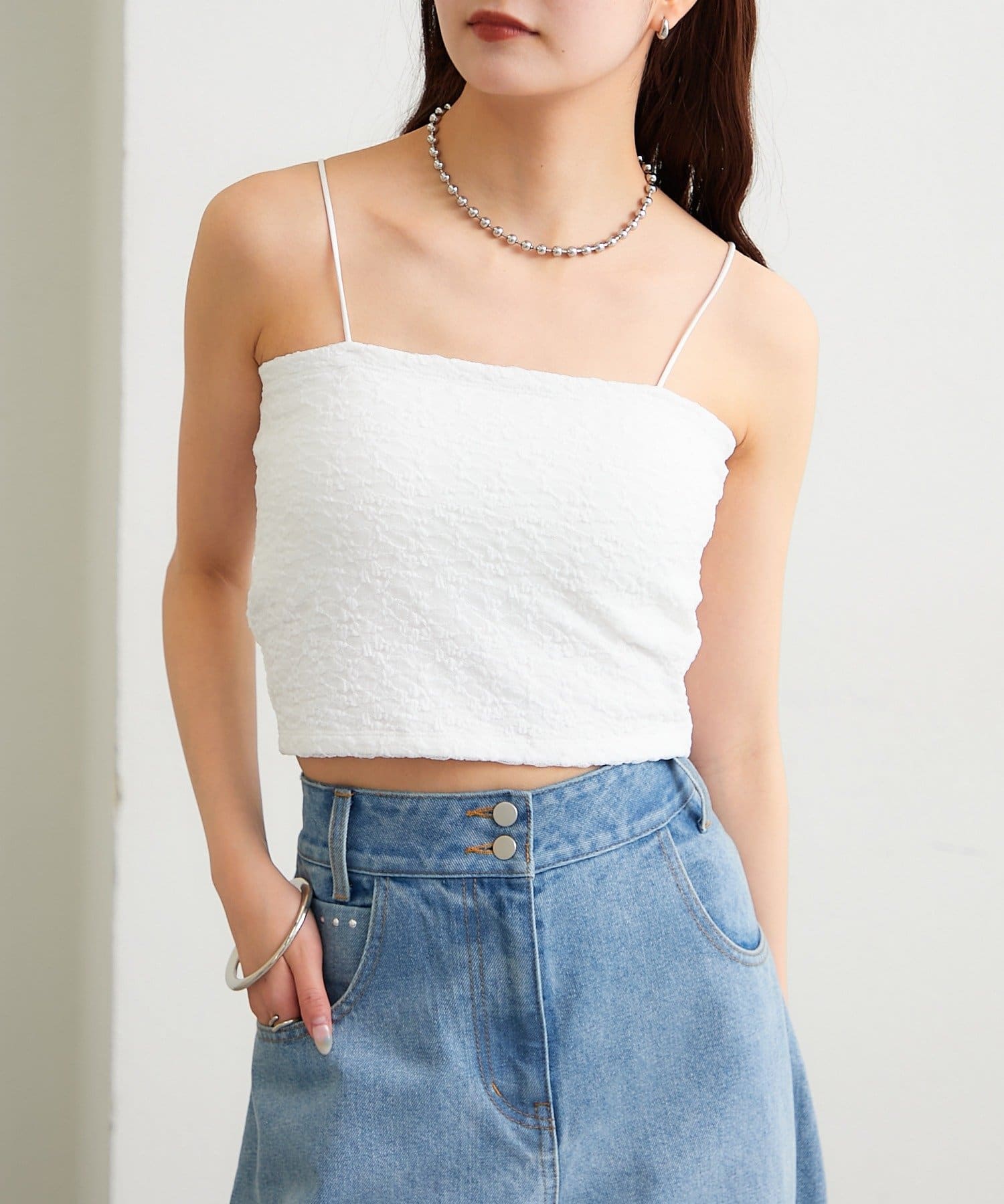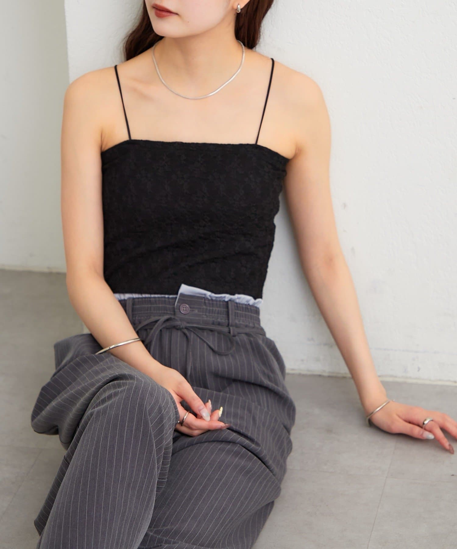 レースデザインがスタイリングの幅を広げてくれるパット付きキャミソール