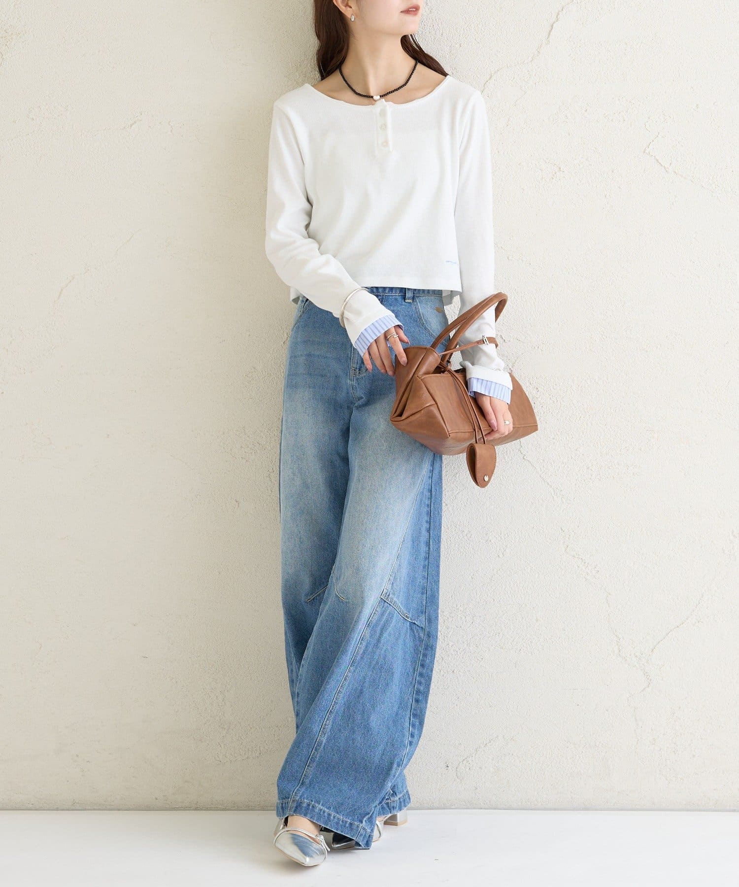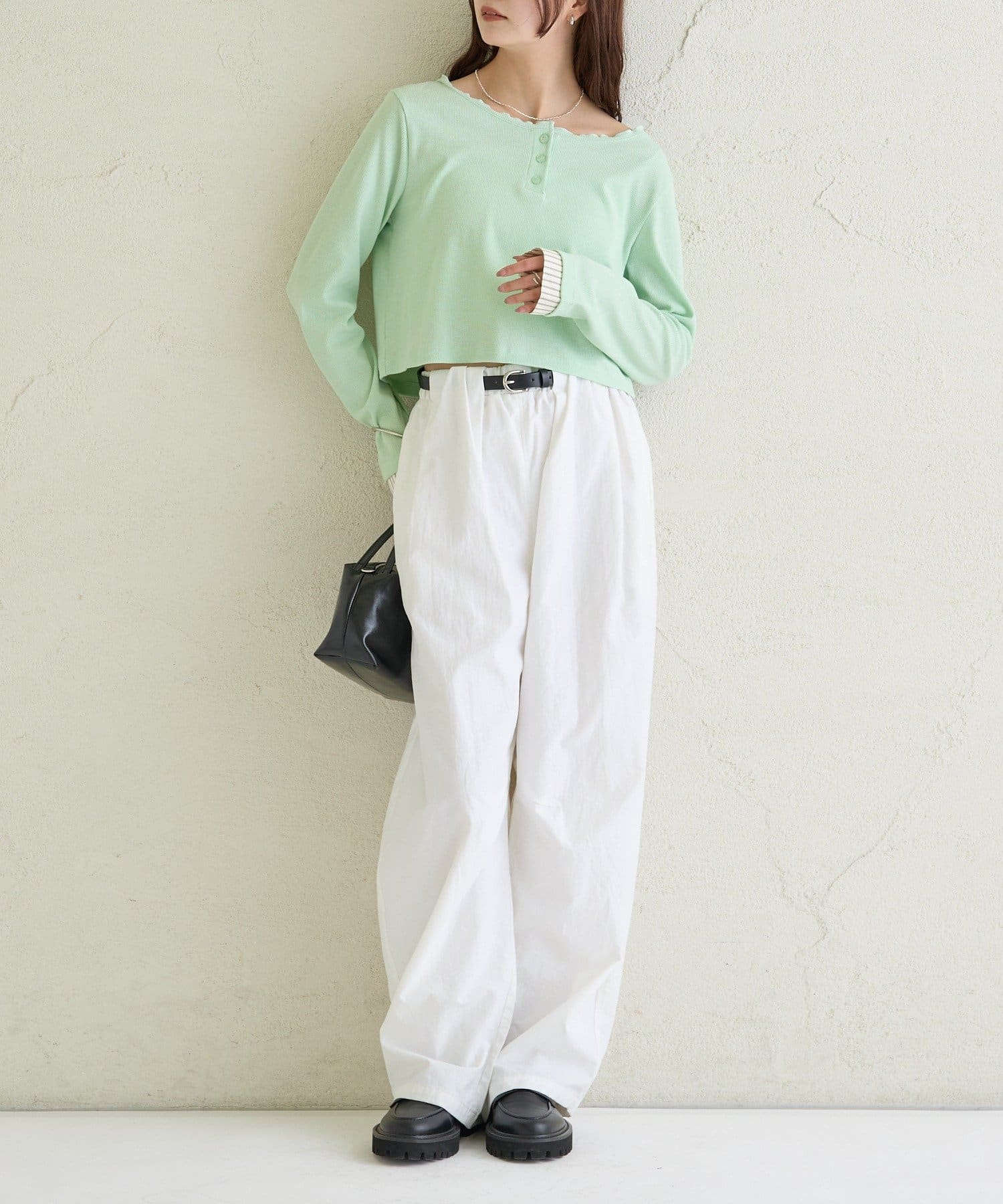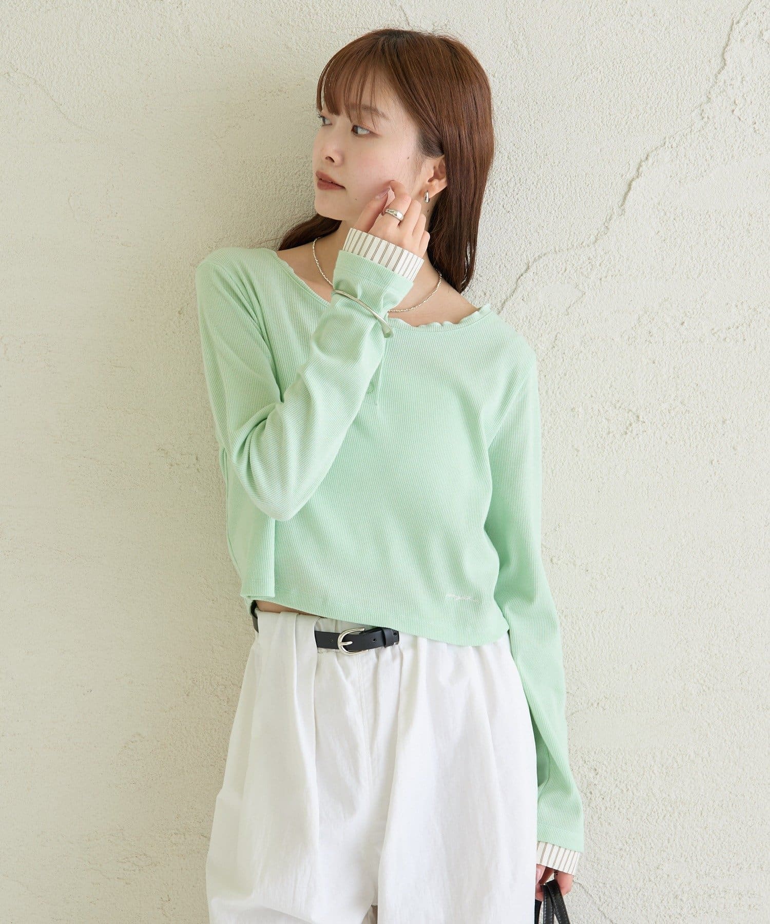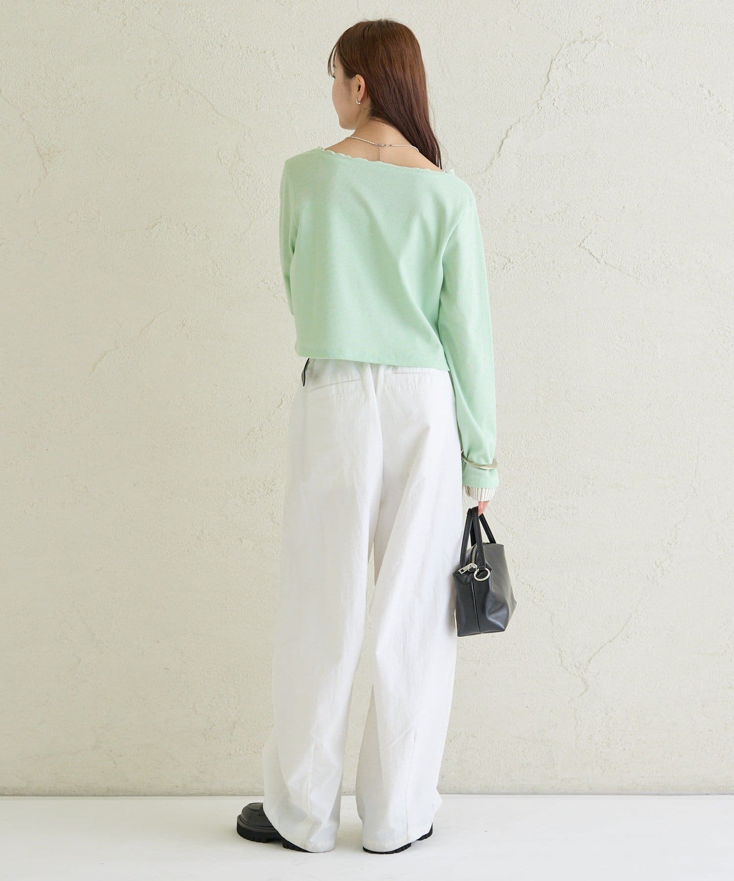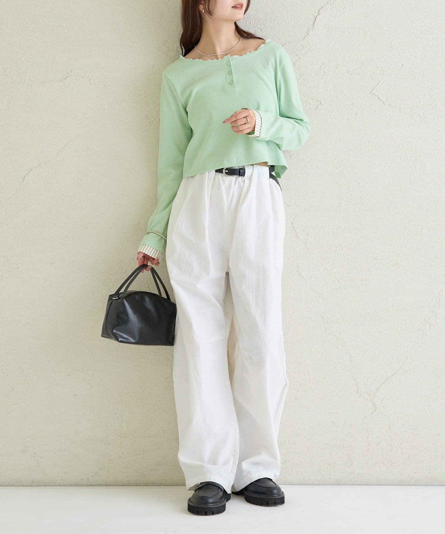 ・ハイウエストボトムと合わせるとバランスよく決まり、一枚でレイヤードスタイルが完成します。