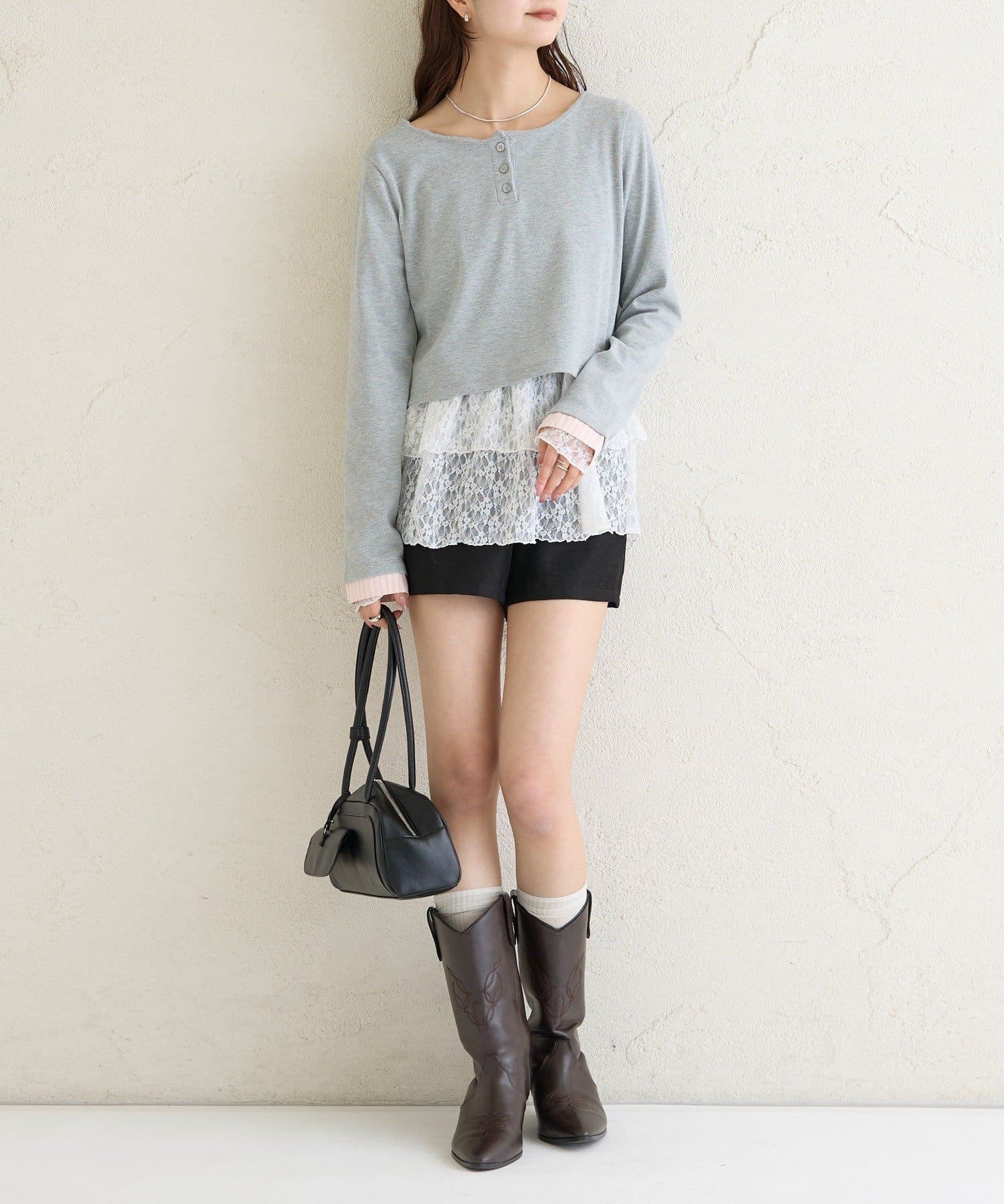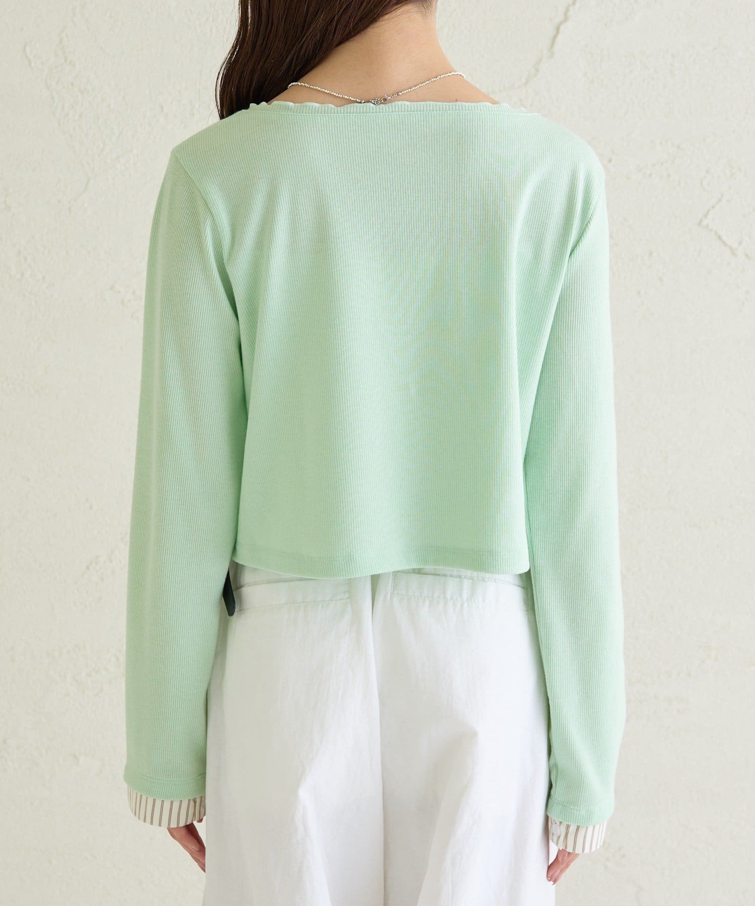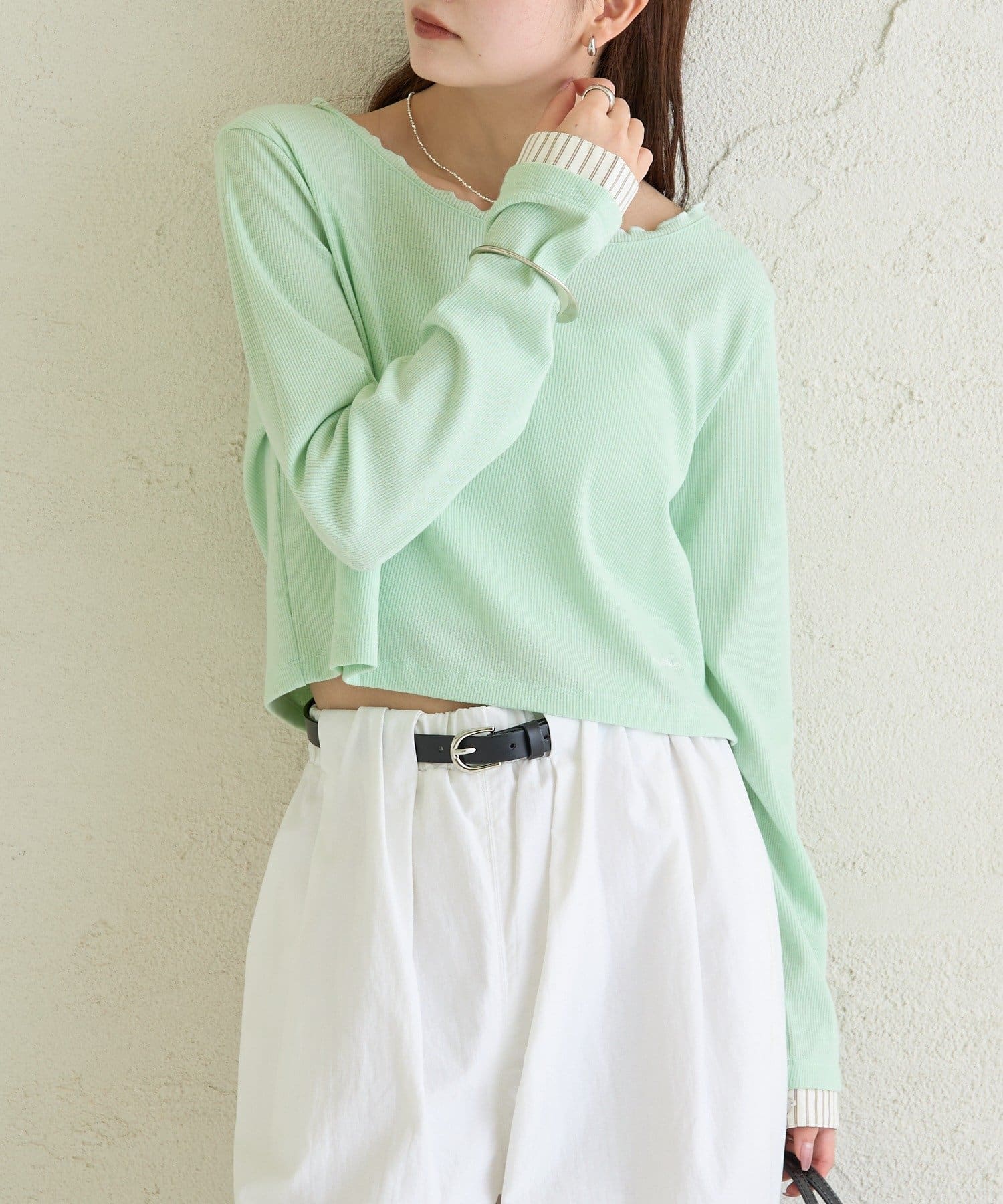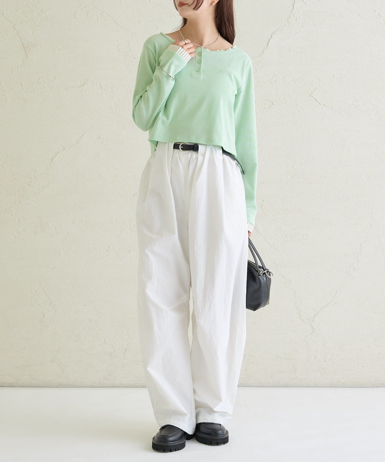 ・ハイウエストボトムと合わせるとバランスよく決まり、一枚でレイヤードスタイルが完成します。