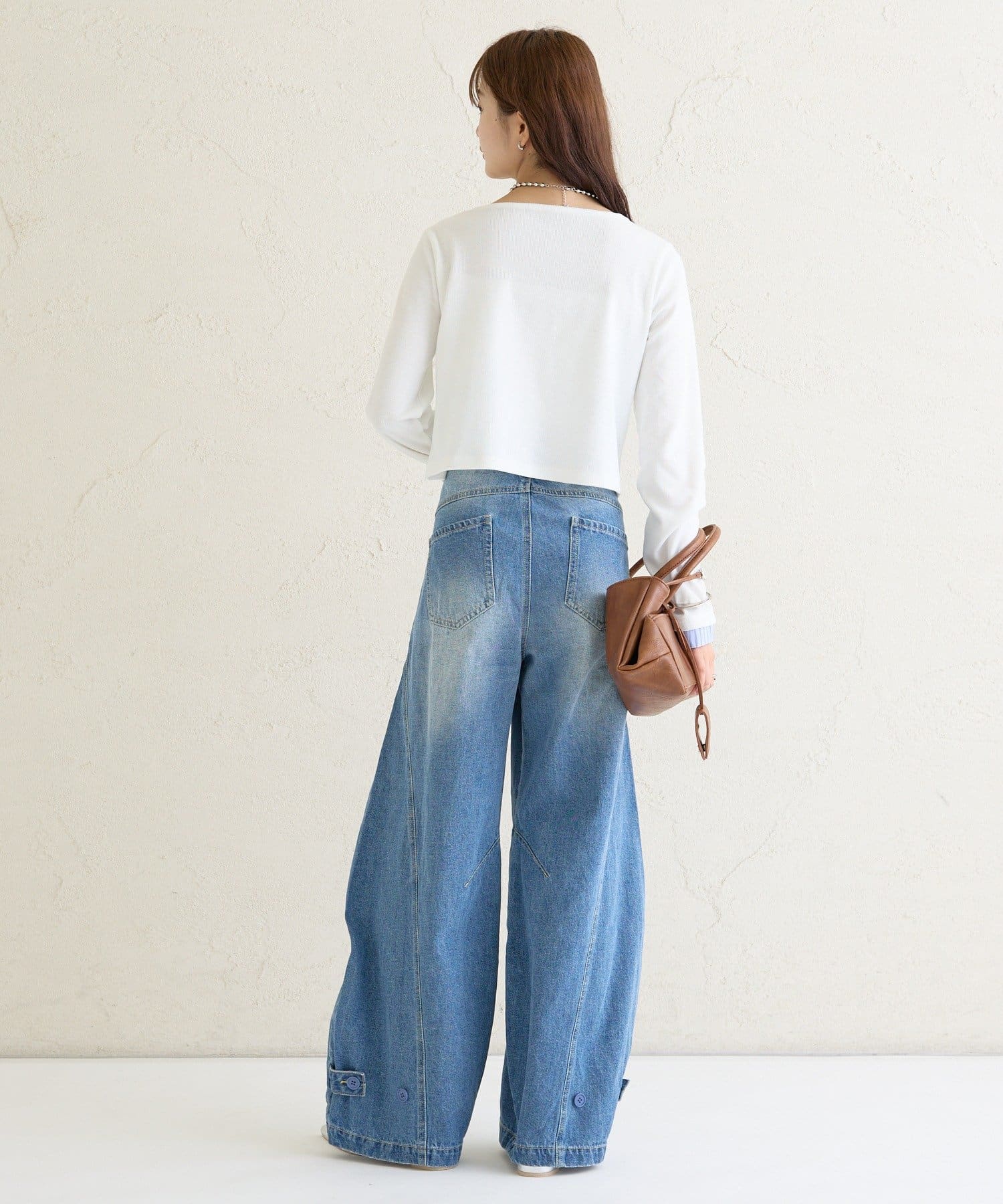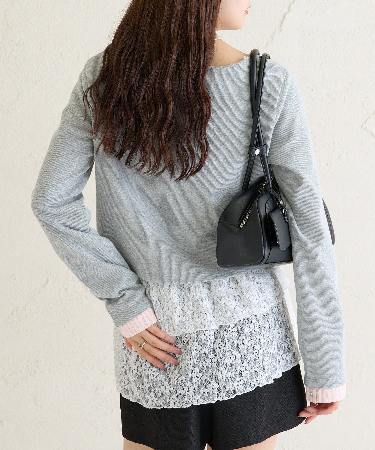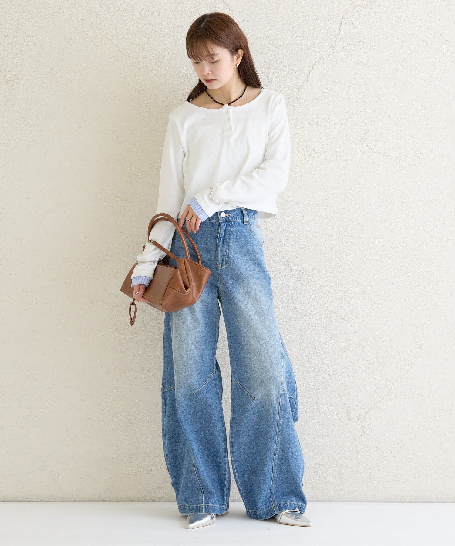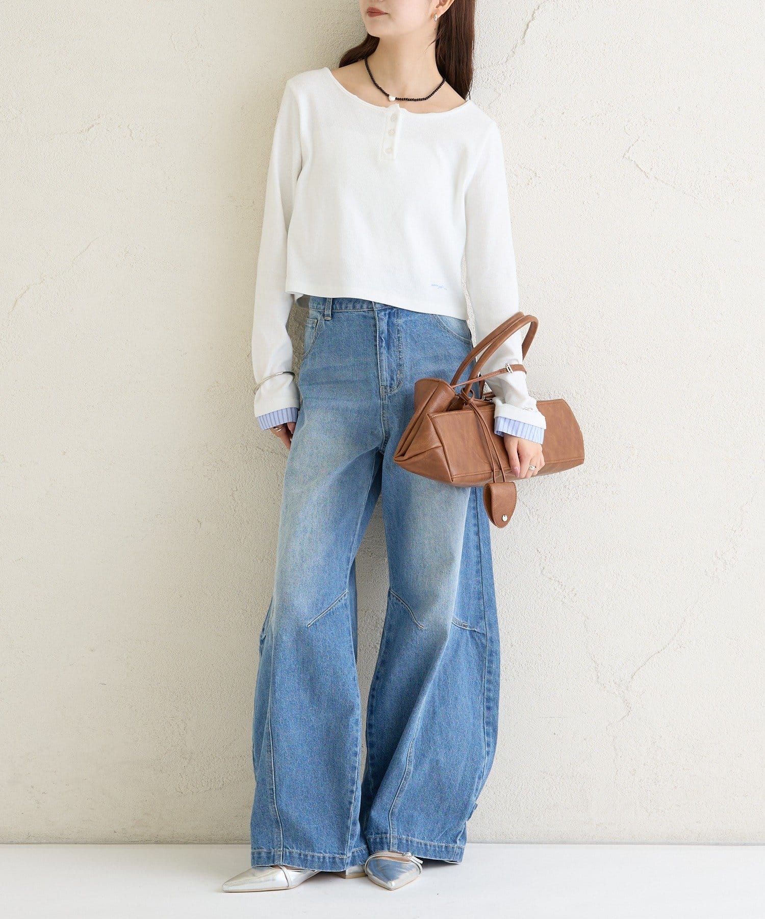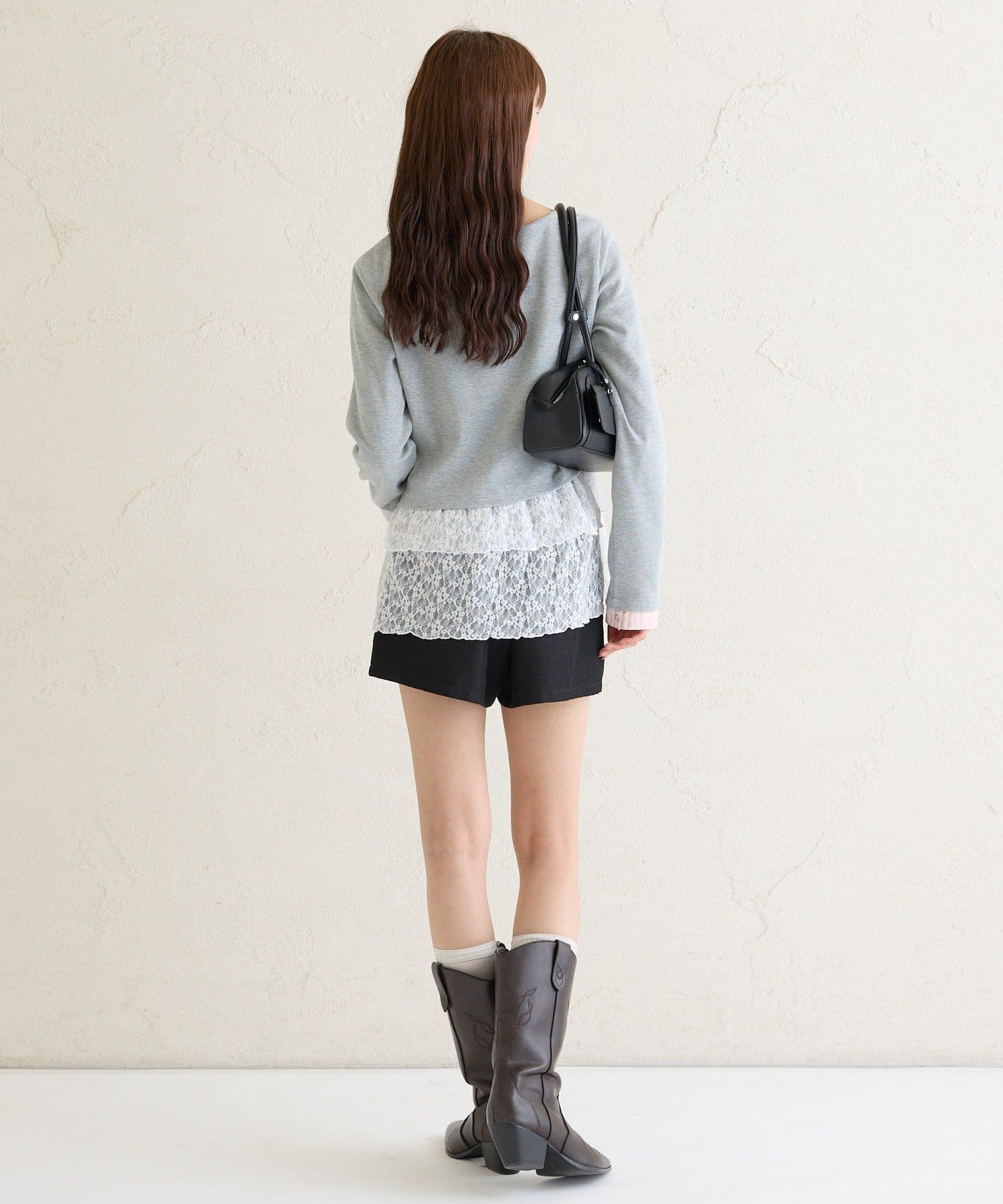 ・ハイウエストボトムと合わせるとバランスよく決まり、一枚でレイヤードスタイルが完成します。