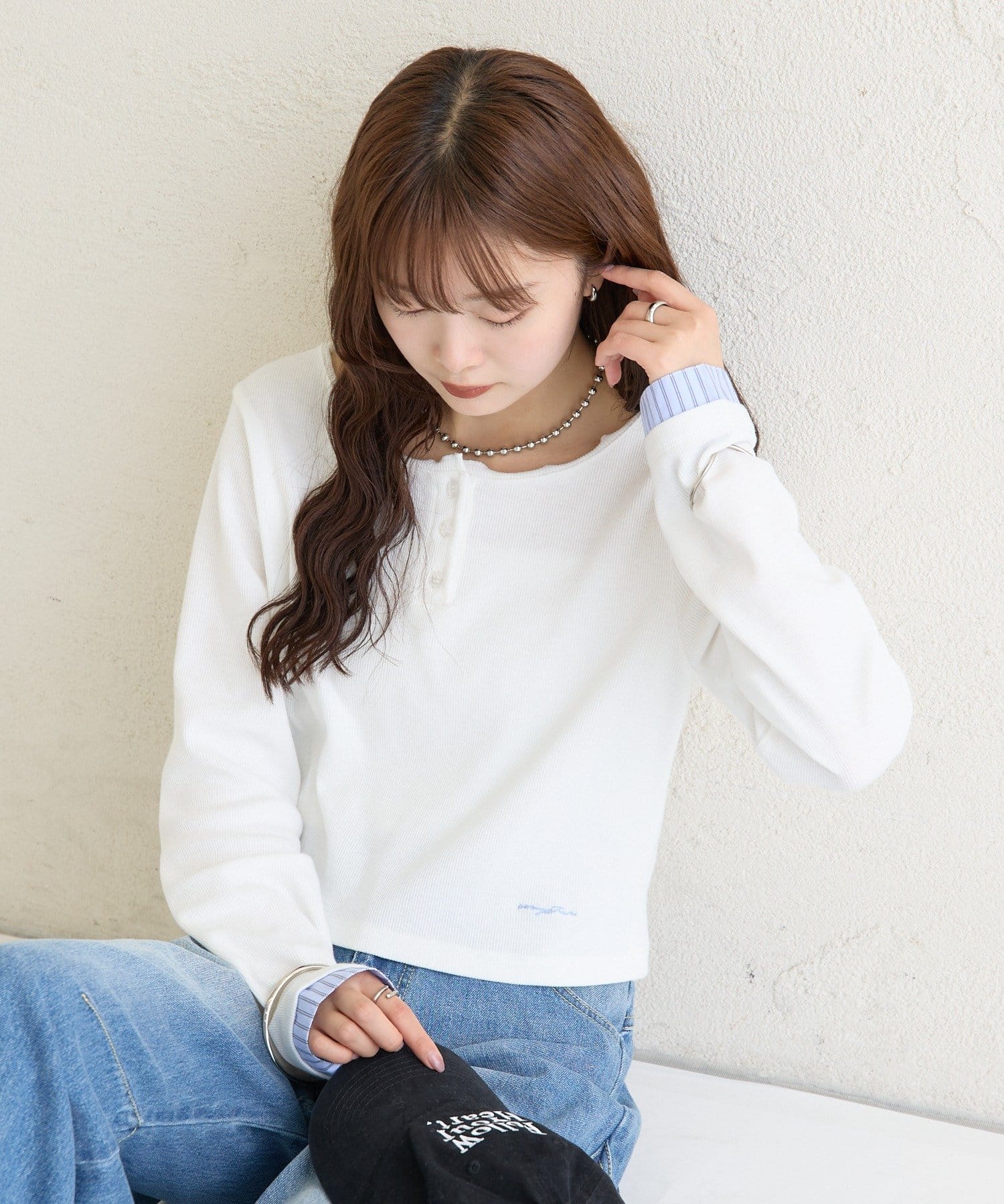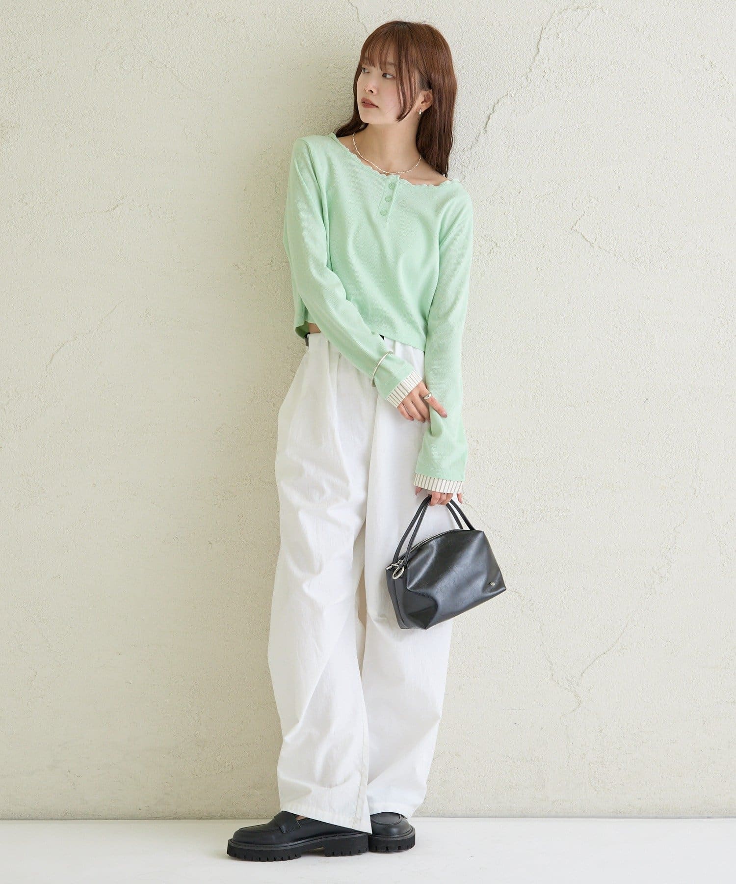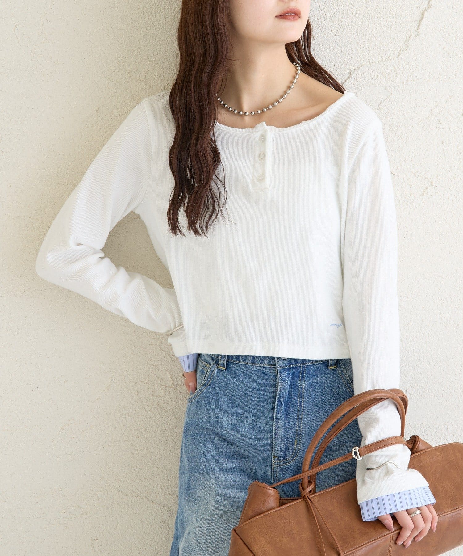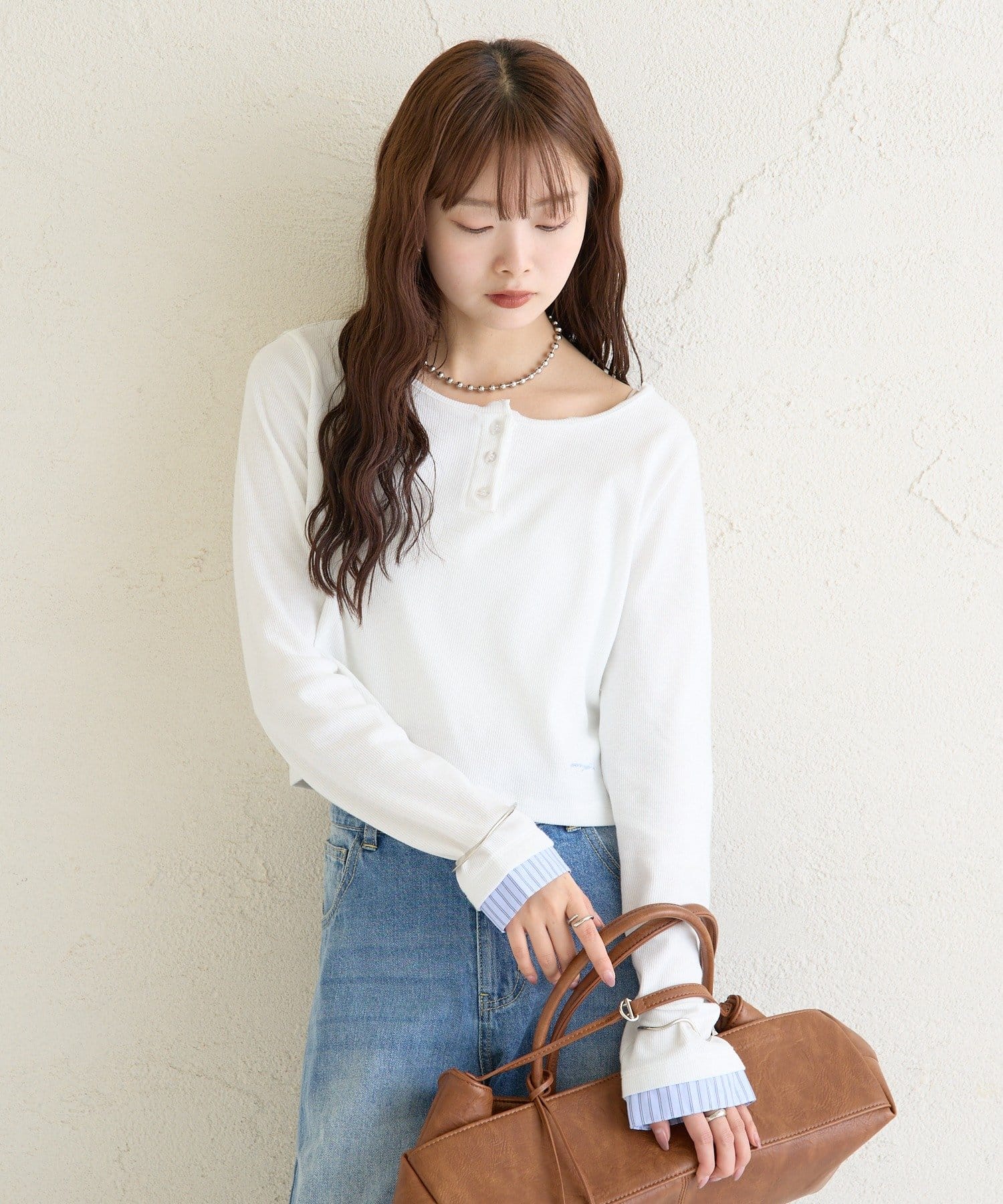 コンパクトシルエットとレイヤード仕様がトレンドライクなヘンリートップス