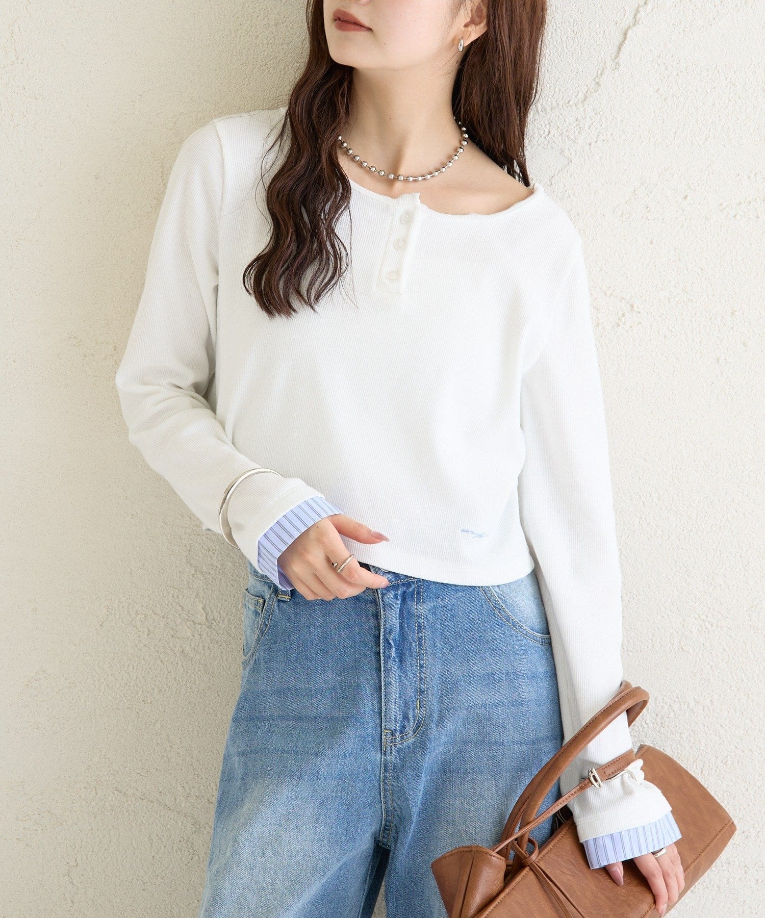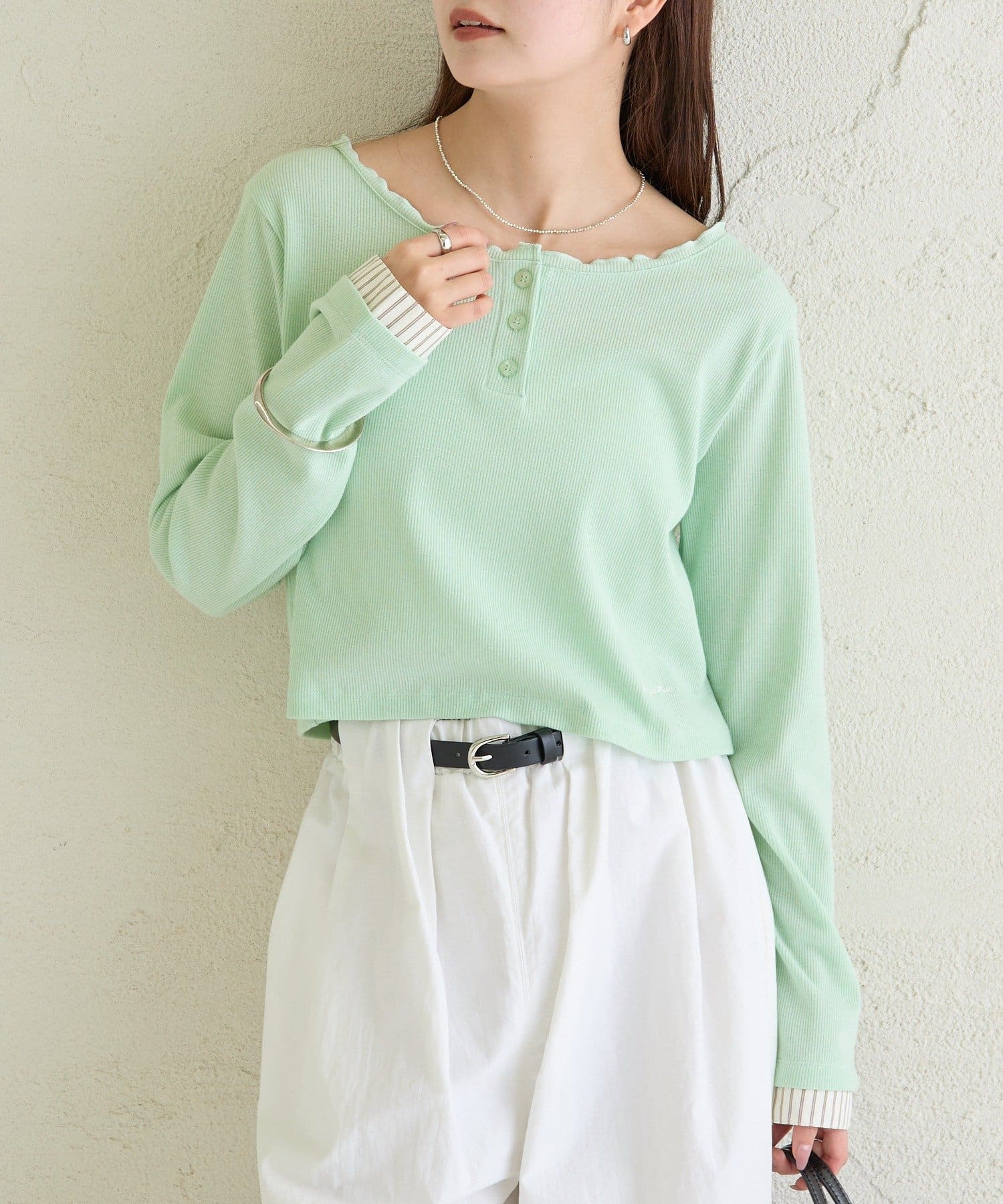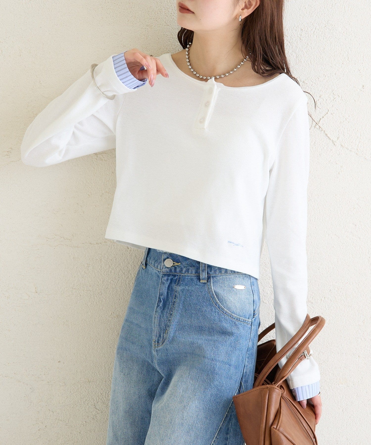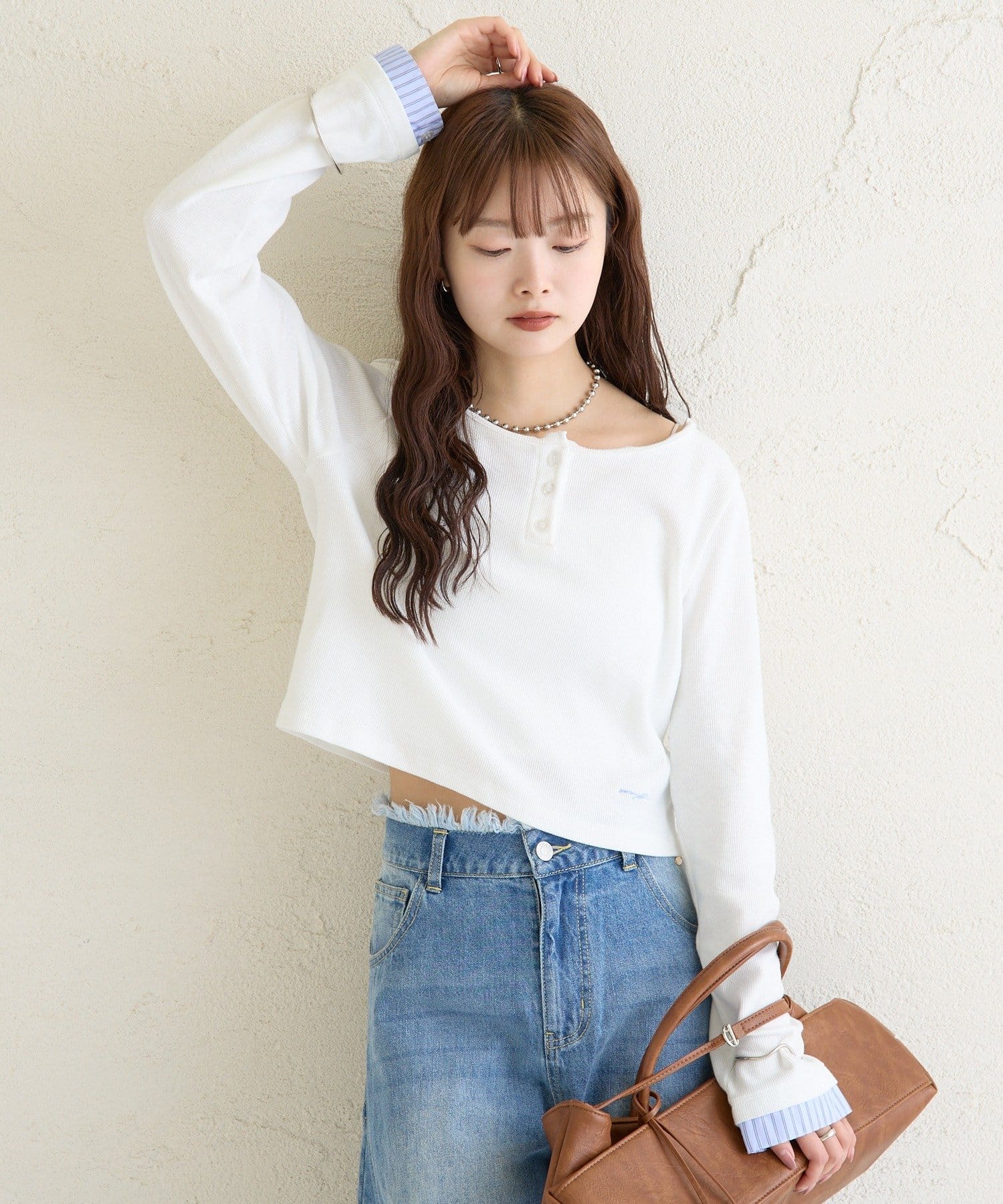 コンパクトシルエットとレイヤード仕様がトレンドライクなヘンリートップス