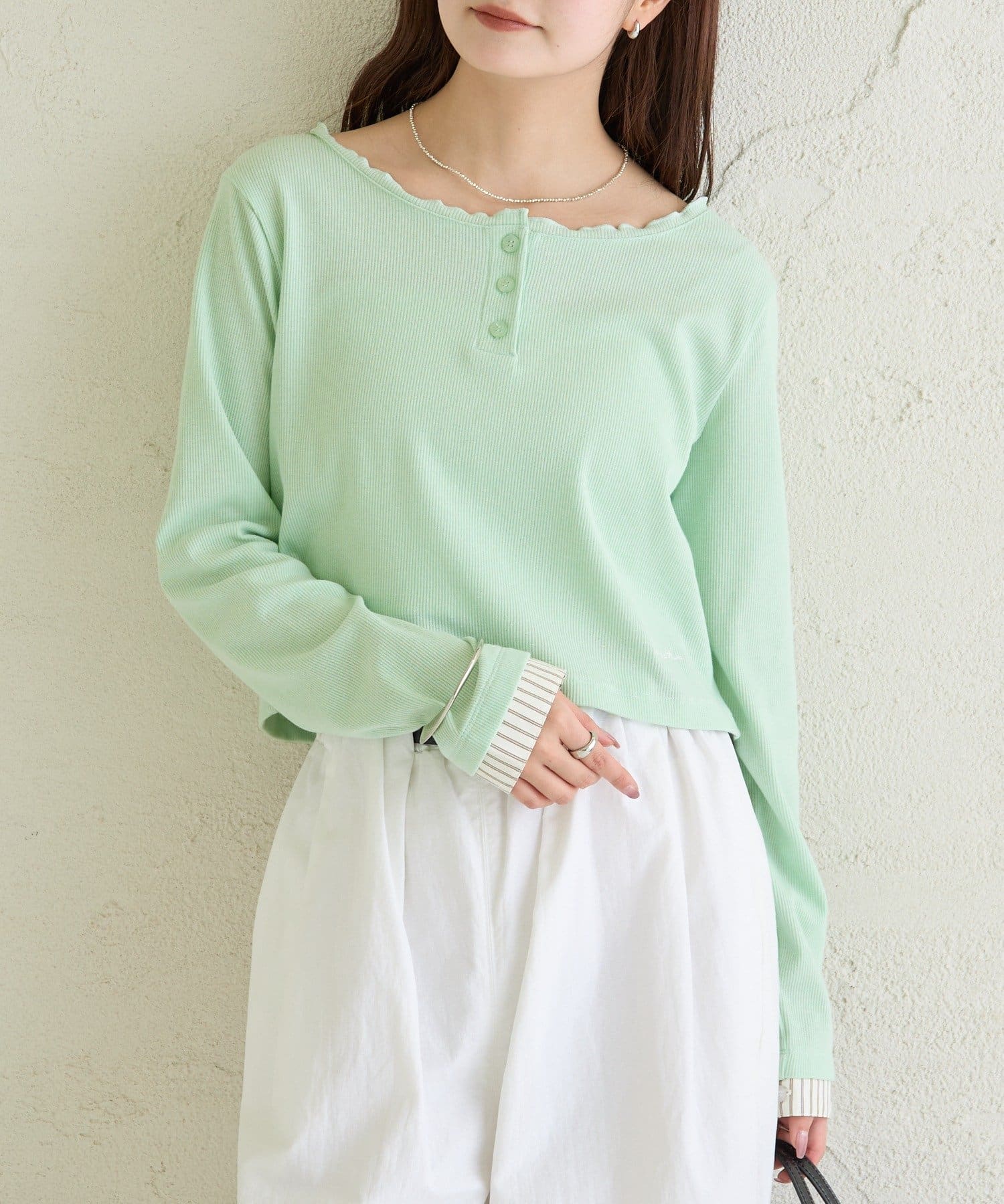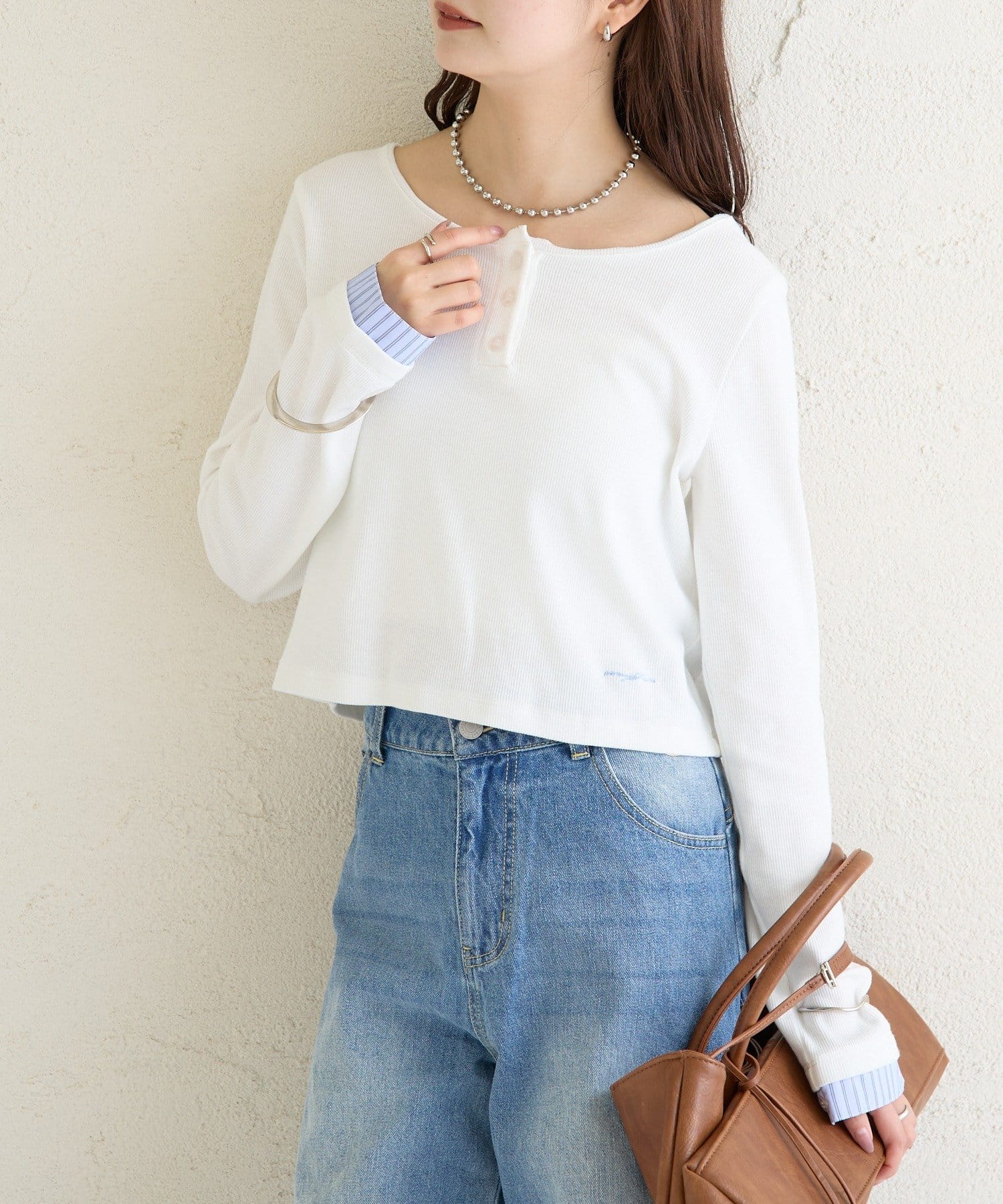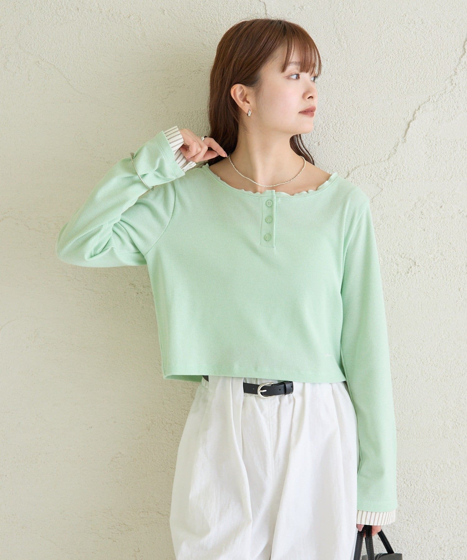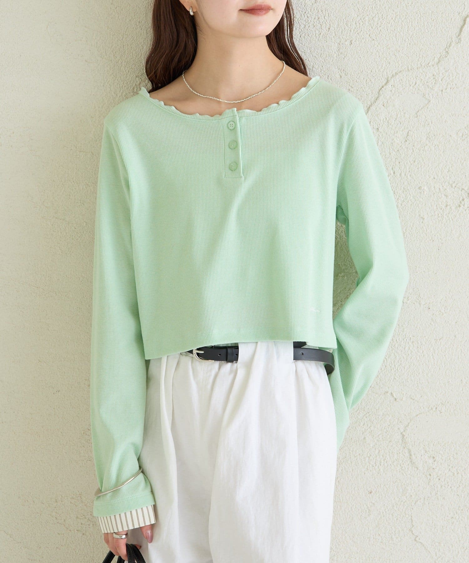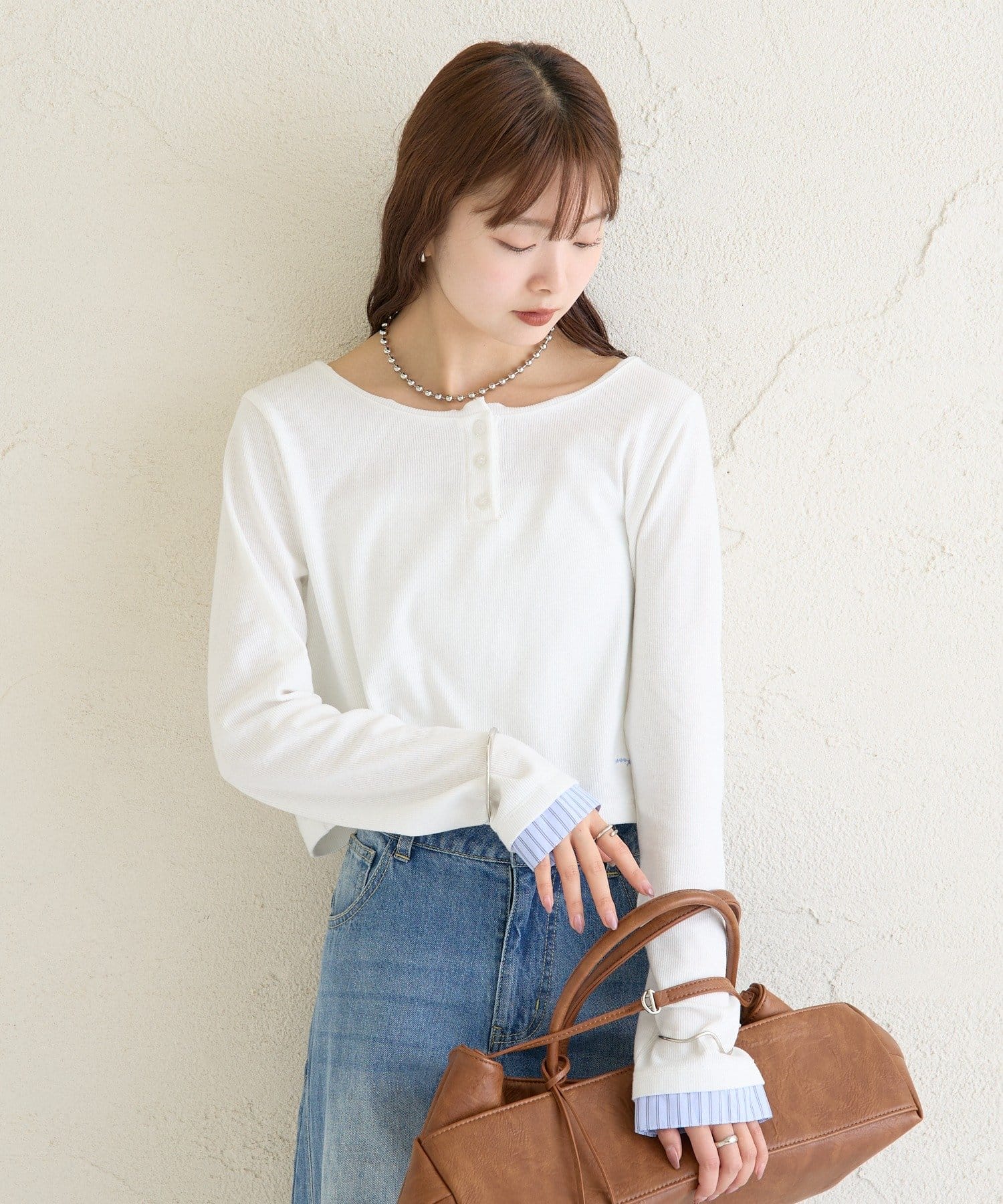 コンパクトシルエットとレイヤード仕様がトレンドライクなヘンリートップス