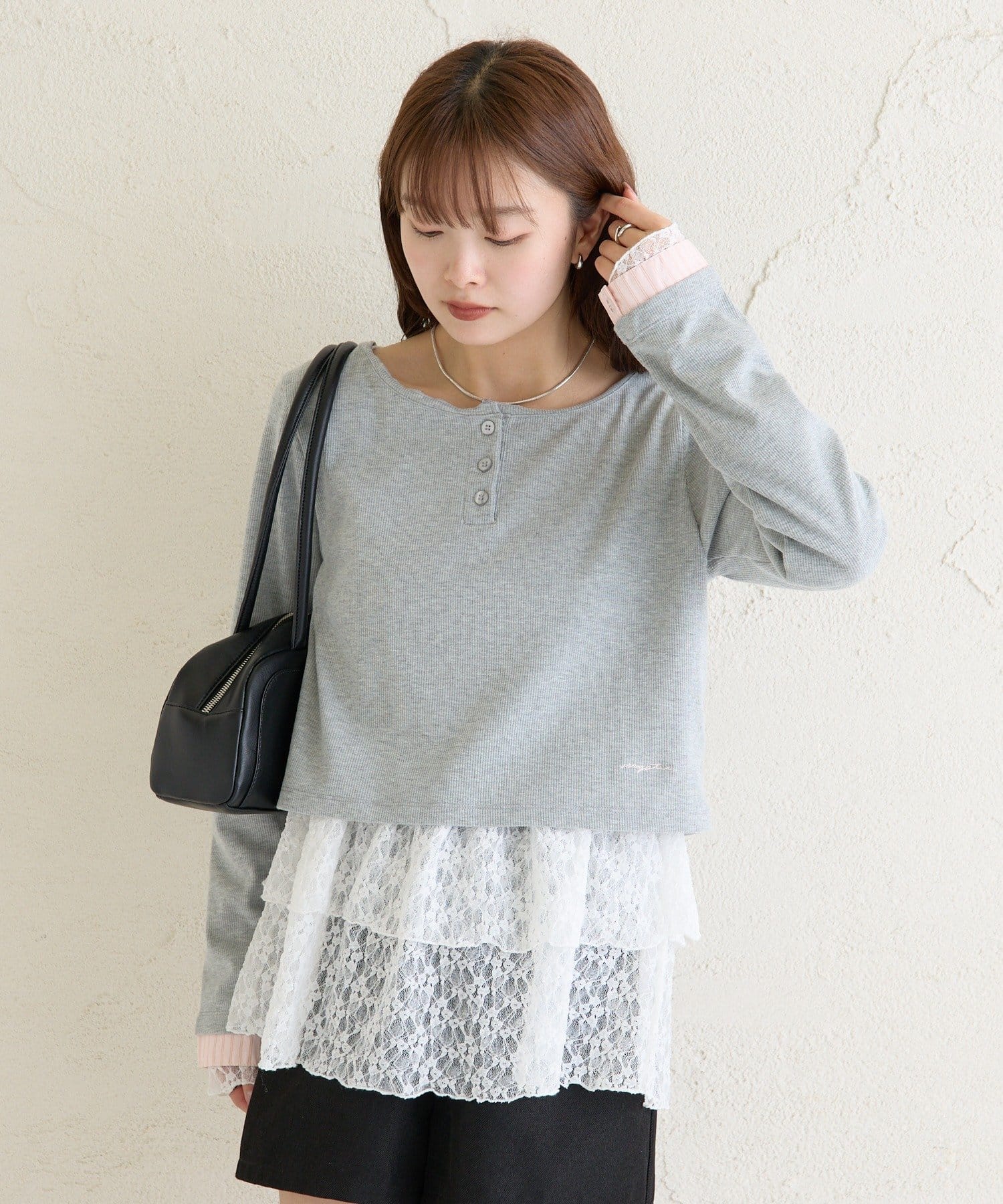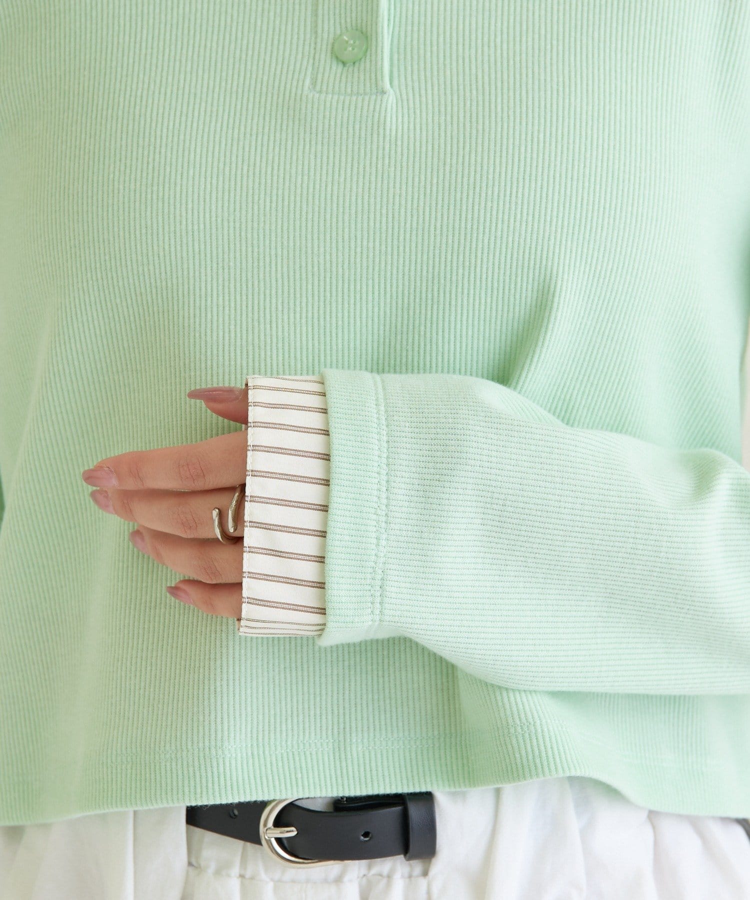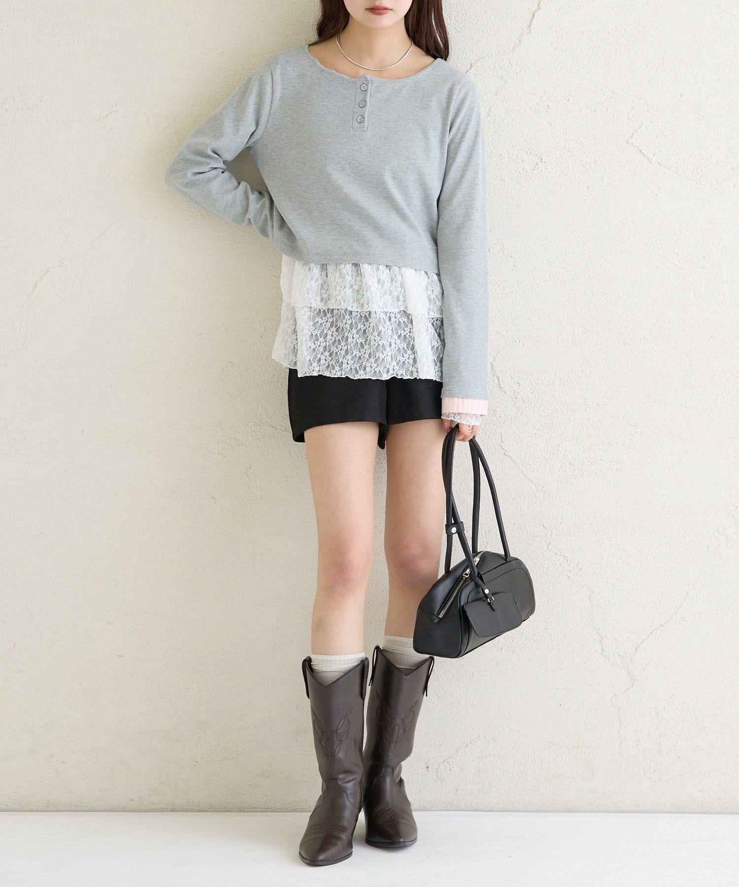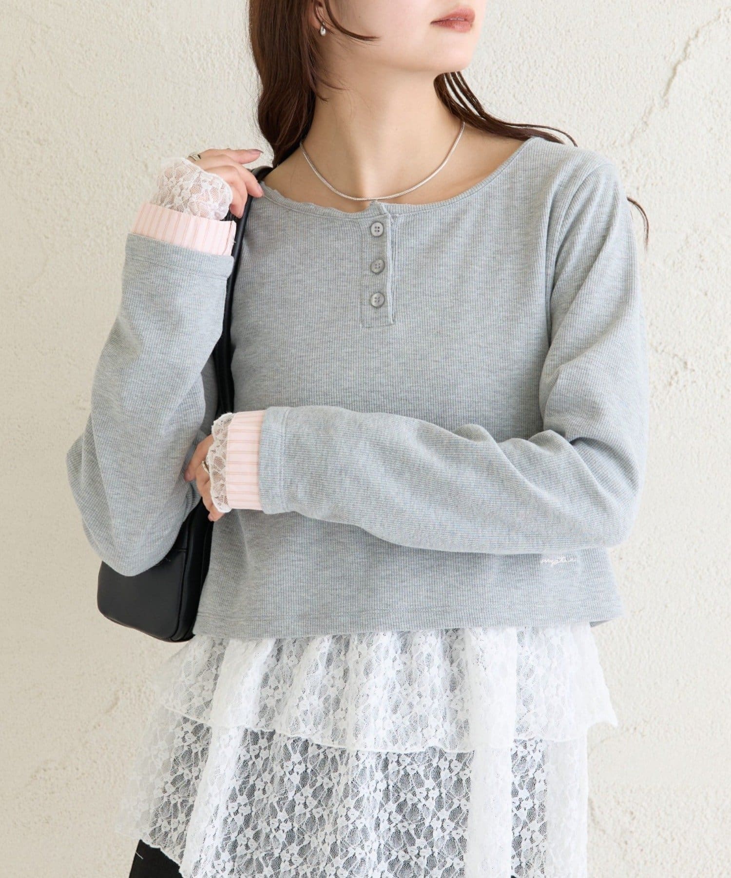 コンパクトシルエットとレイヤード仕様がトレンドライクなヘンリートップス