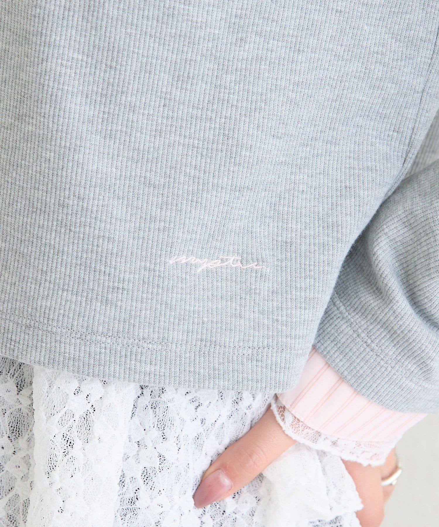 ・袖口のレイヤードデザインとす論と左下のロゴ刺繍がポイントに。