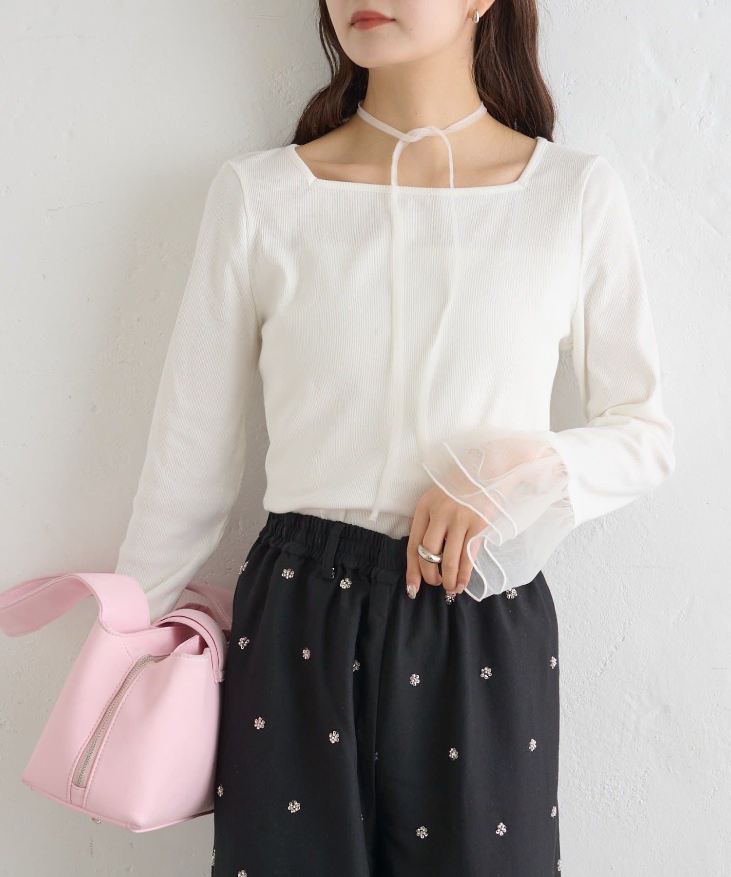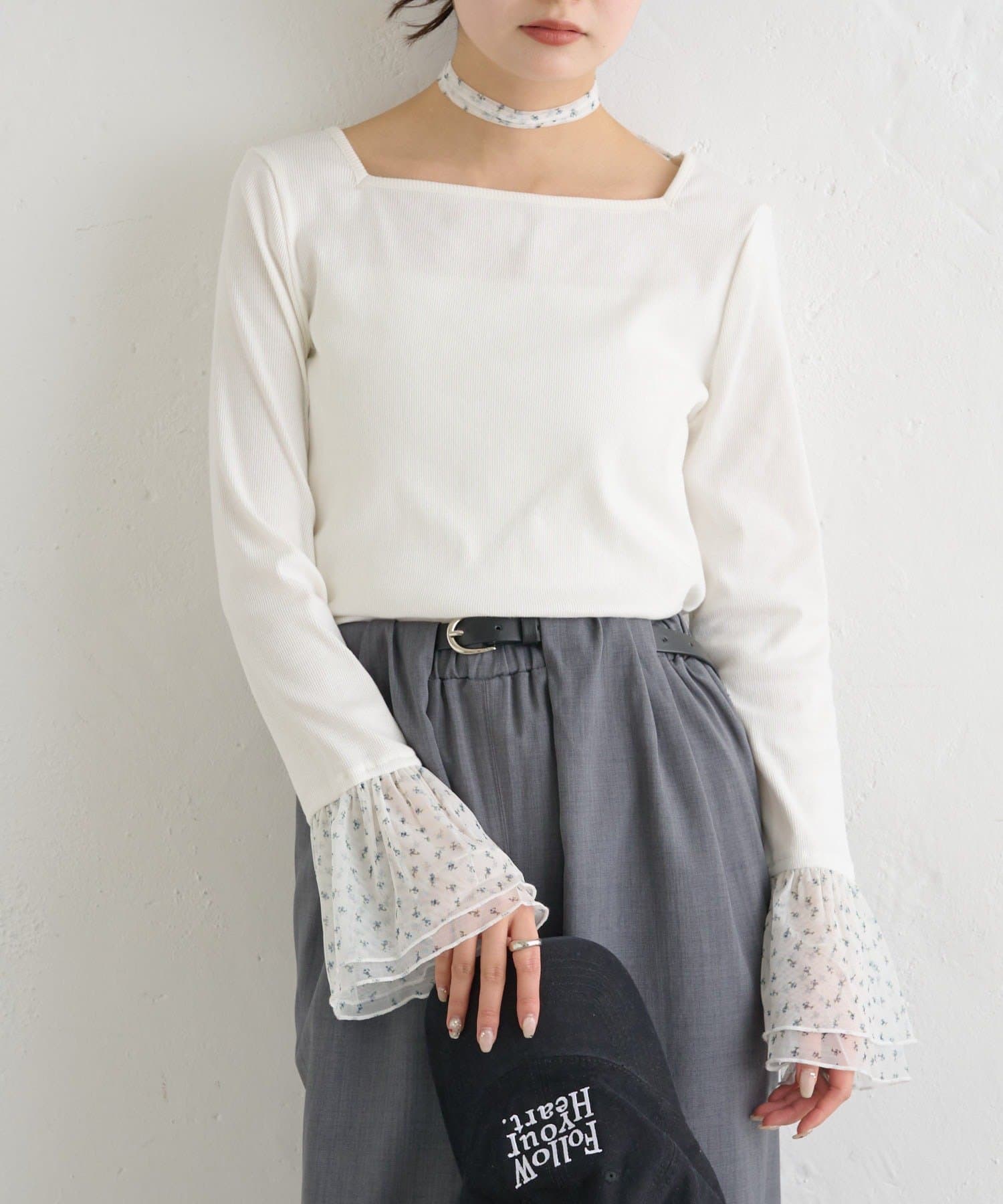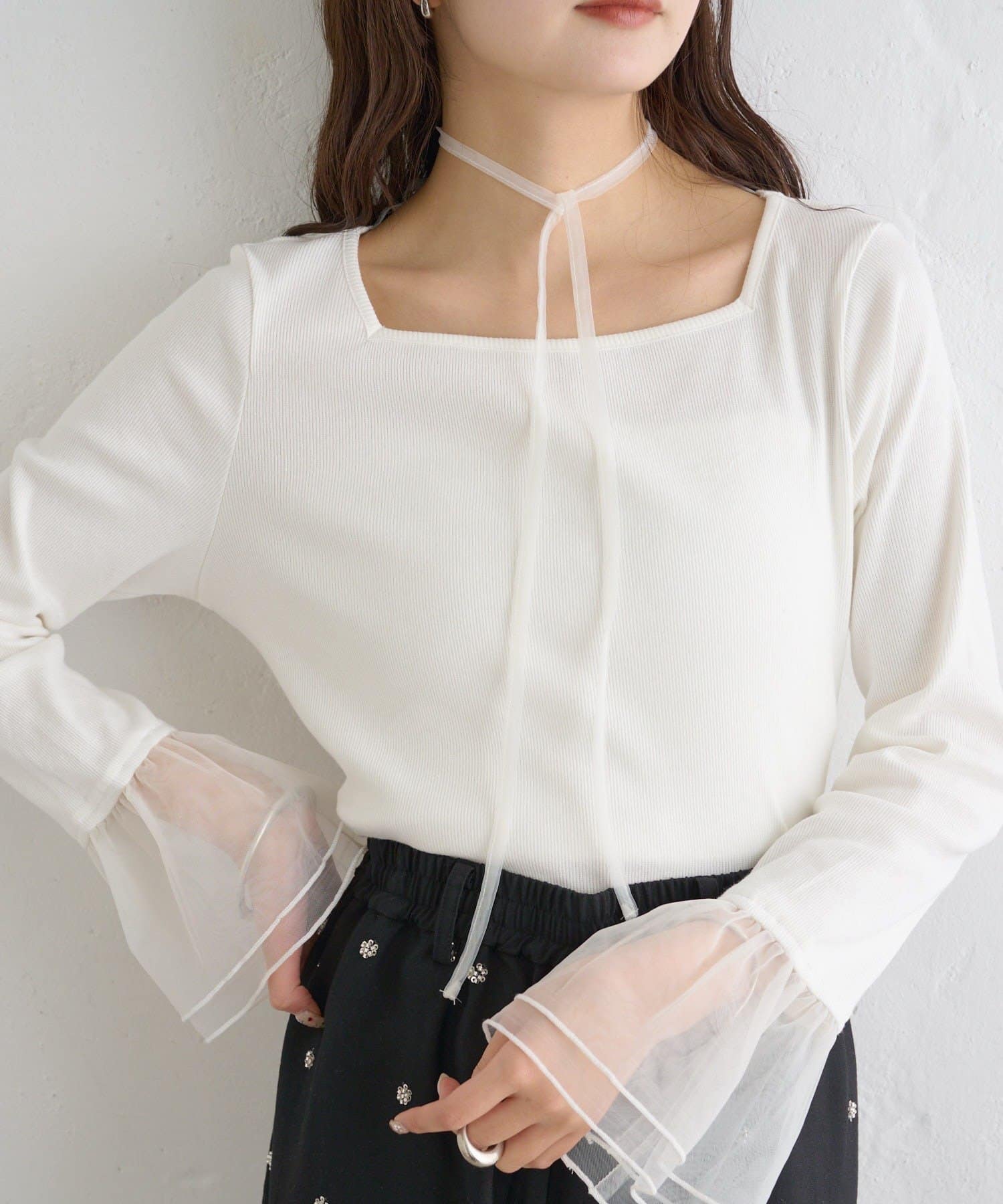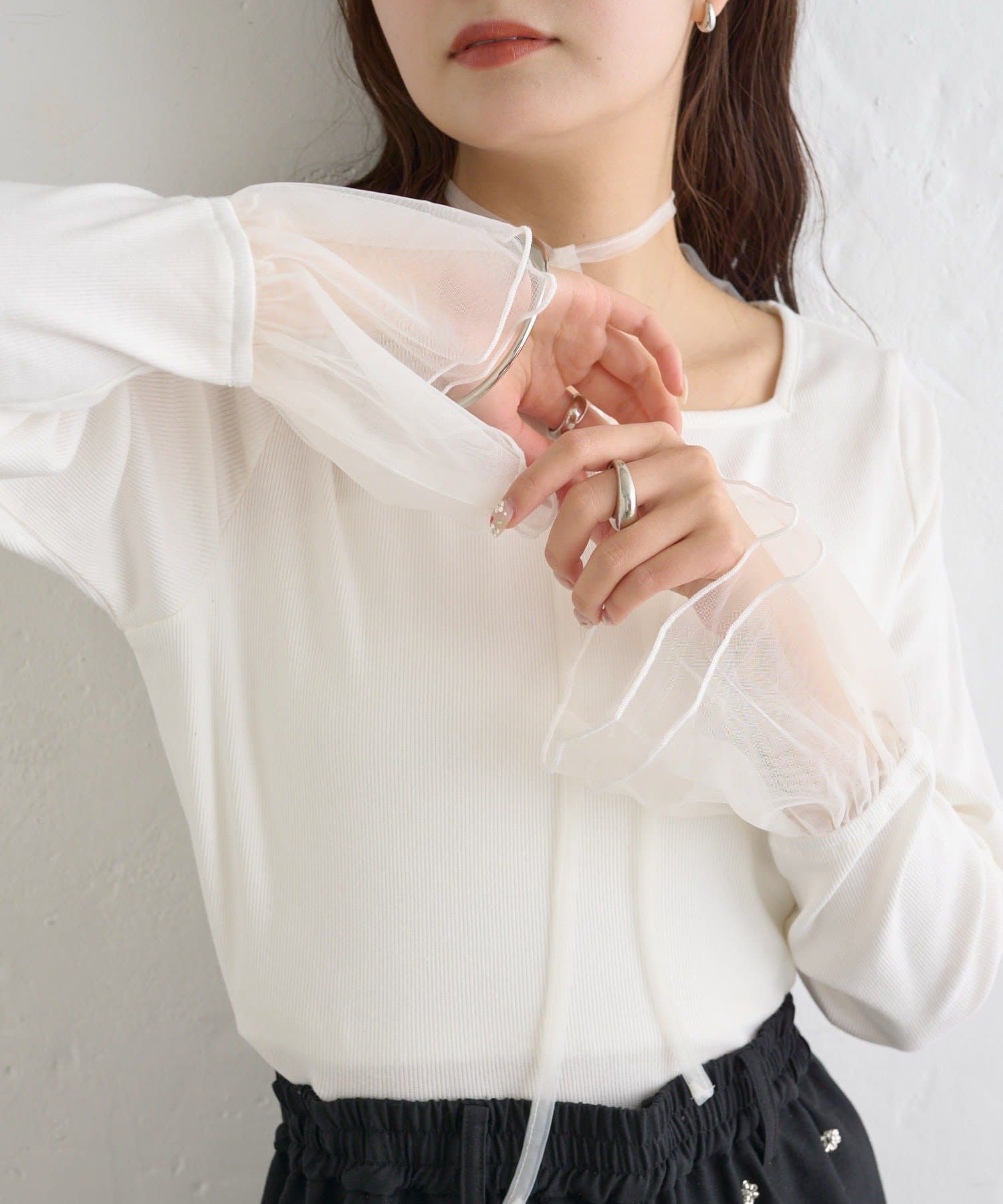 ・袖口のチュールと同素材のチョーカーが付属でついていて、好みのアレンジも楽しめます。