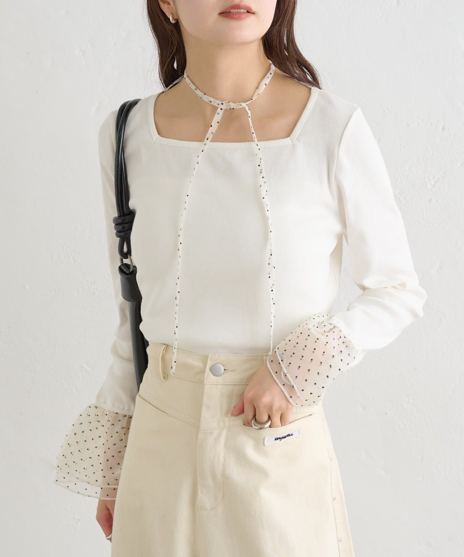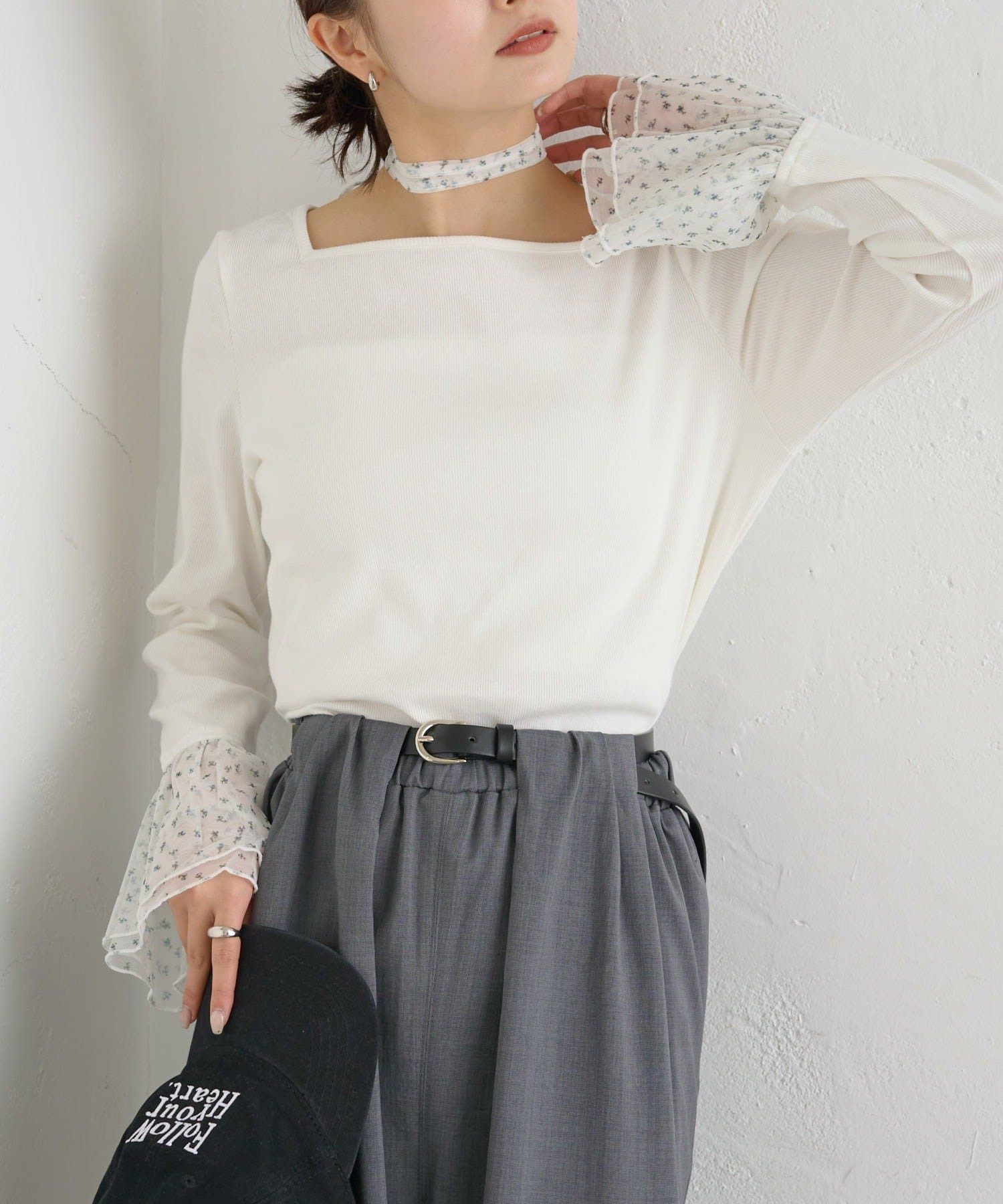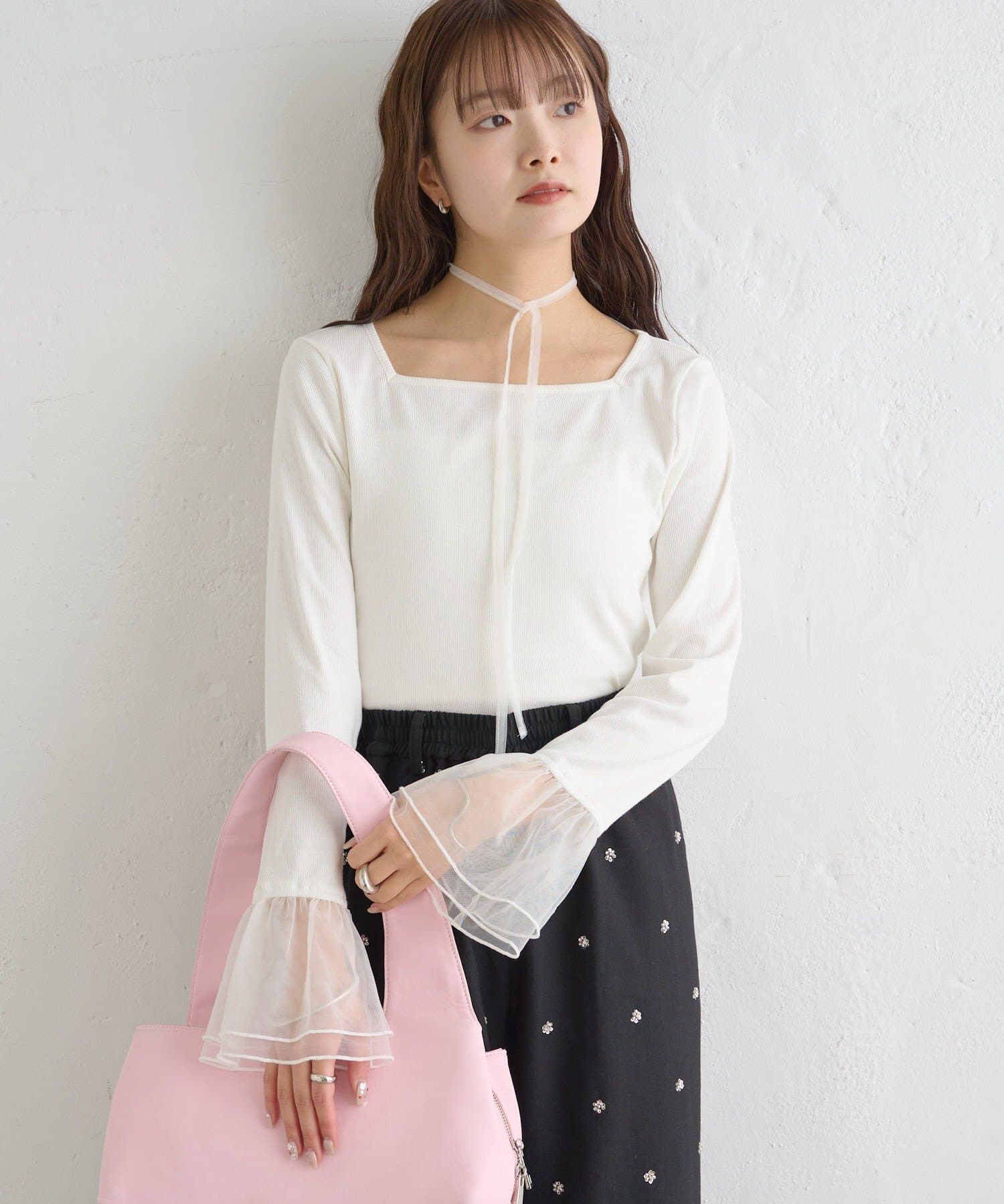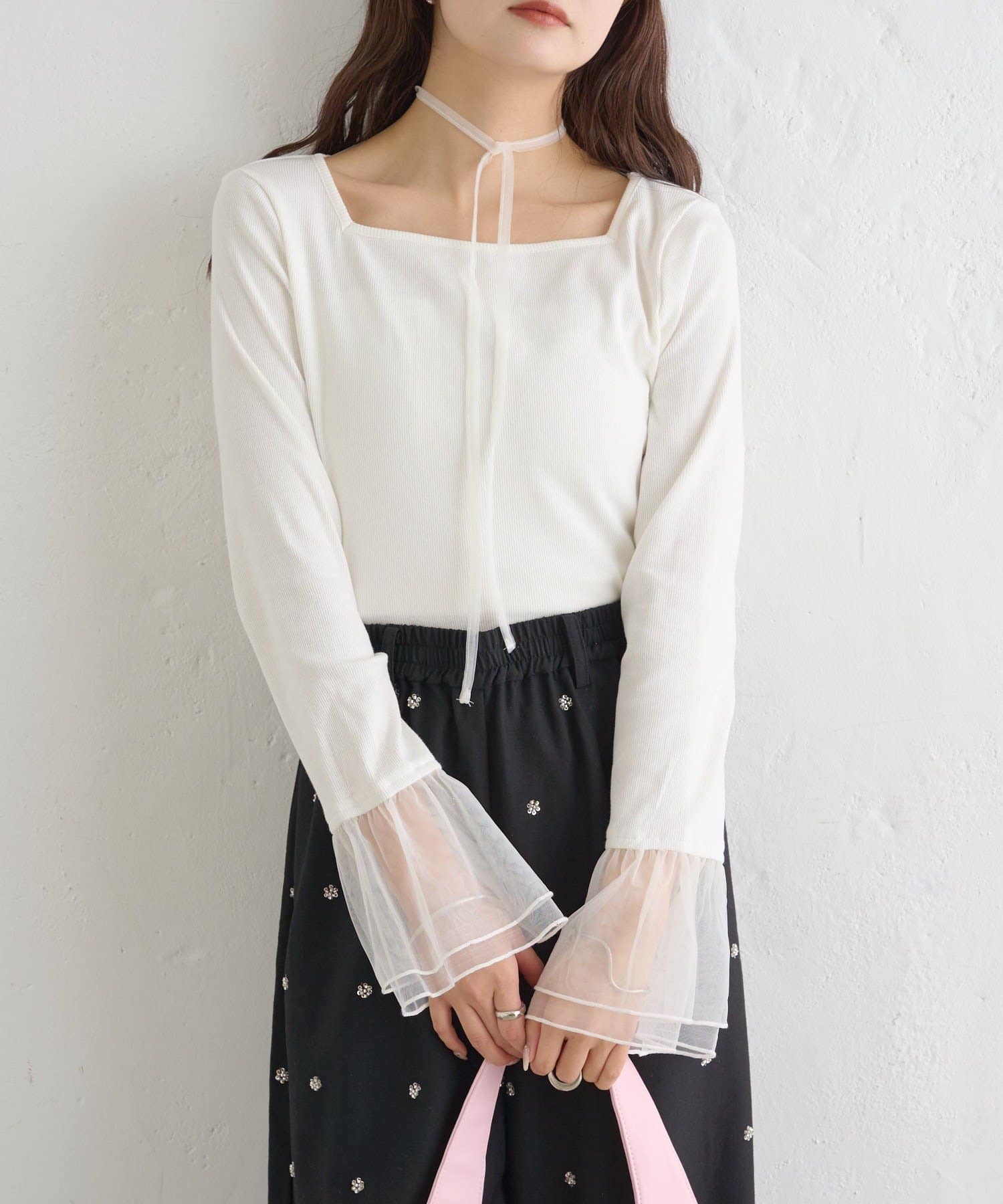 ・袖口のチュールと同素材のチョーカーが付属でついていて、好みのアレンジも楽しめます。