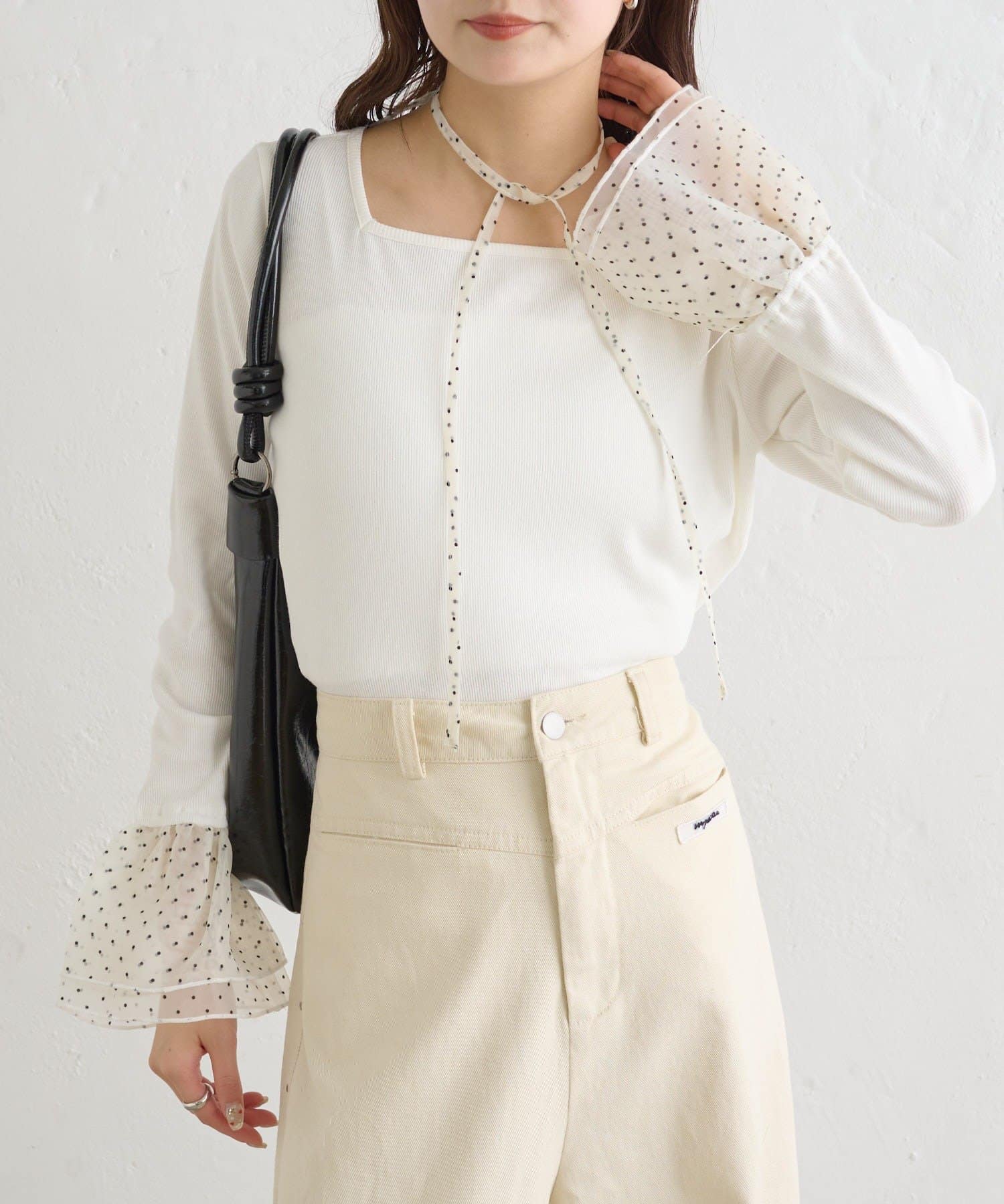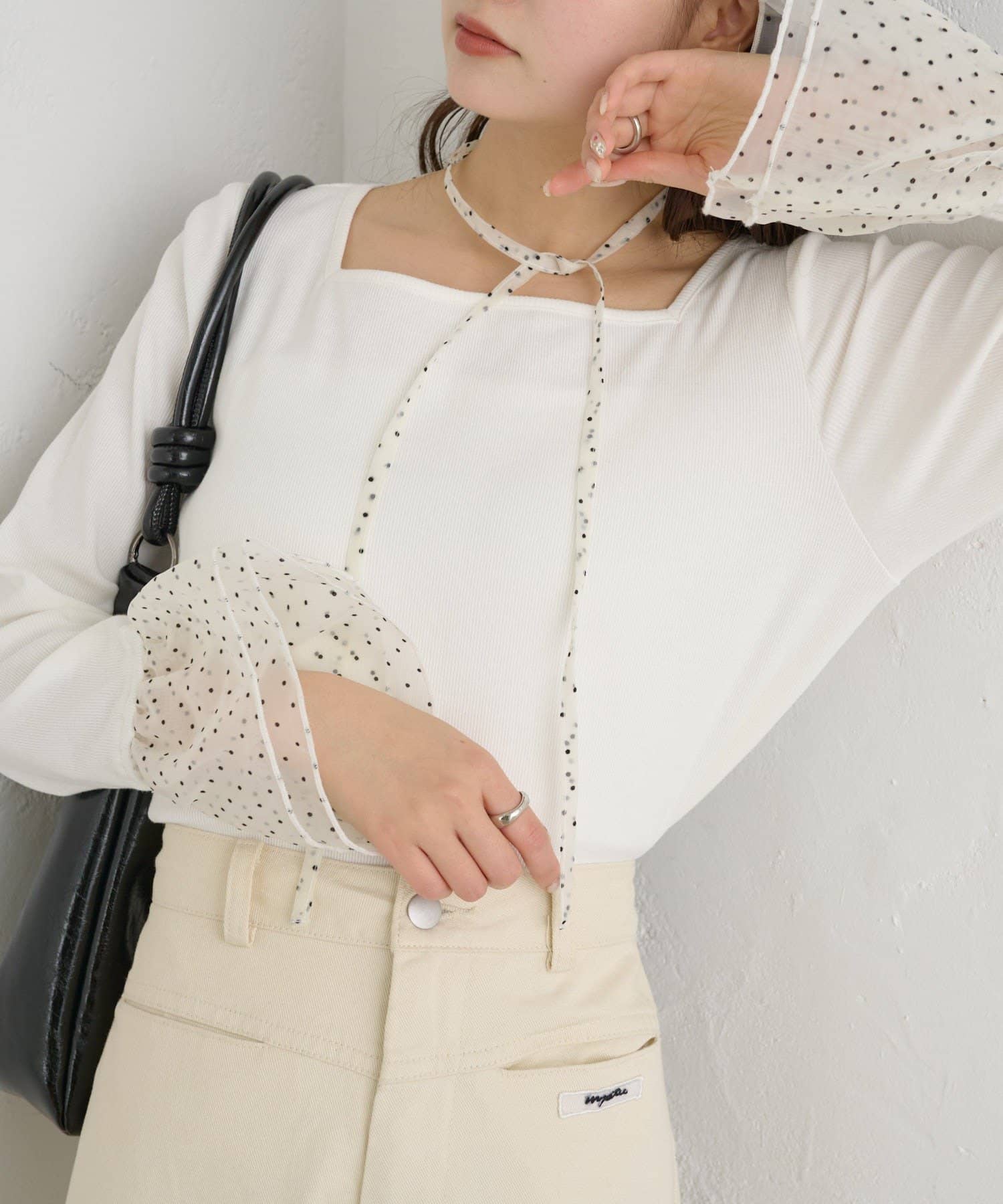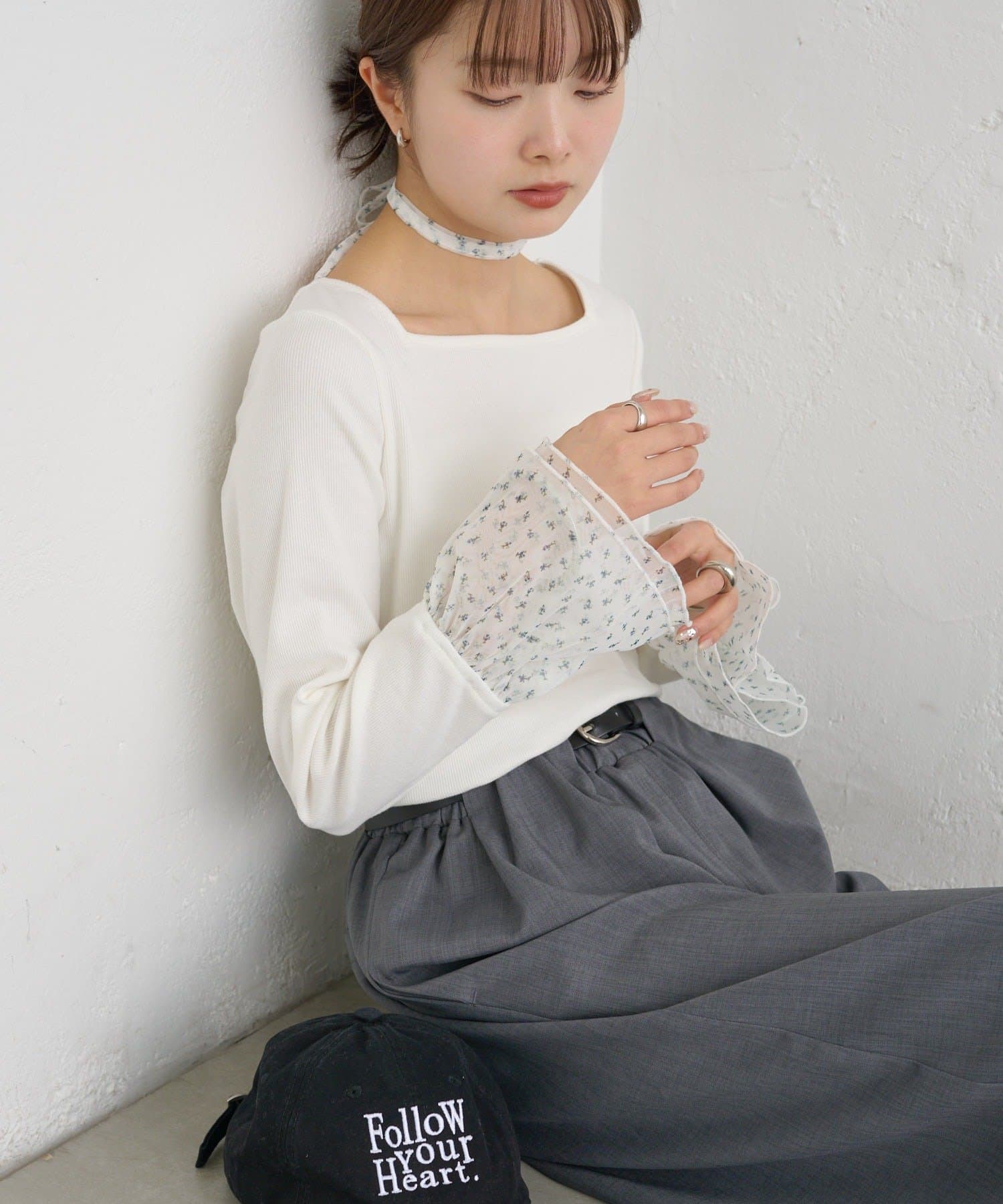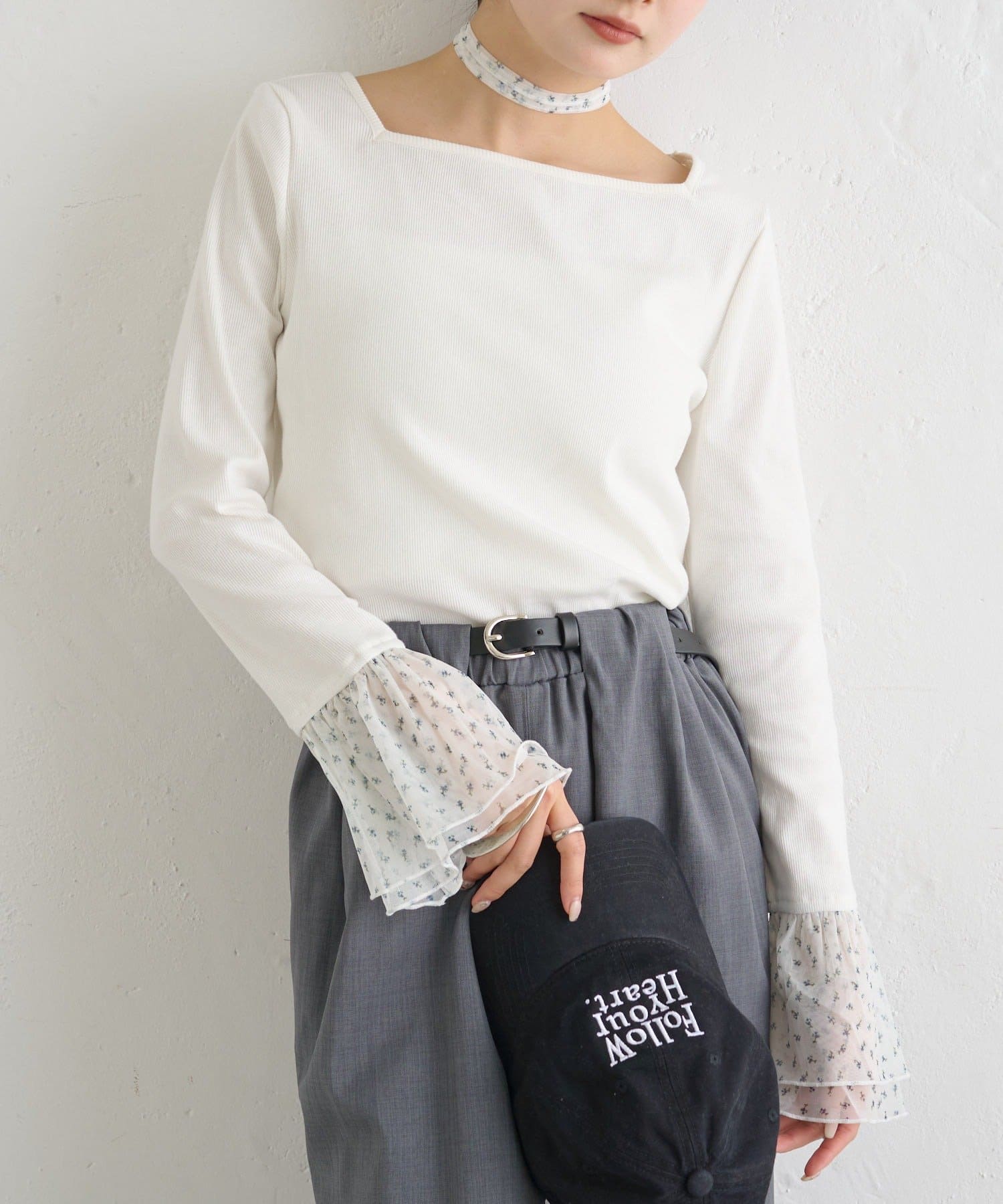 ・袖口のチュールと同素材のチョーカーが付属でついていて、好みのアレンジも楽しめます。