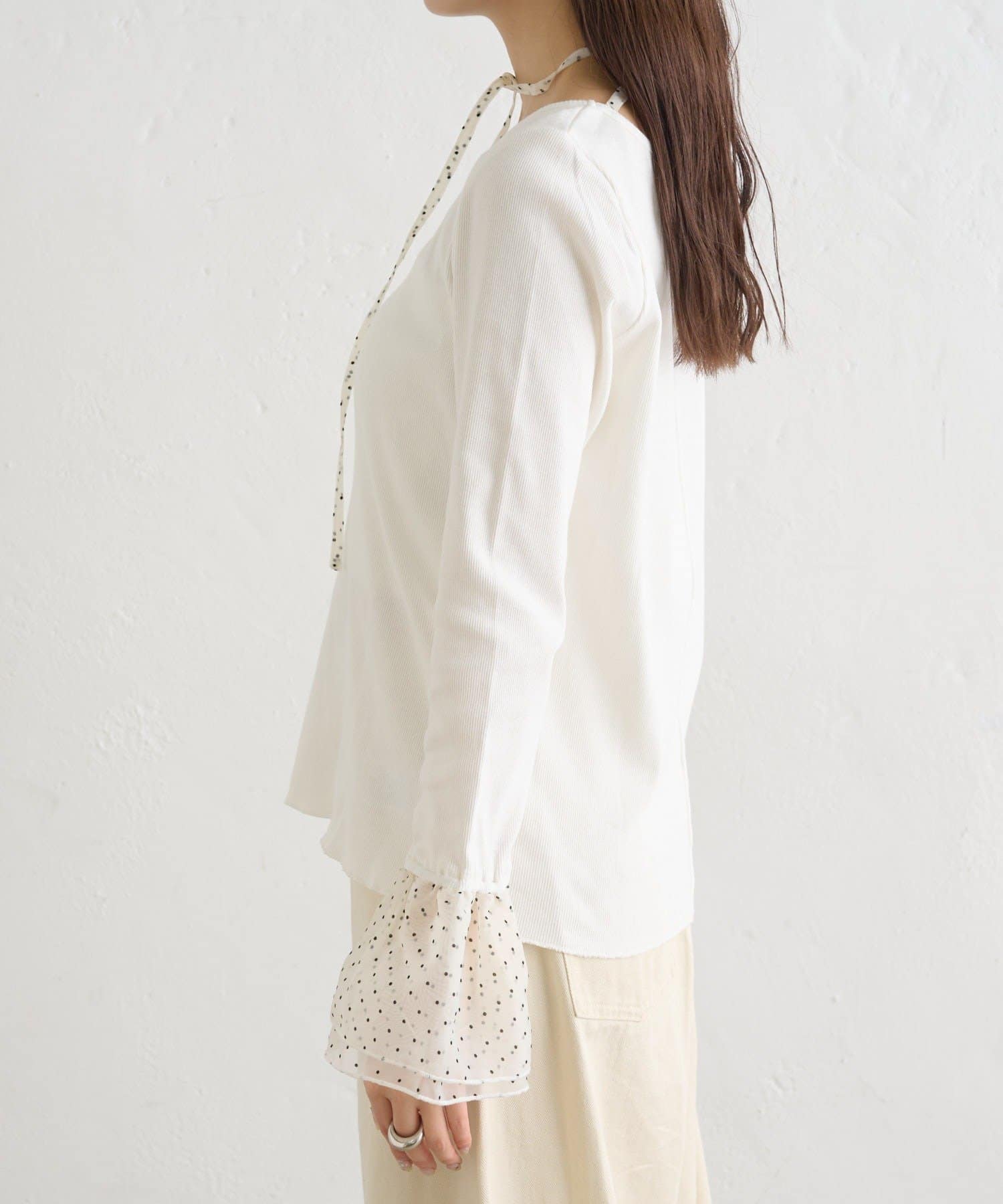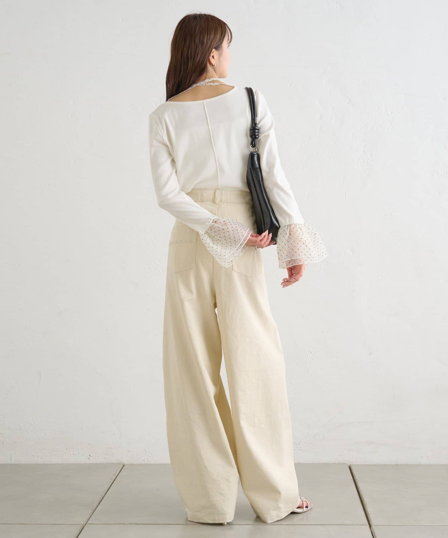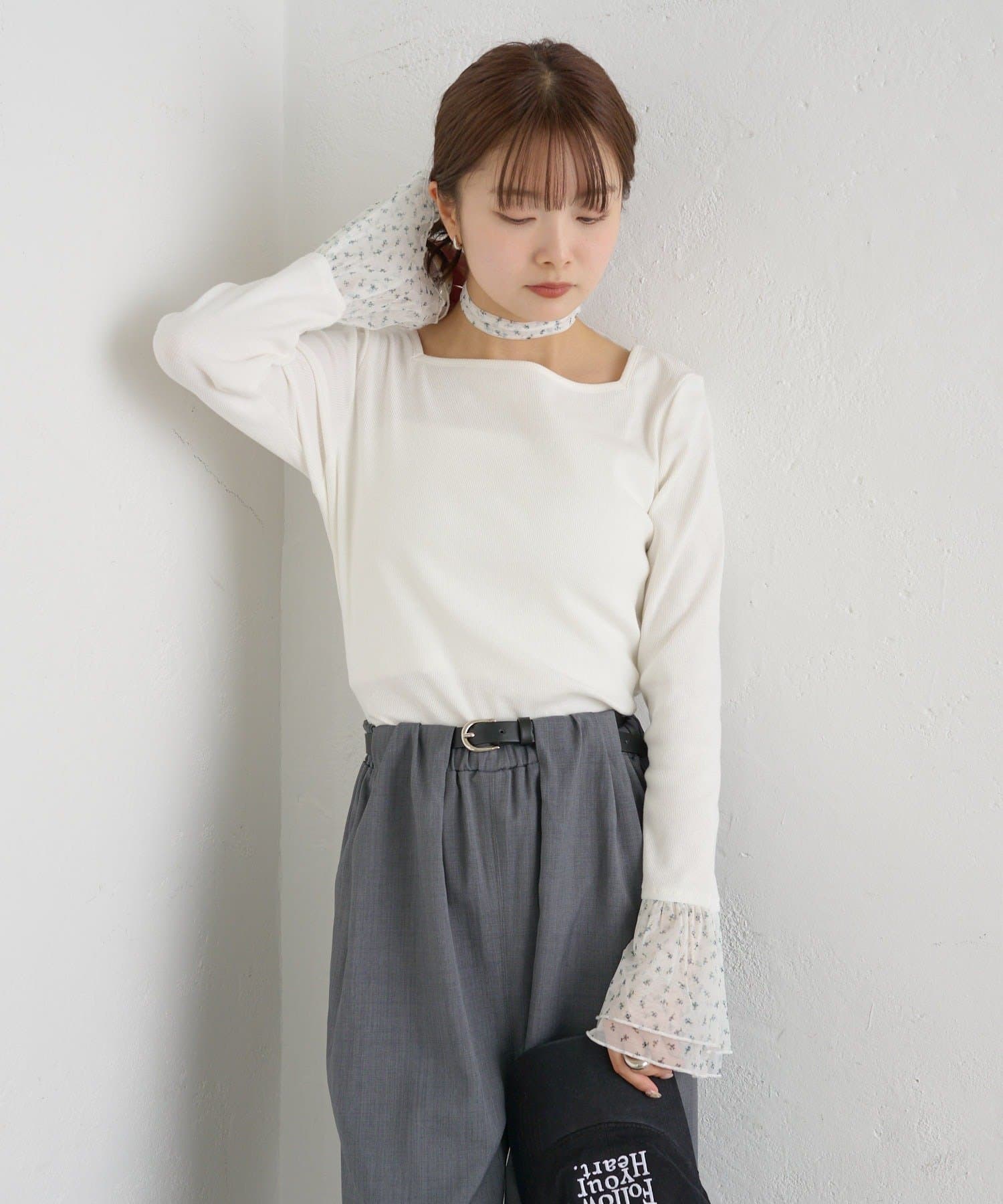 ・シンプルなロンTの袖口にチュールがドッキングされたデザイン。
