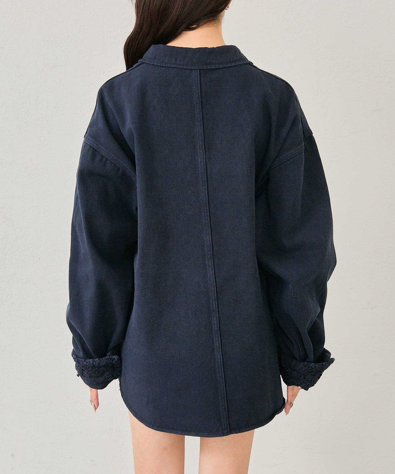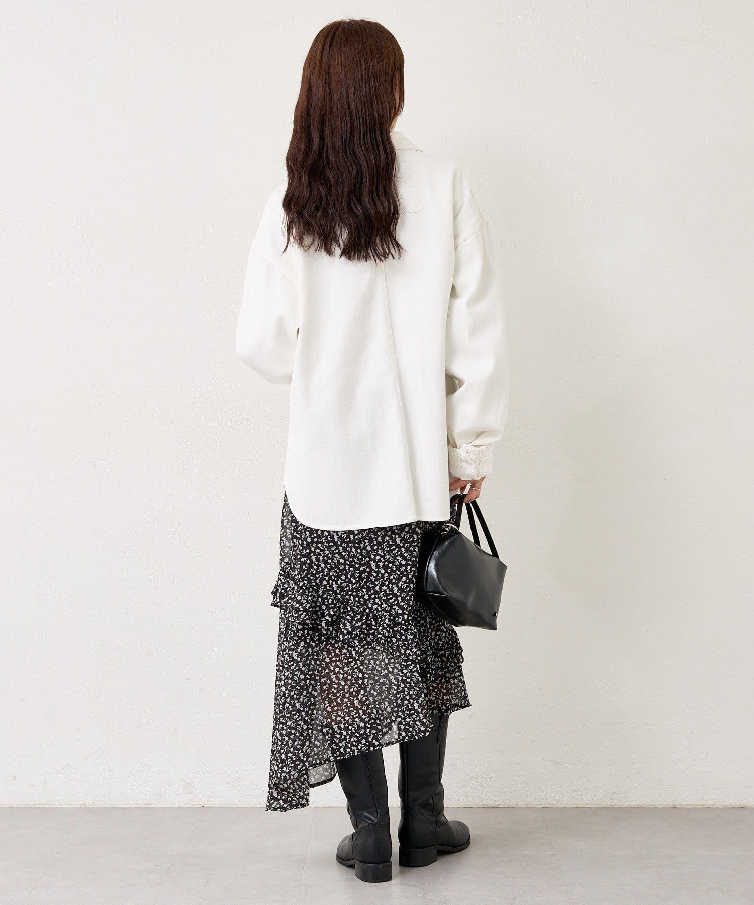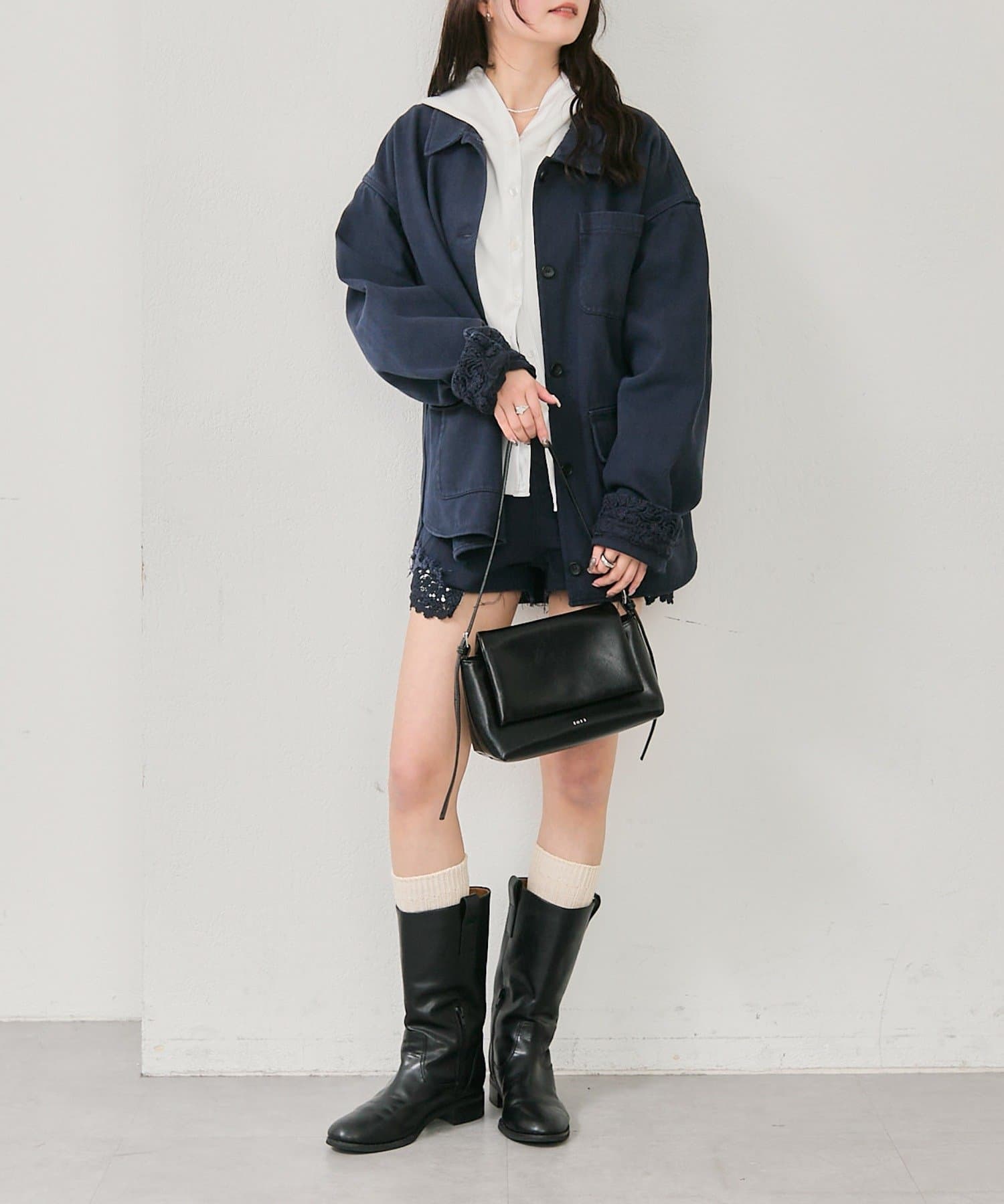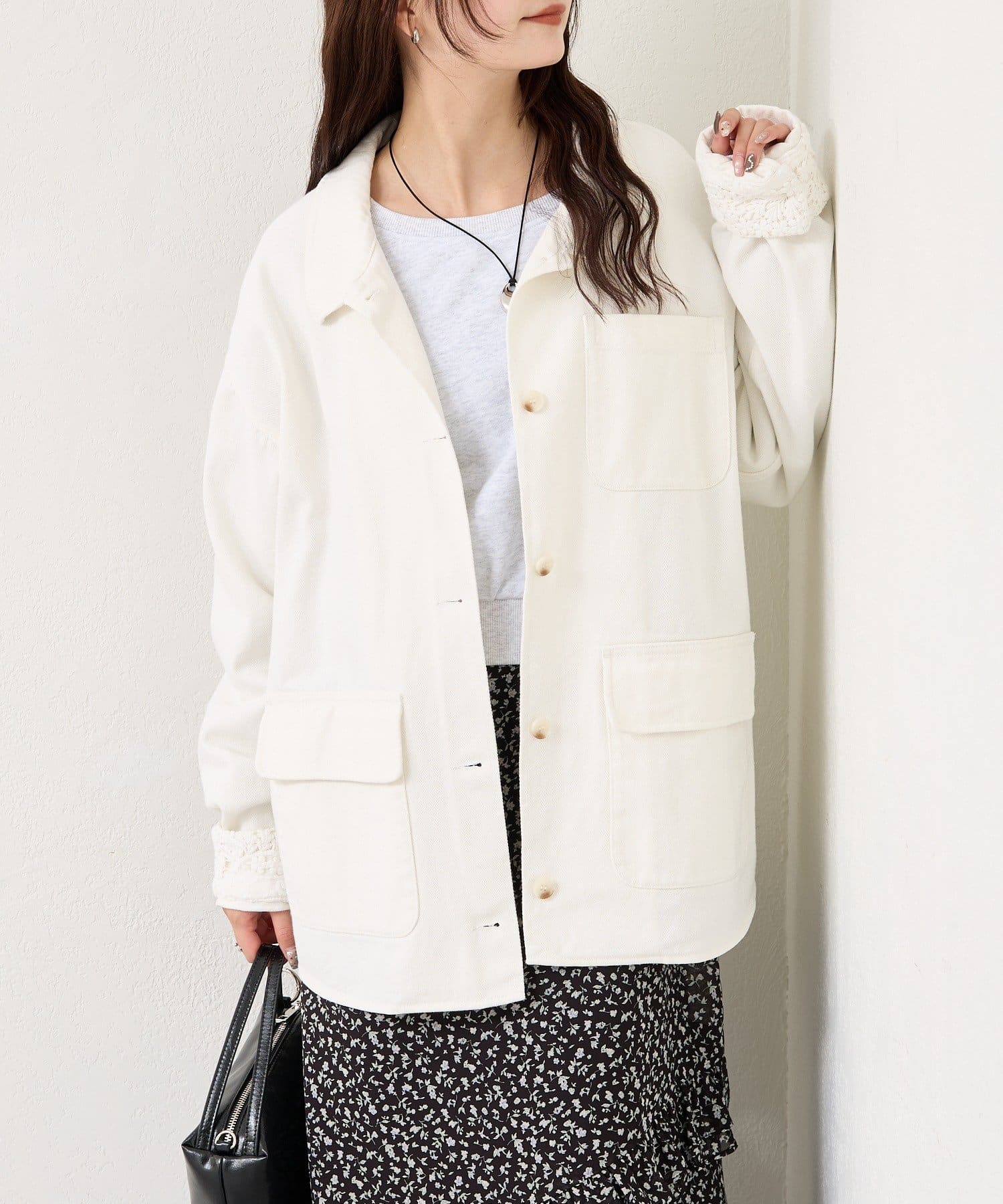 ・袖口の内側がレースデザインになっており、折り返すとレースが見えてスタイリングに甘さをプラスします。