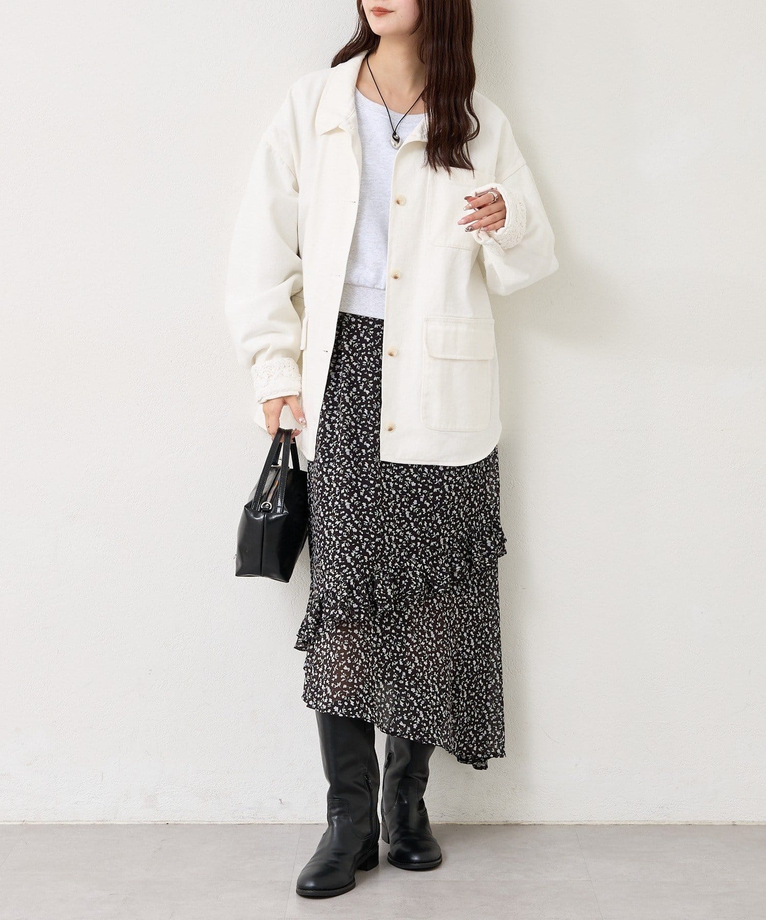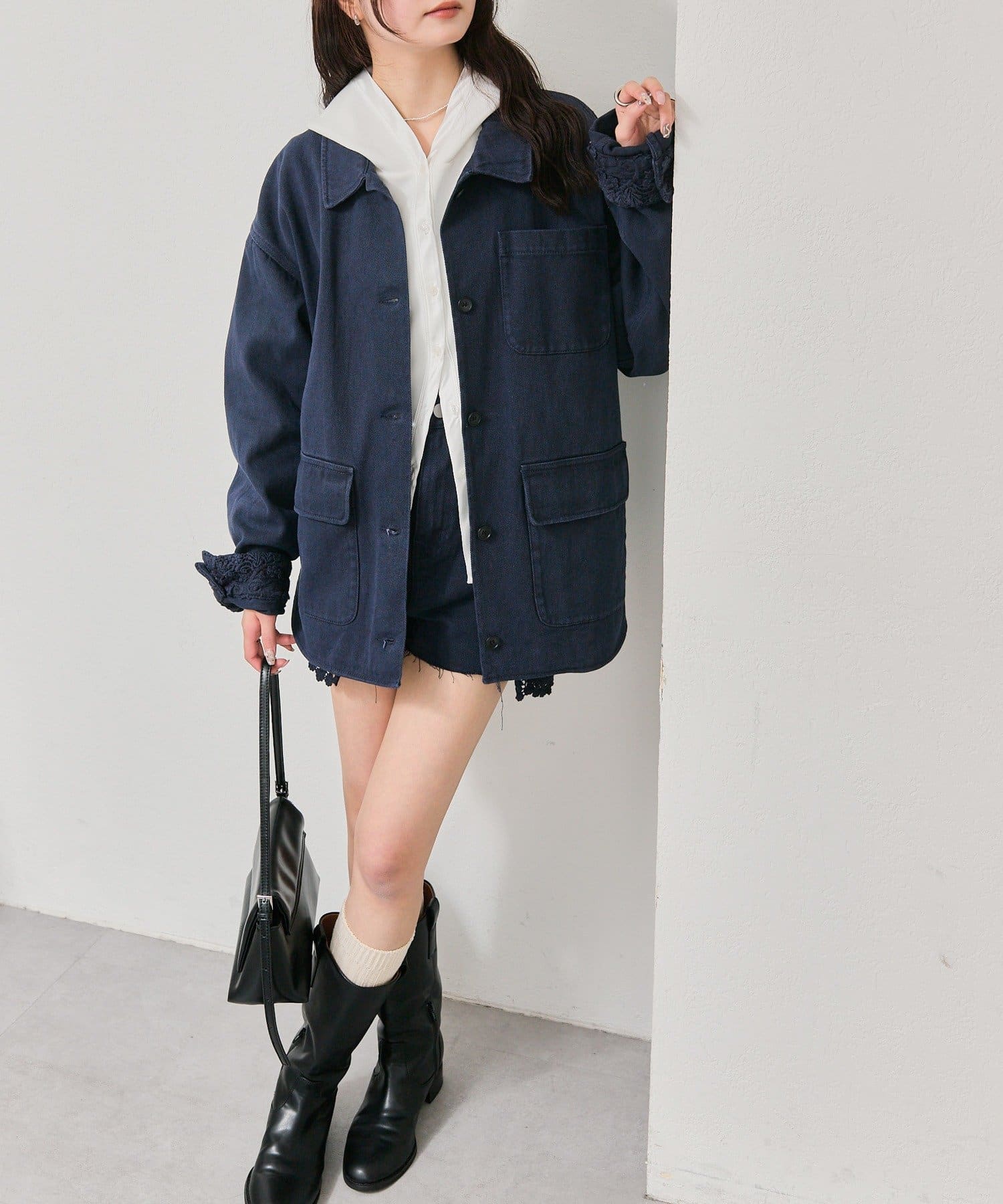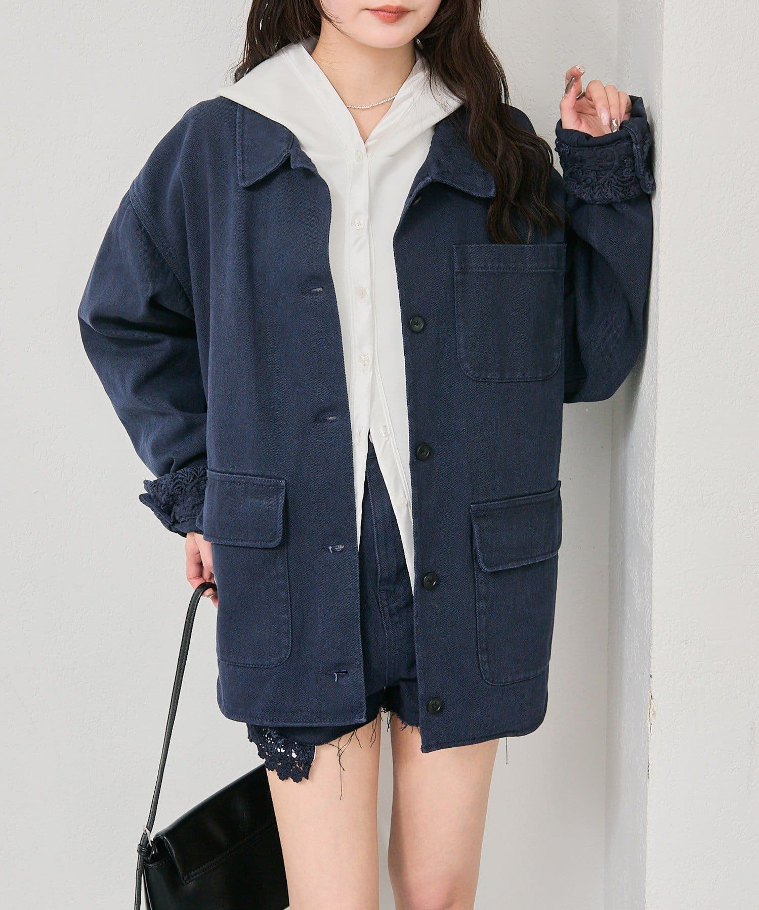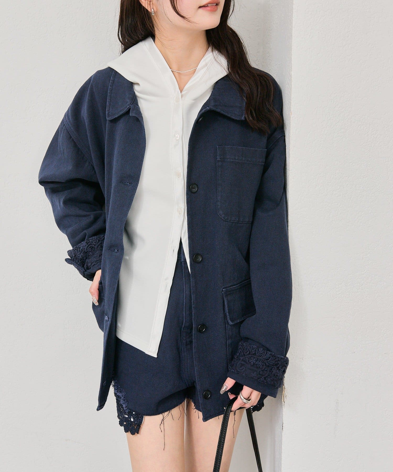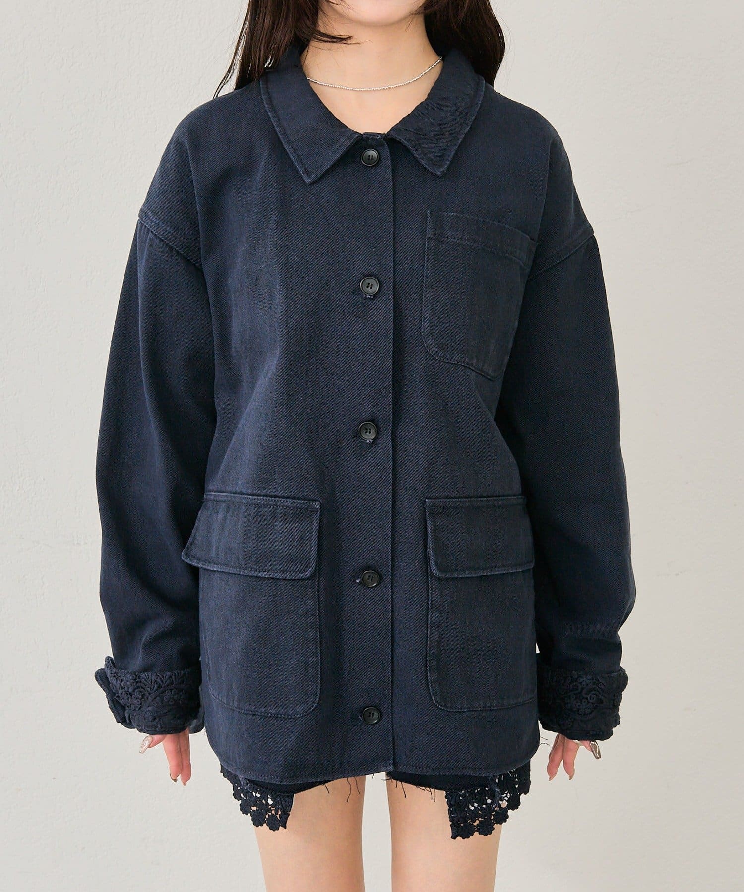 TOP > mystic > レディース > ジャケット/アウター > その他ジャケット/ブルゾン > 裾レースツイルジャケット