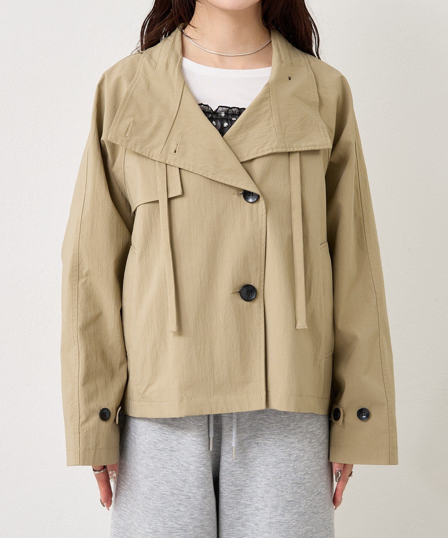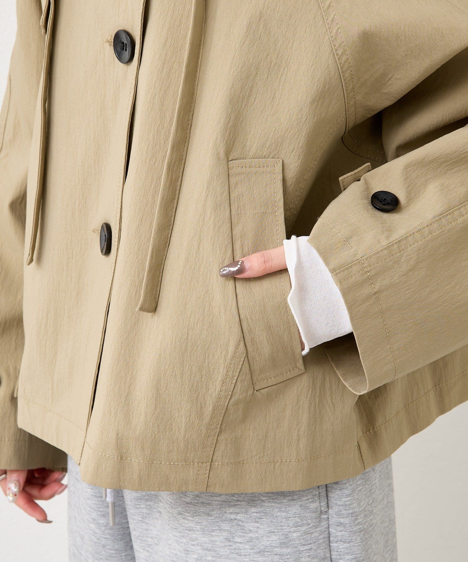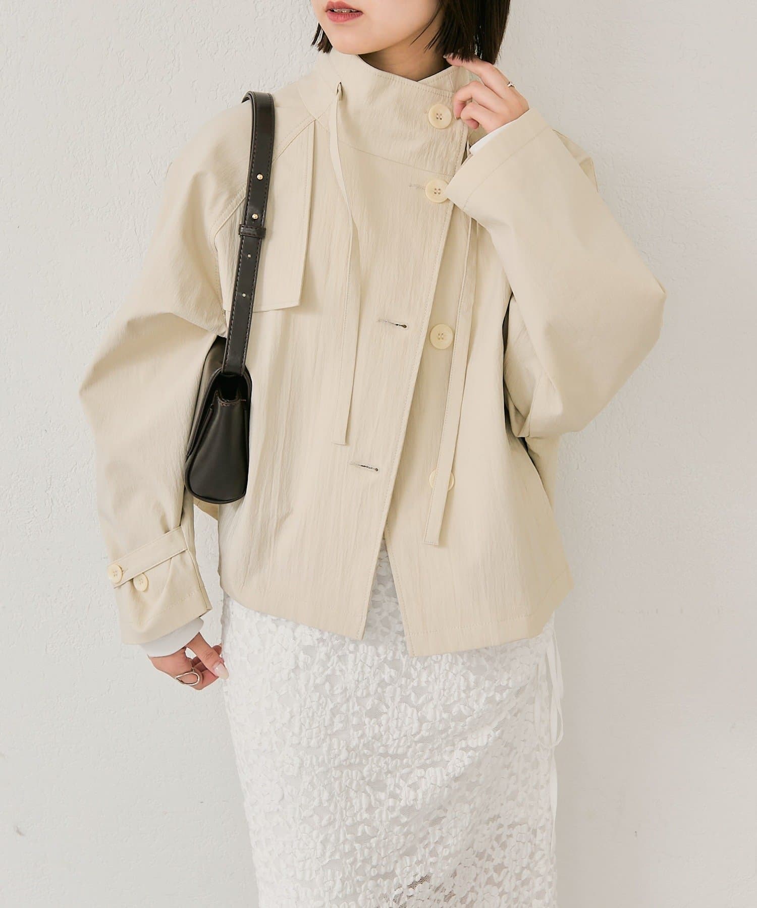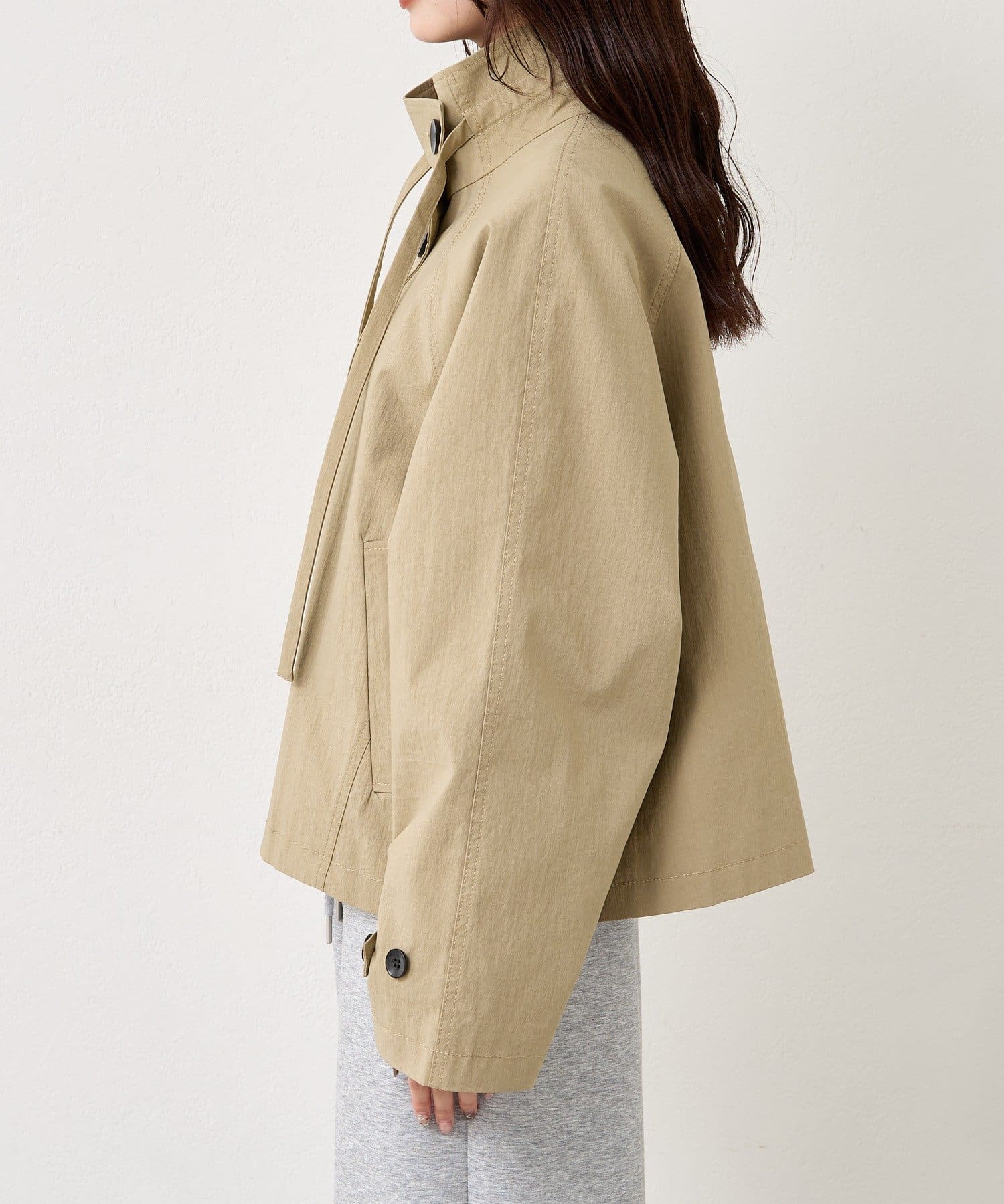 ・ショート丈で自然とスタイルアップする丈感。袖口のベルトを絞ってシルエットも変化も楽しめます。