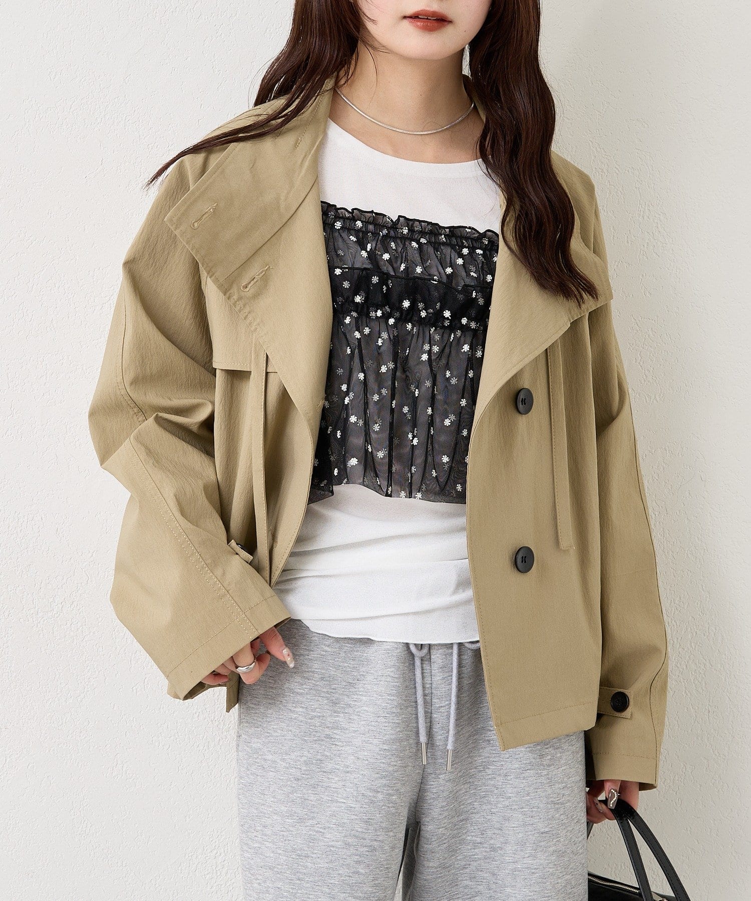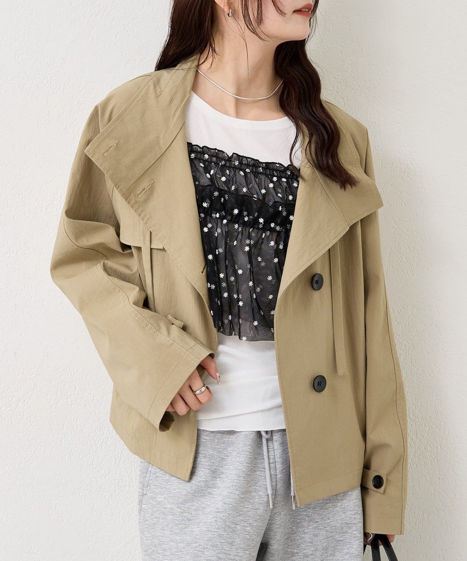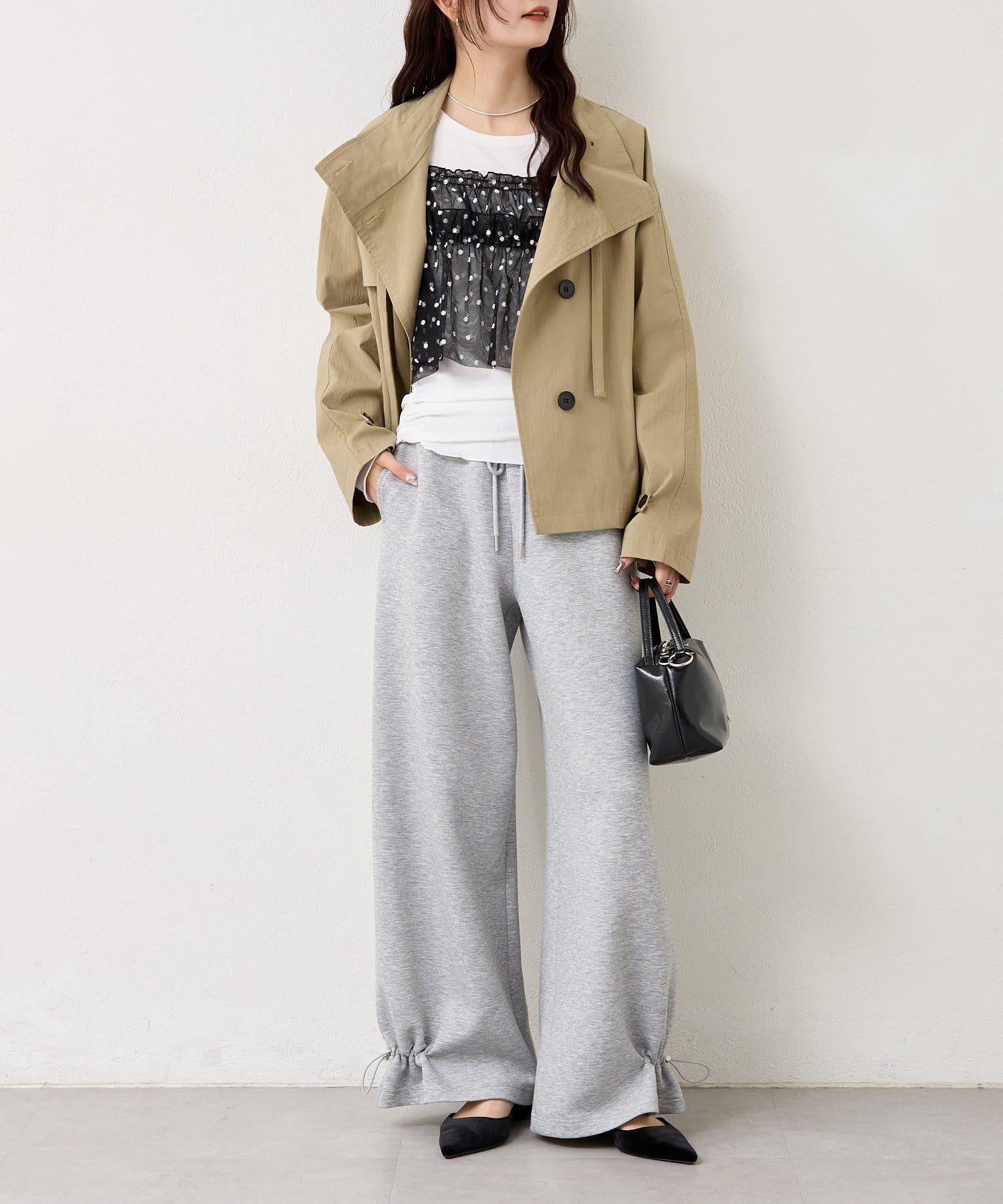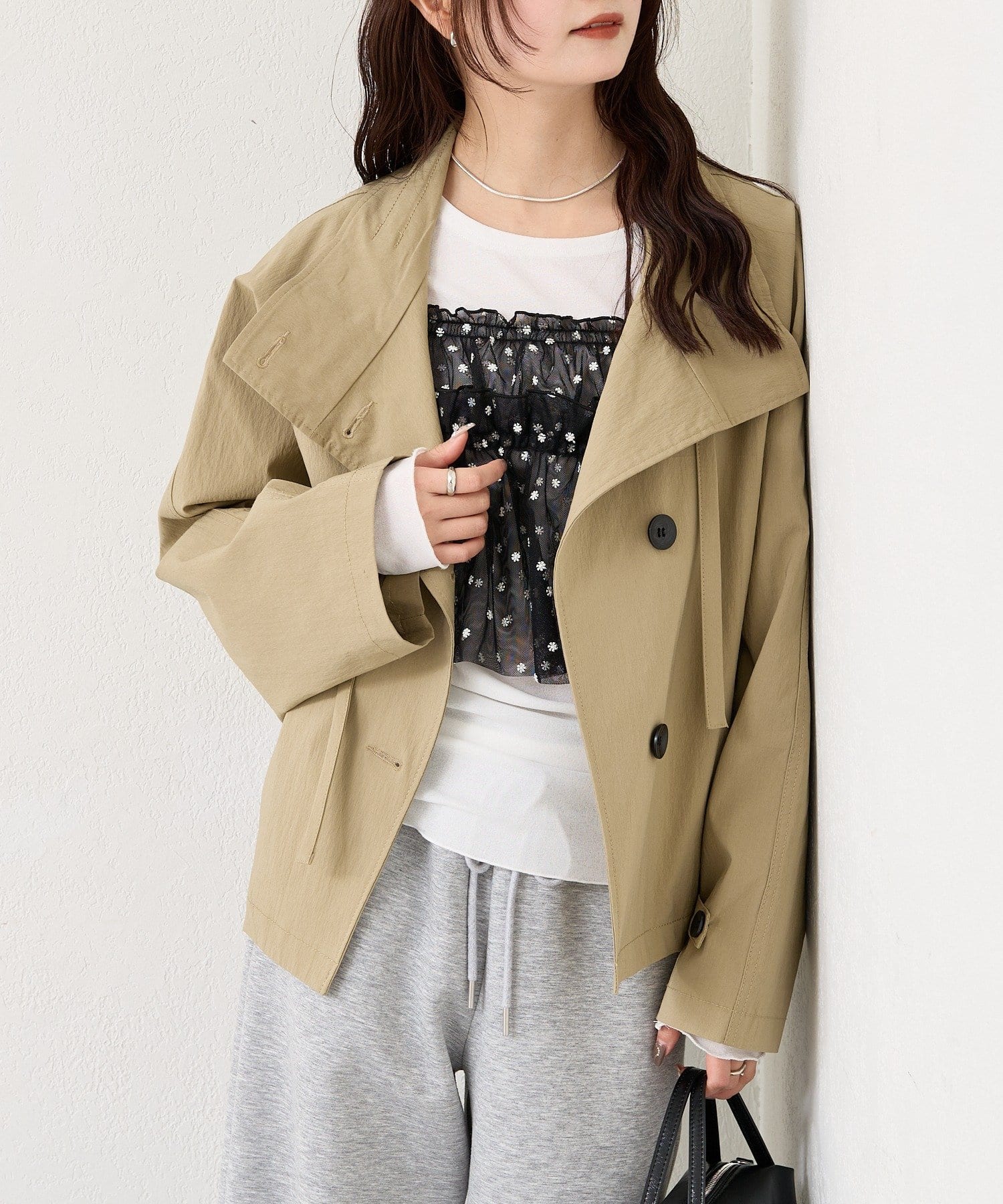 ・ショート丈で自然とスタイルアップする丈感。袖口のベルトを絞ってシルエットも変化も楽しめます。