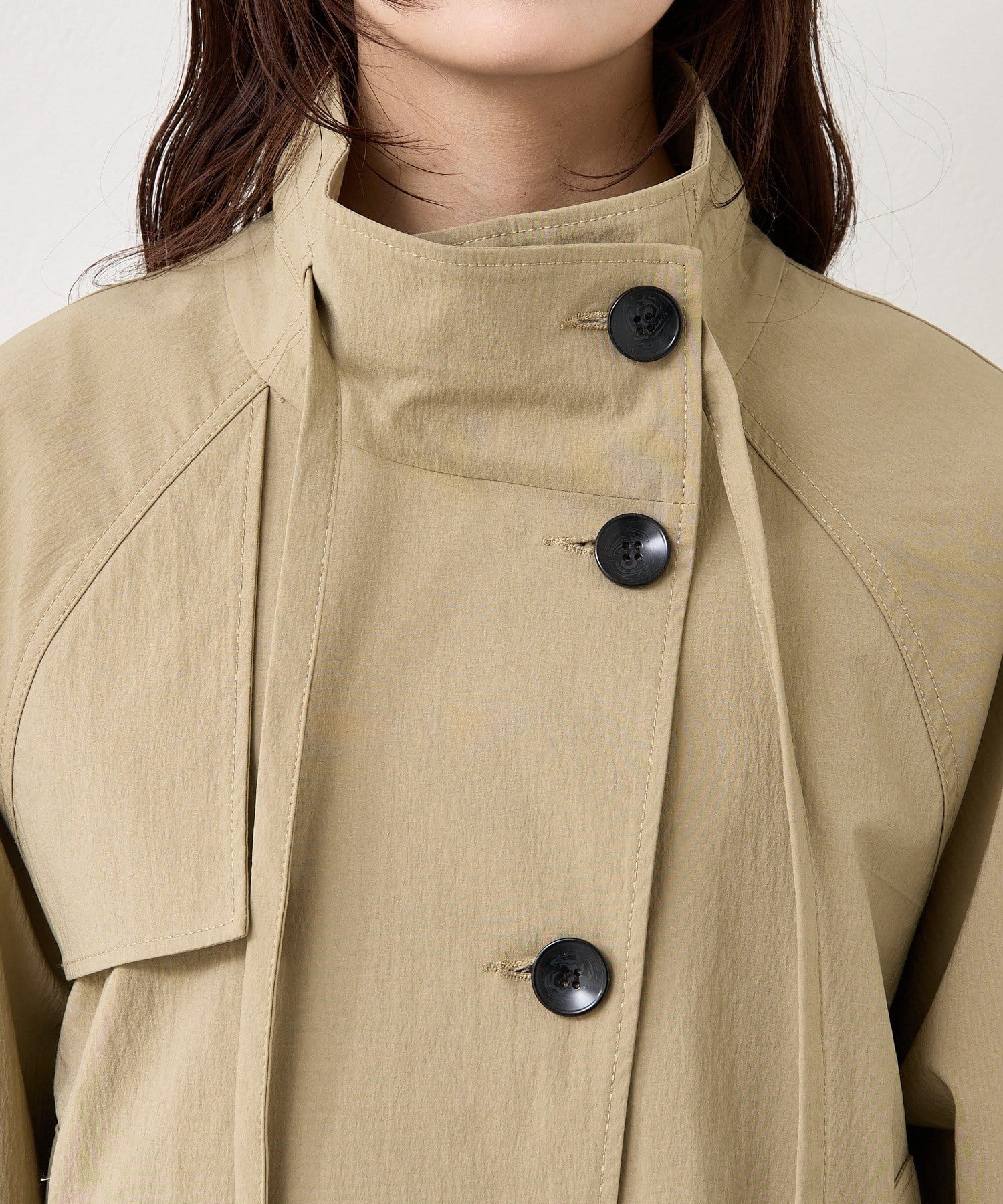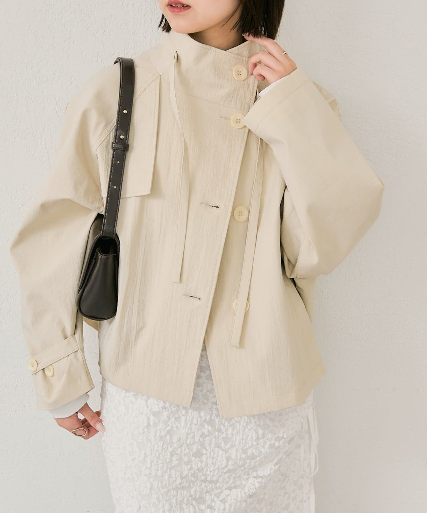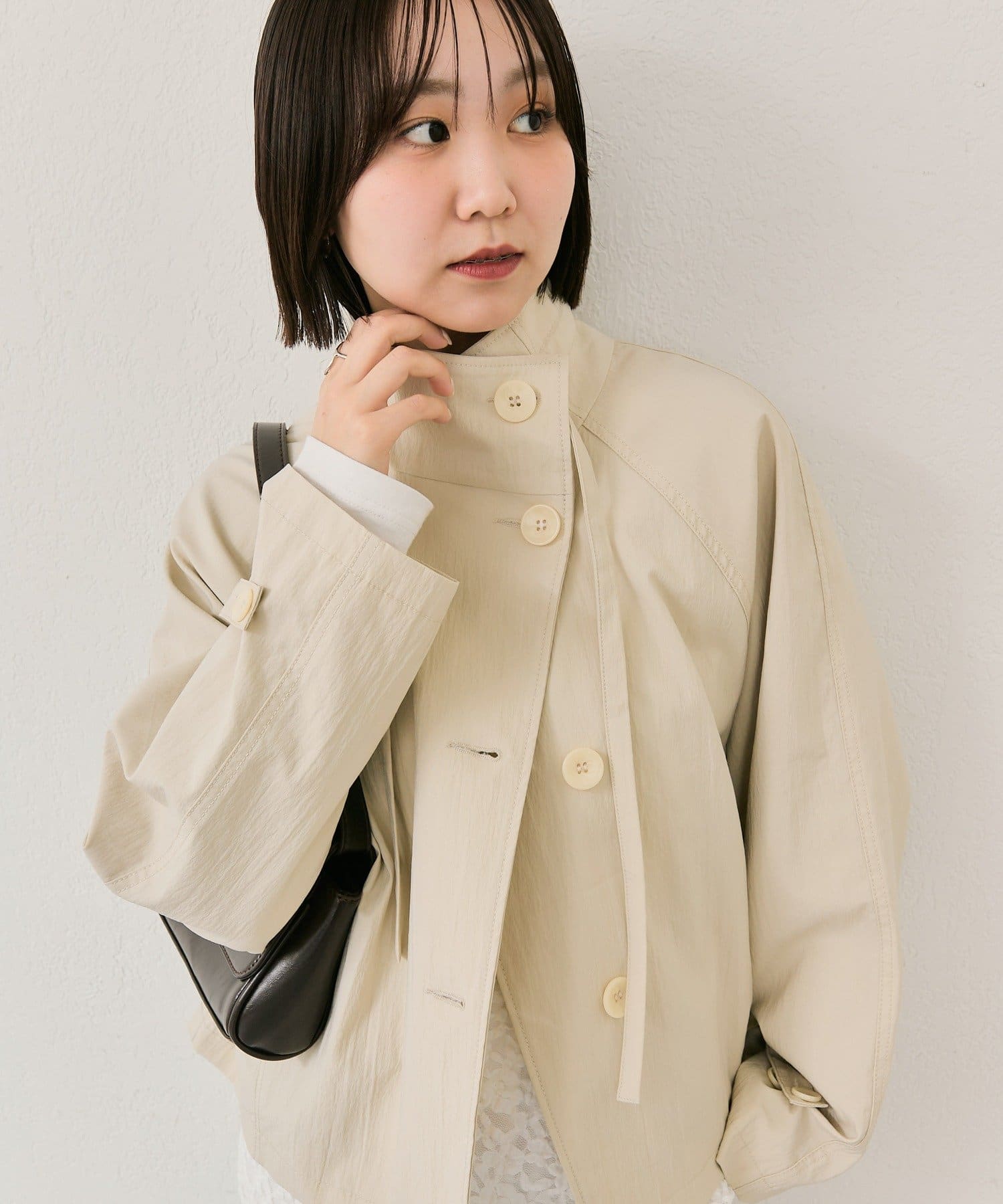 ・スタンドカラーで顔周りにクラシック感とモード感を両立したデザイン。