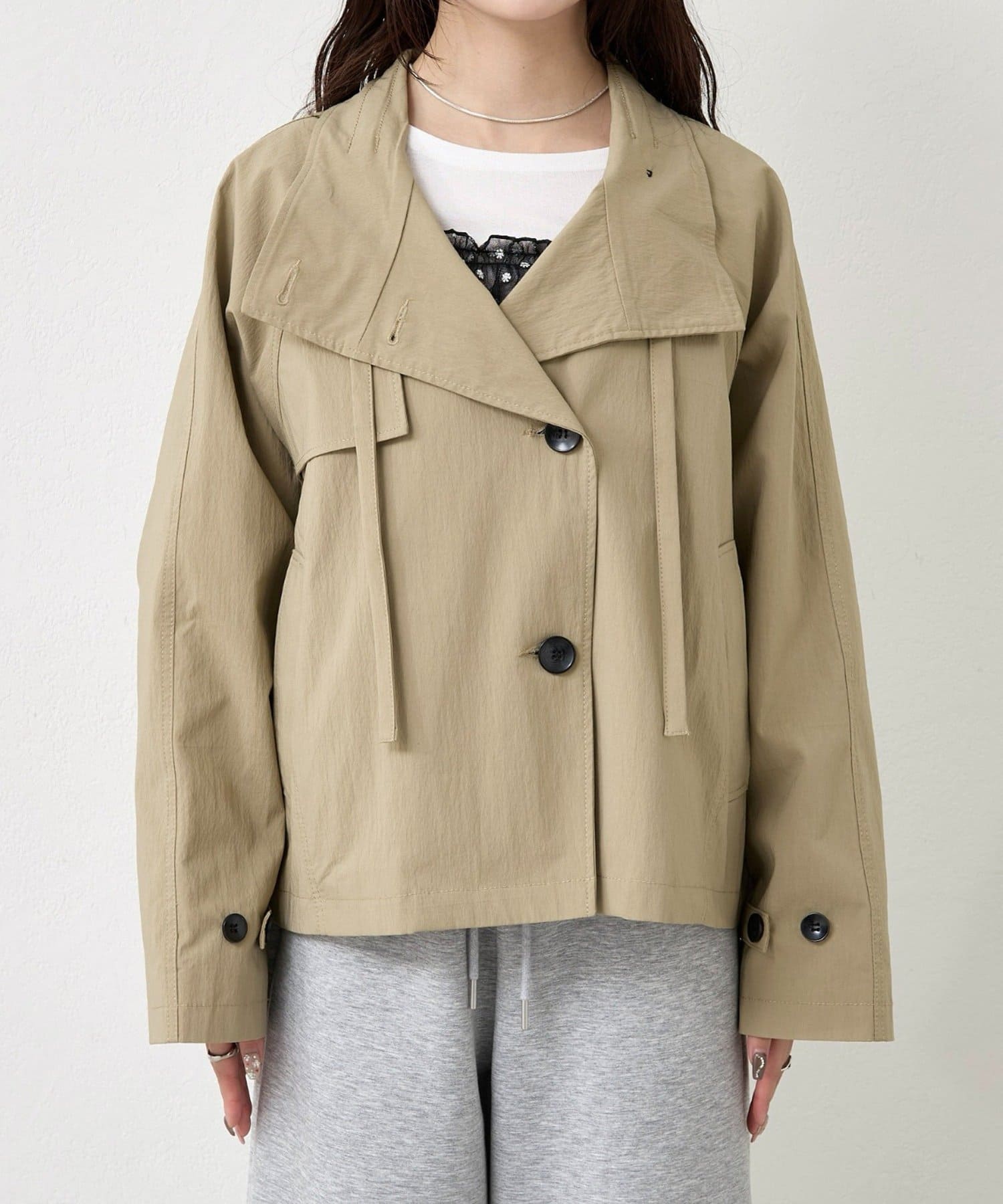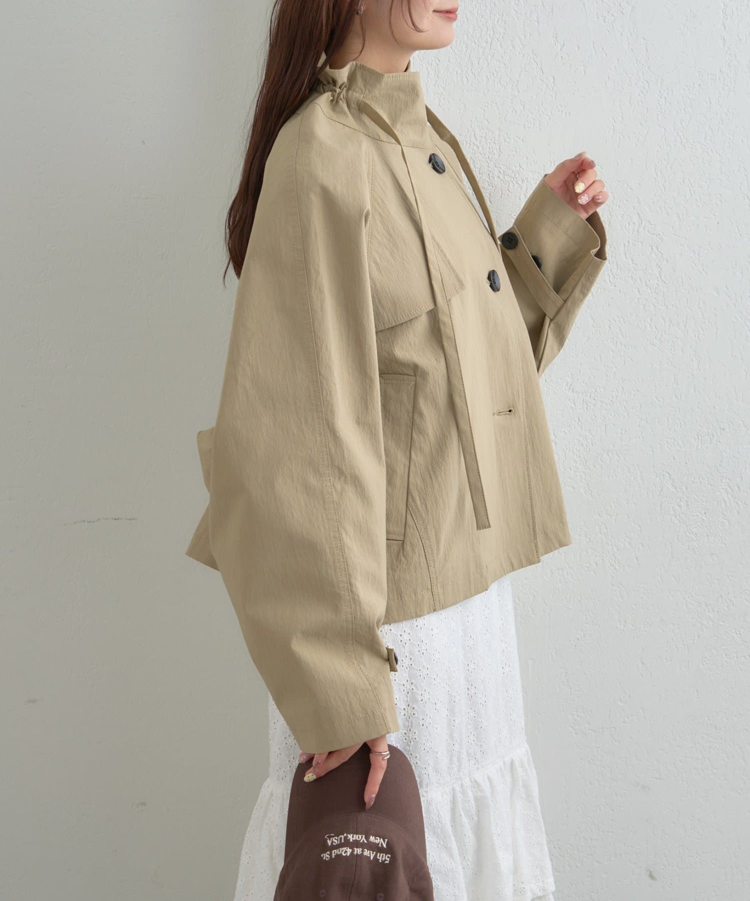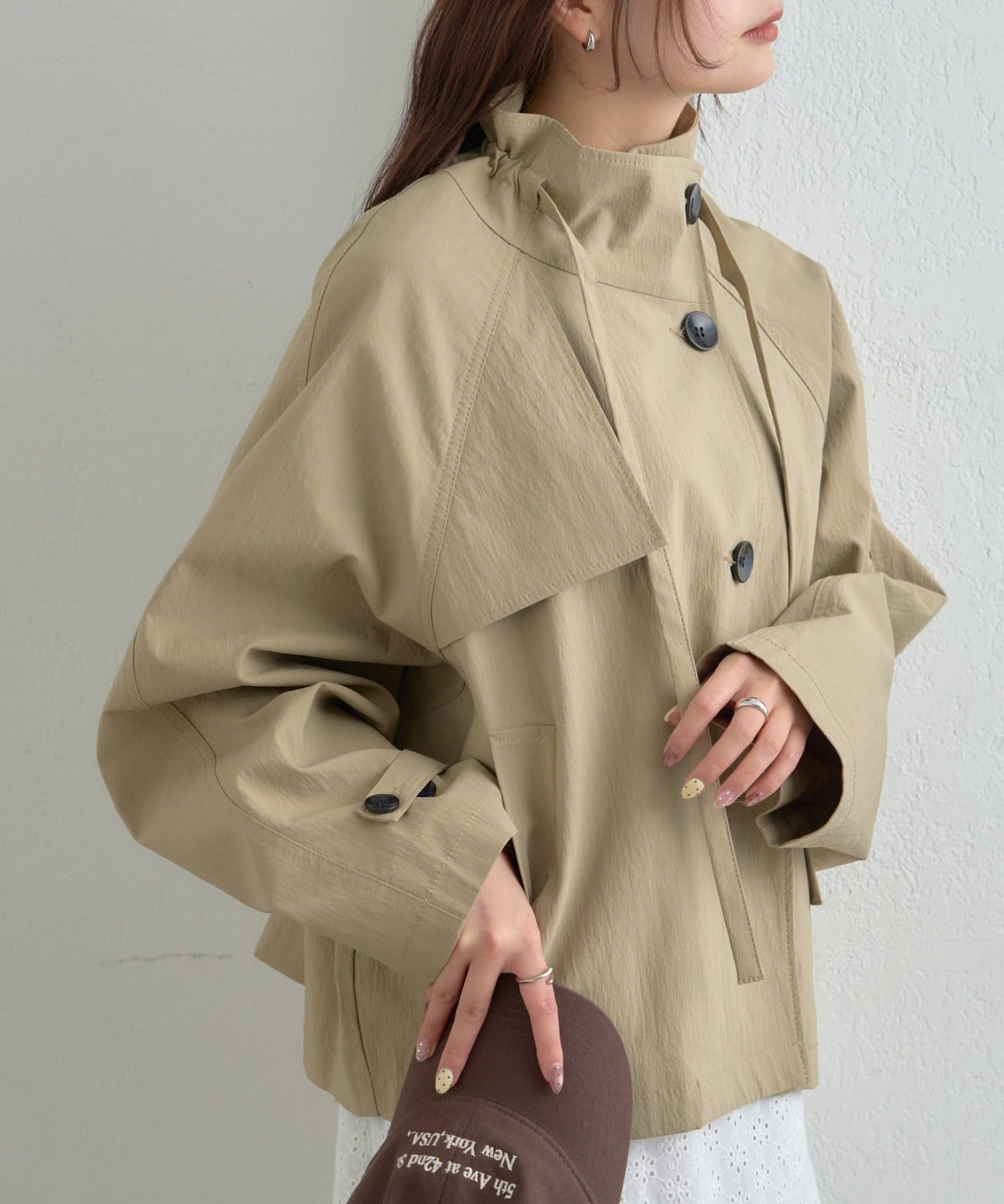 【ロングシーズン着られる!】《WEB限定追加!/新色BLK》【シワになりにくい】スタンドカラーショートトレンチ