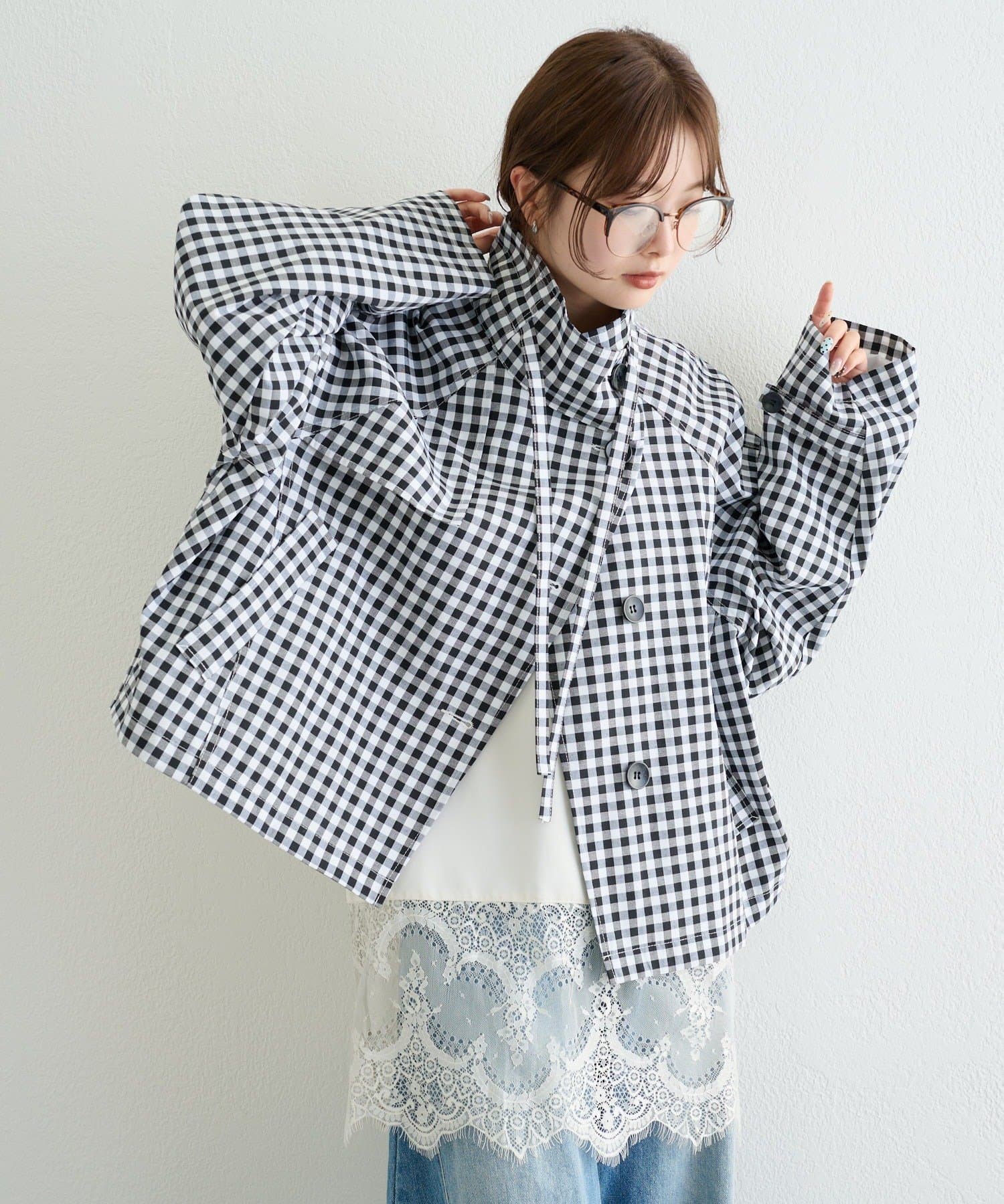 《WEB限定追加!/新色BLK》【シワになりにくい】スタンドカラーショートトレンチ